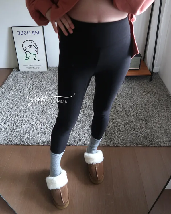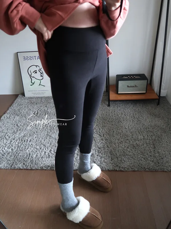 韓 爆炸好穿 雪絨中腰內搭褲 黑