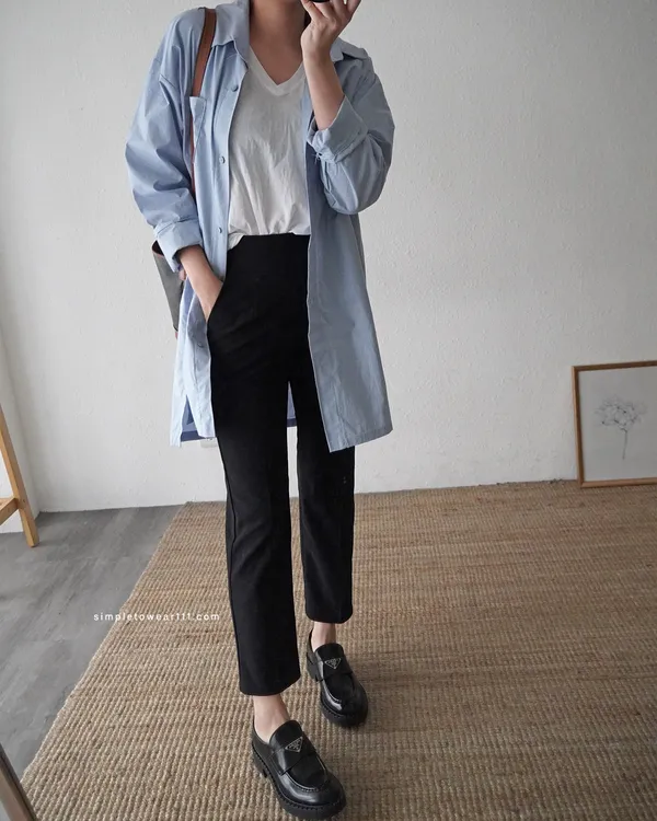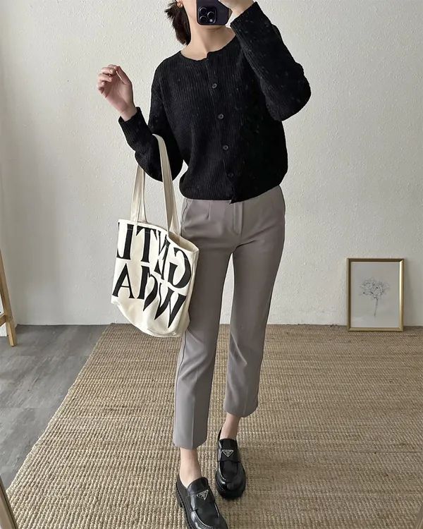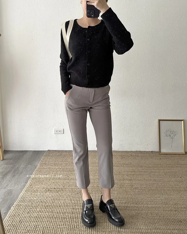 穿起來剛剛好的九分長度,配上樂福鞋整個很修長拉~