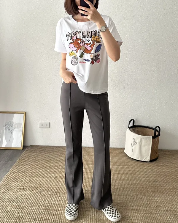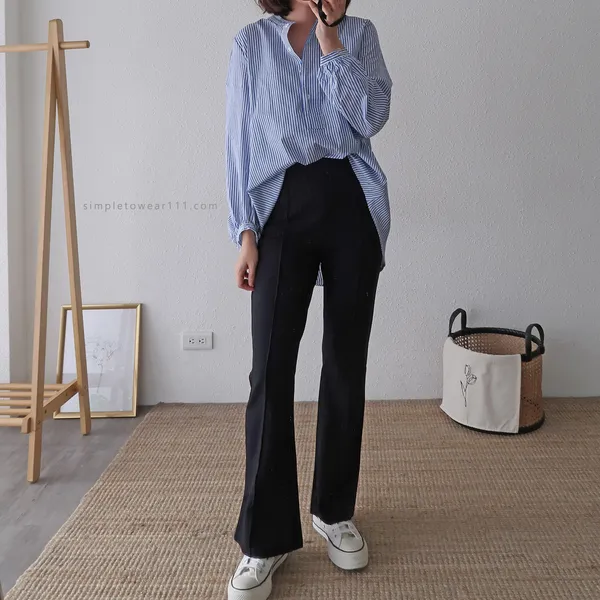 made in korea 尺寸:腰31-40、臀42-51、長97 自帶修圖軟體的小喇叭褲 100%棉羅馬布~含棉成分高好穿又舒服 有垂度有彈性 100%純棉透氣親膚 羅馬布料穿起來舒適彈力超好 重點不起毛球,質料很不錯的唷