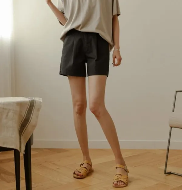 韓 棉花糖女孩也可穿 打摺基本款短褲 (黑/白/卡)