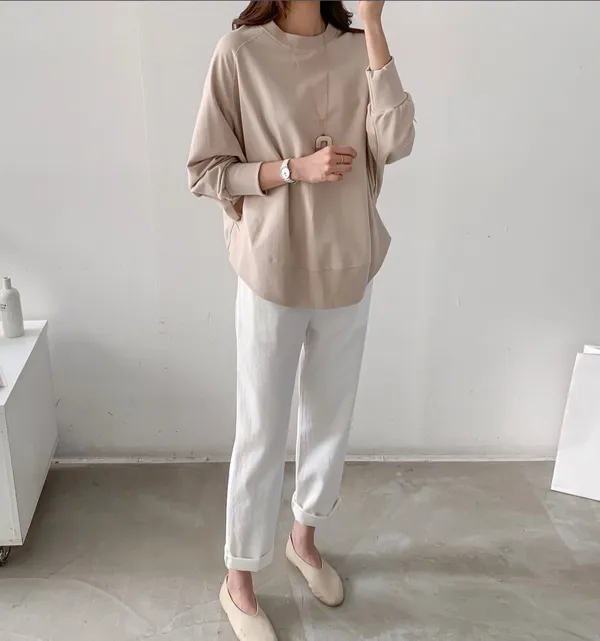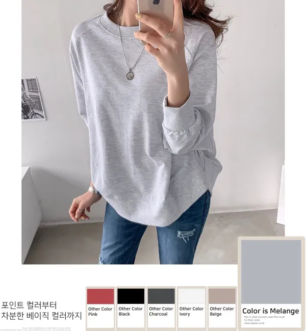 韓 弧形長袖T (深粉/白/杏/淺灰/深灰/黑)