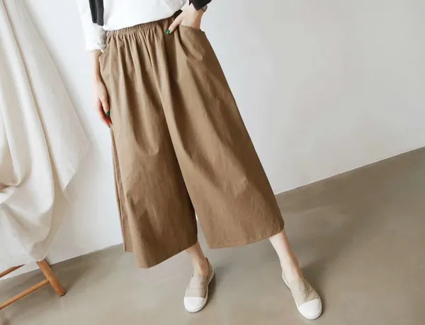 韓 日系感挺棉寬褲 (綠/咖/黑)