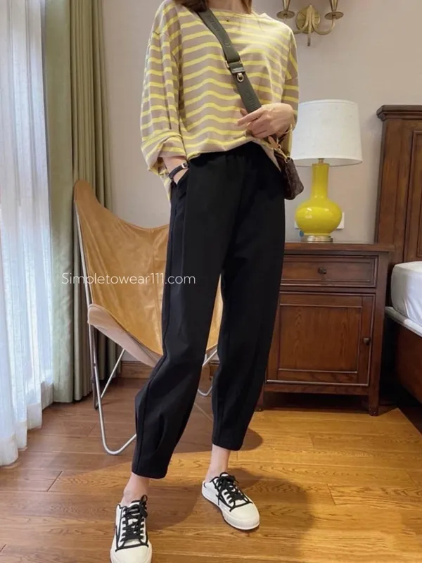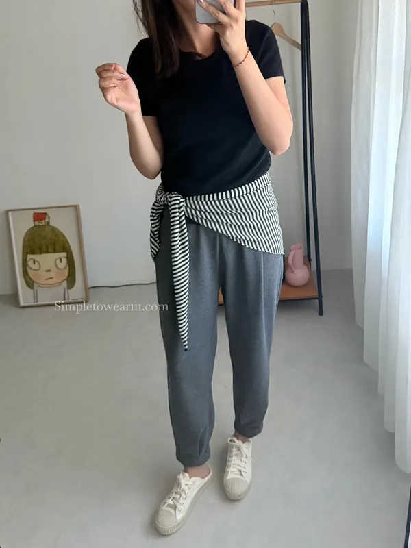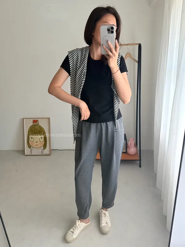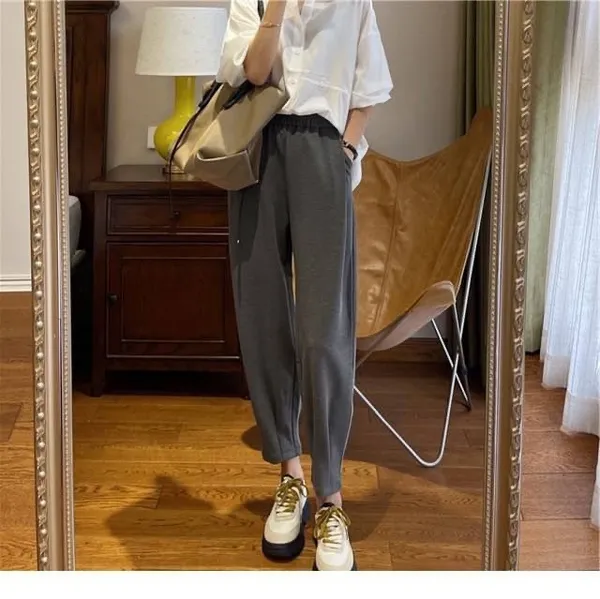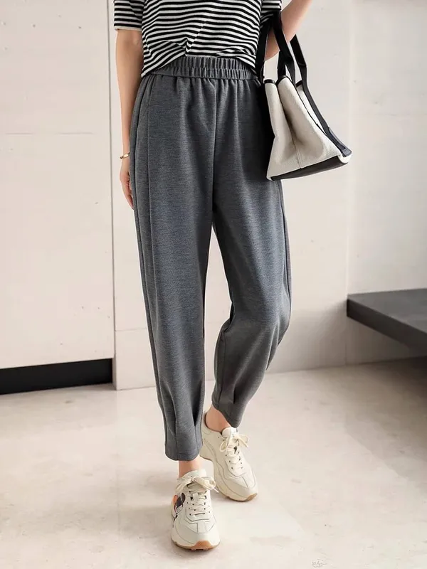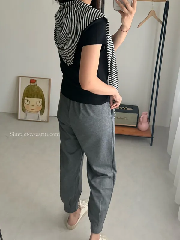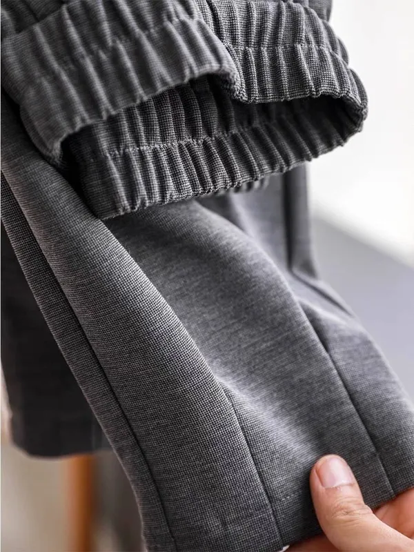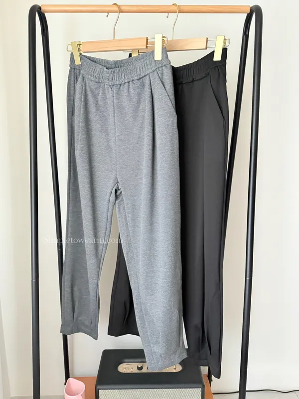 韓 爆款! 穿起來好瘦 質感打摺九分褲 (深灰/黑)
