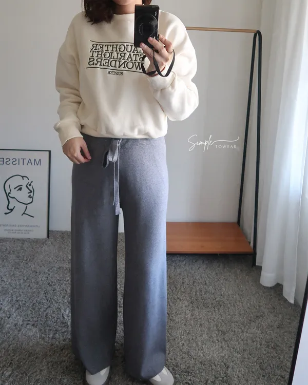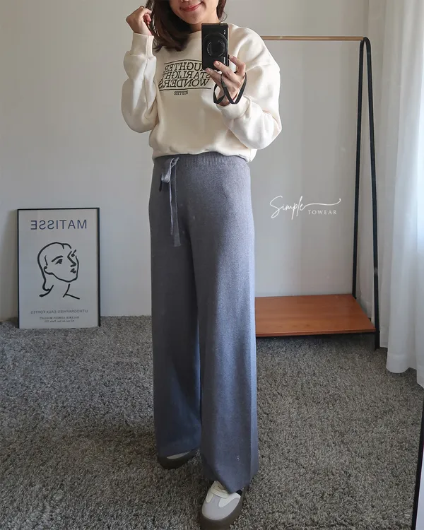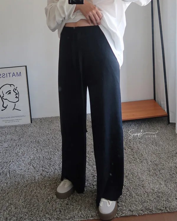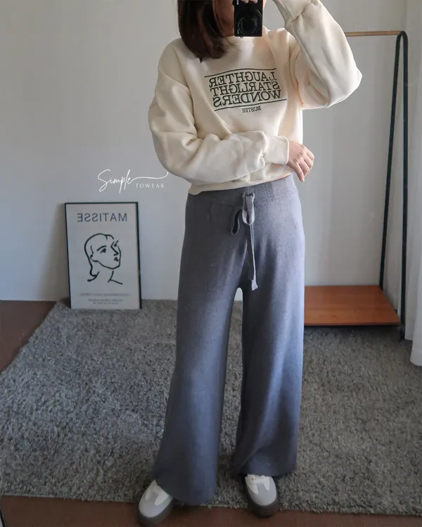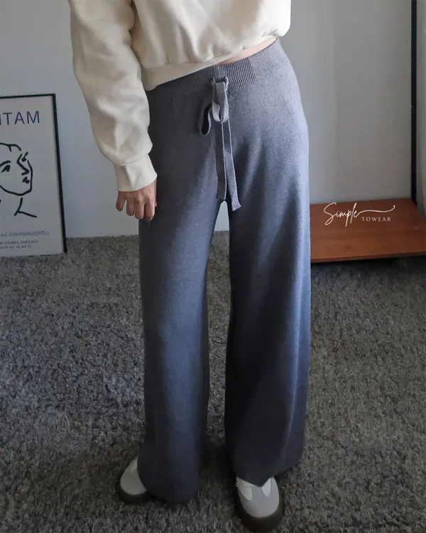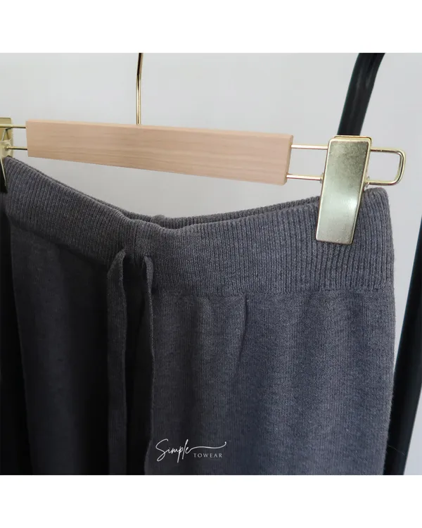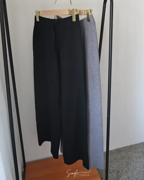 每年爆賣款 綁帶針織寬褲 (黑/灰)