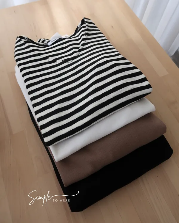 韓 V領磨毛素TEE (白/黑/條紋/卡)
