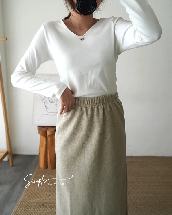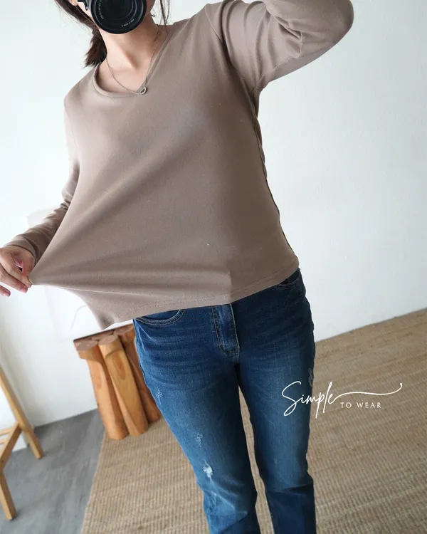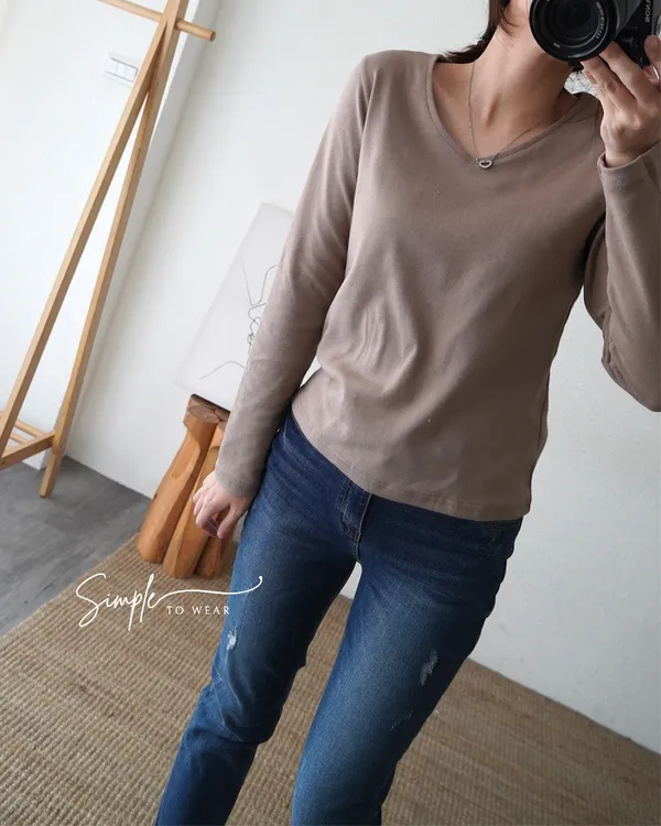小V領素T長袖