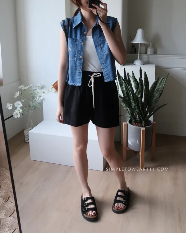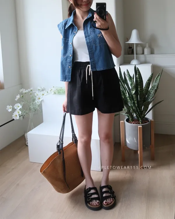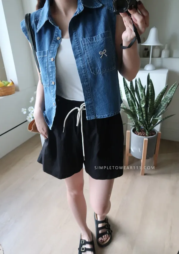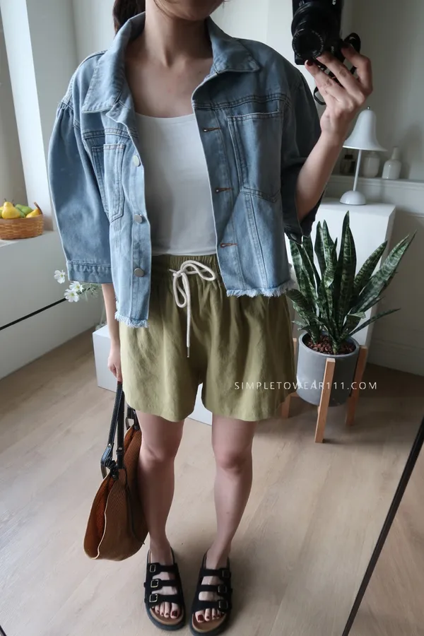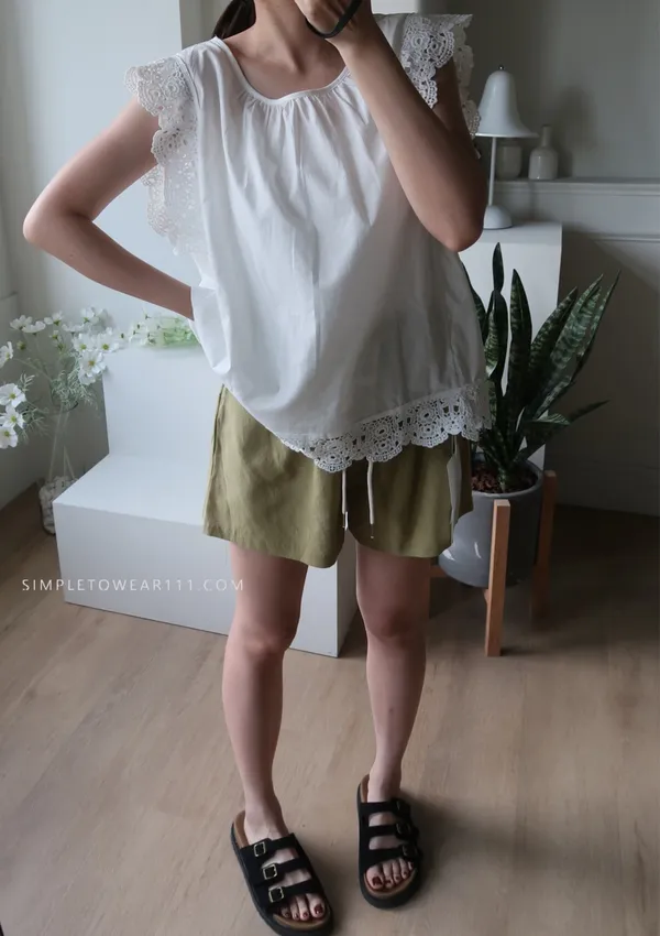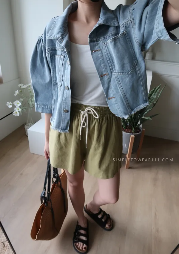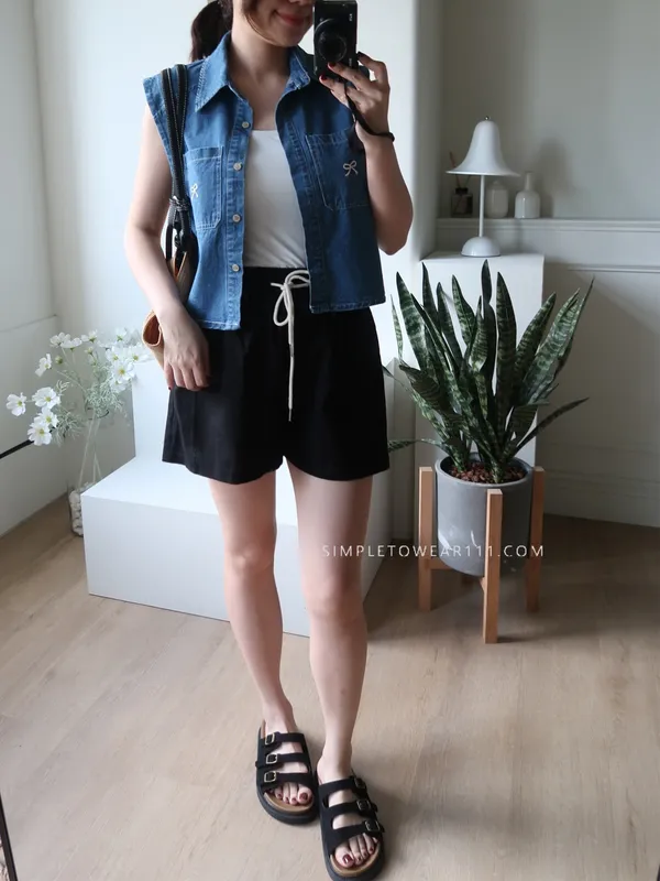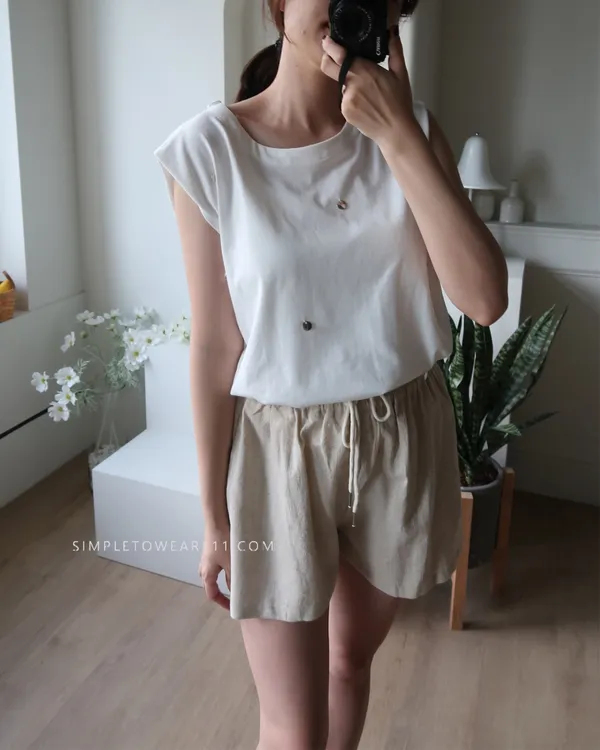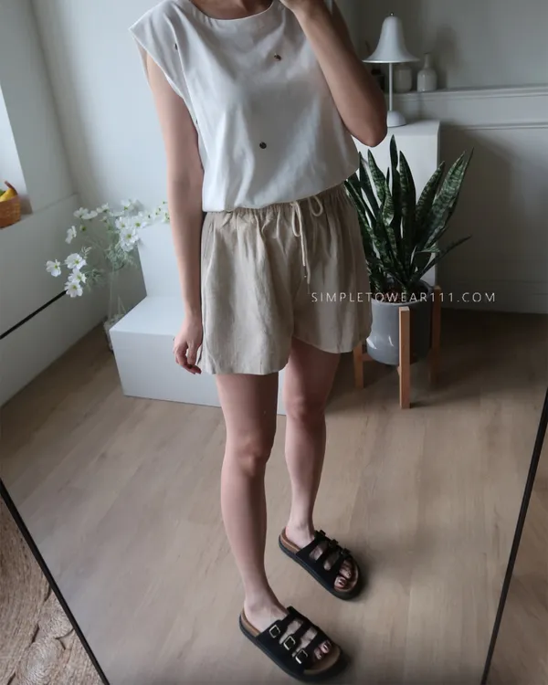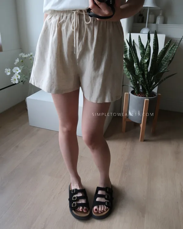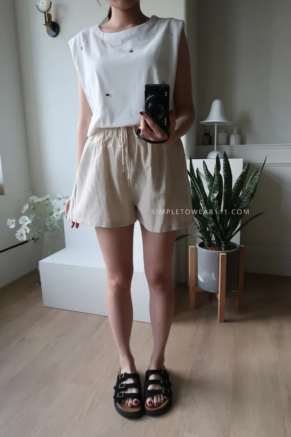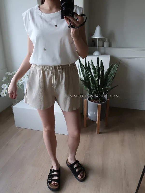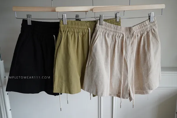 韓 棉麻抽繩短褲 (黑/黃/杏)