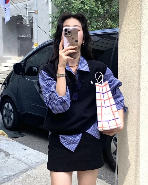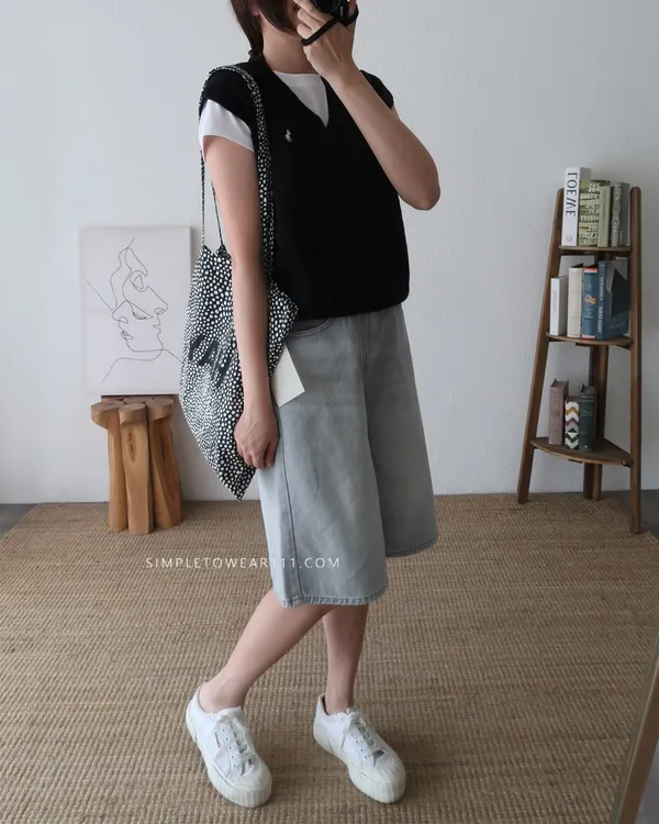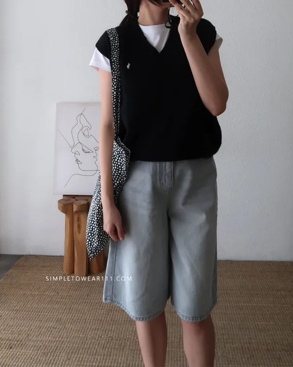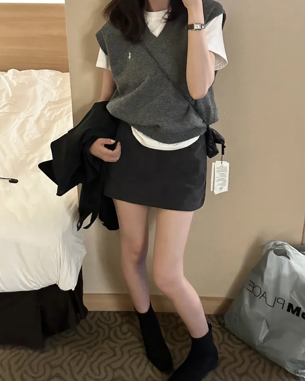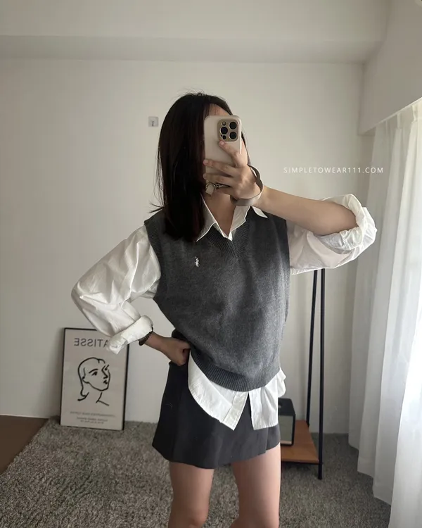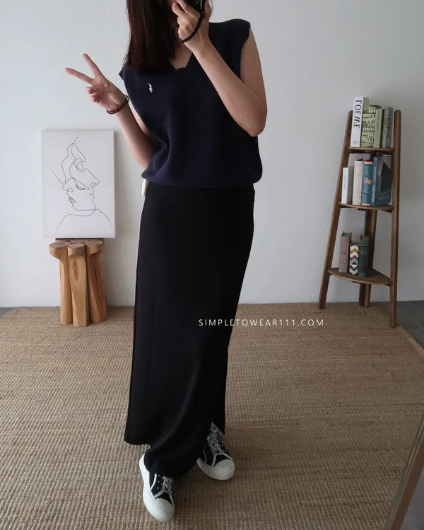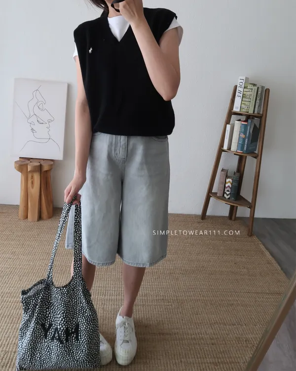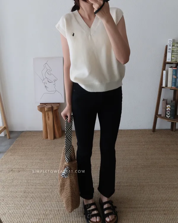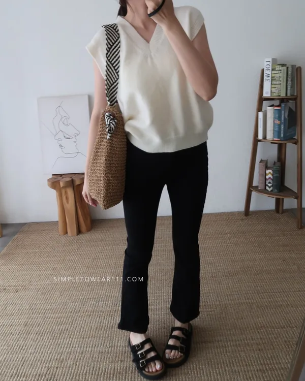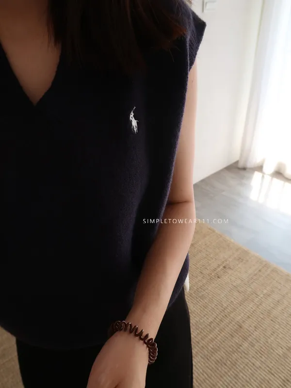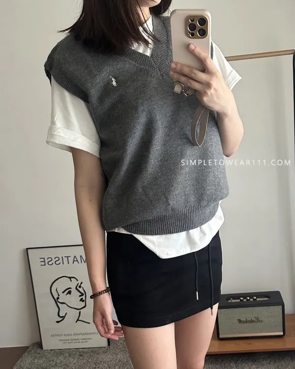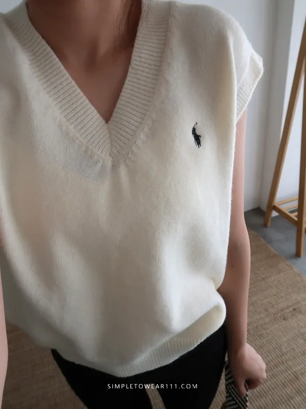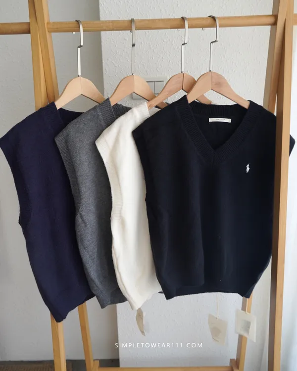 檸檬家V領針織背心 (黑/深藍/米白/深灰)