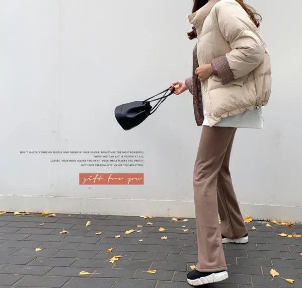 韓 冬天必備加絨落地褲 (黑/咖/淺灰/深灰)