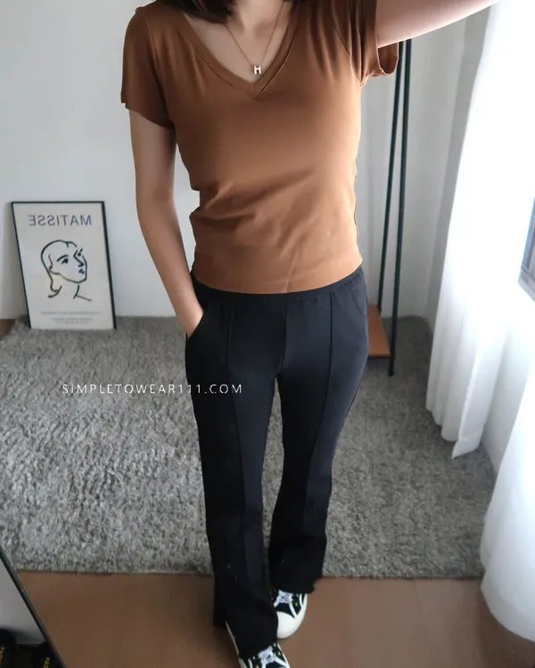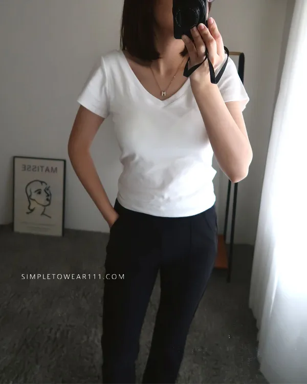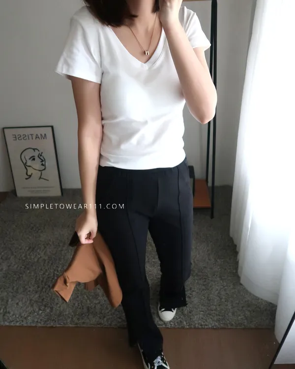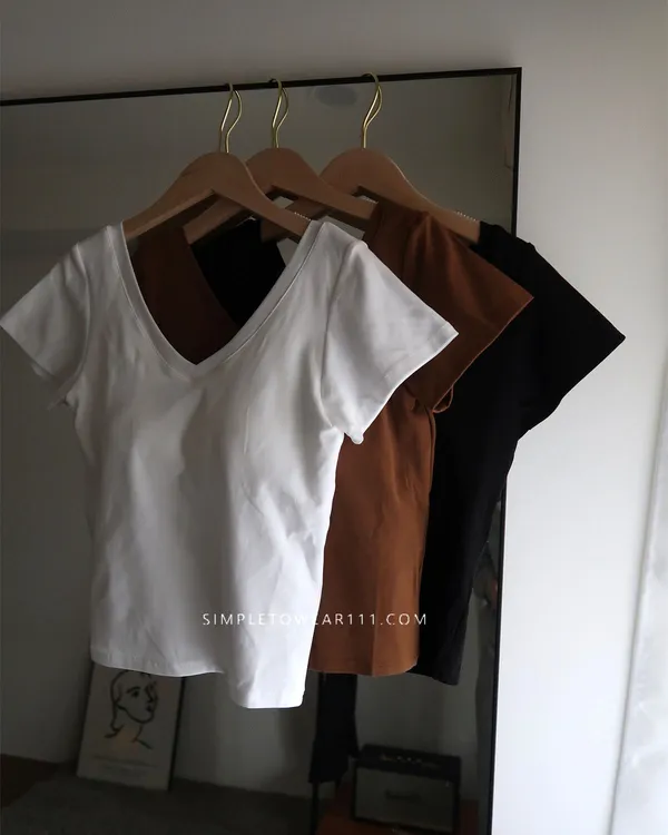 質感V領附Bra百搭上衣 (黑/白/咖)