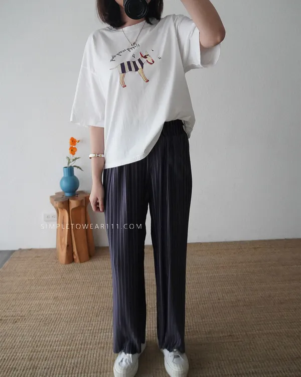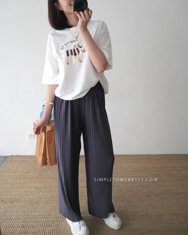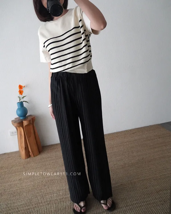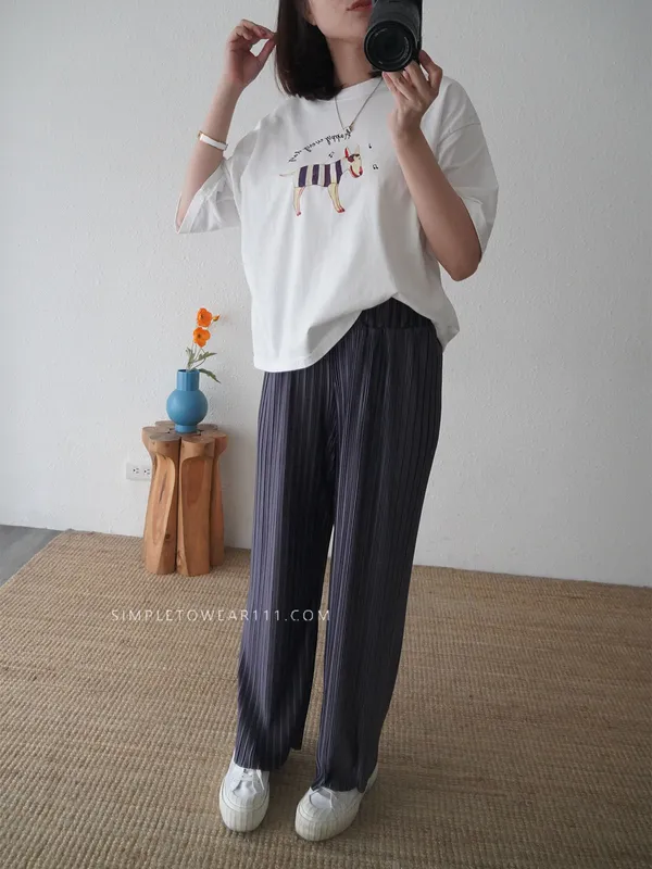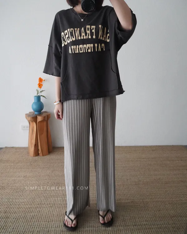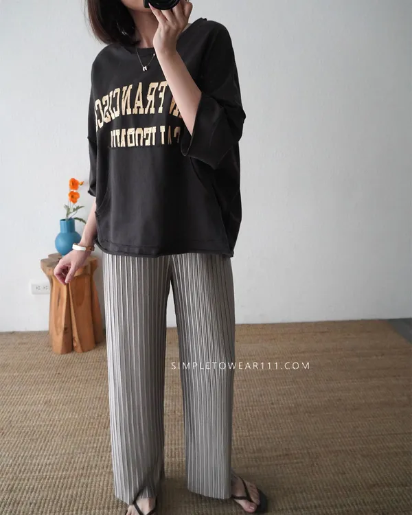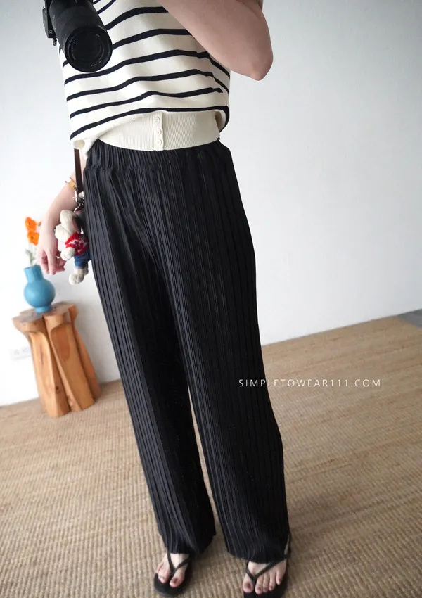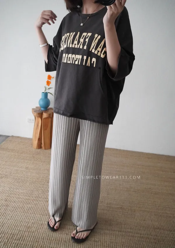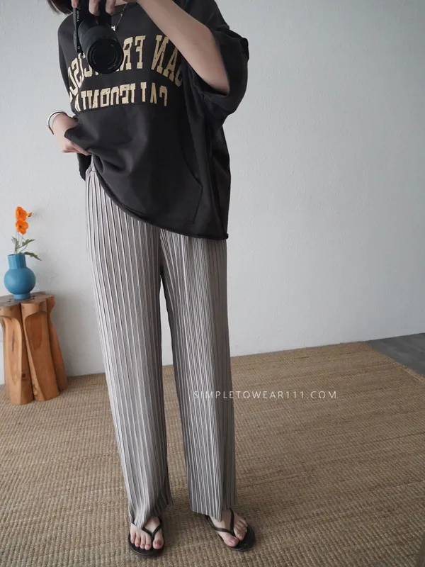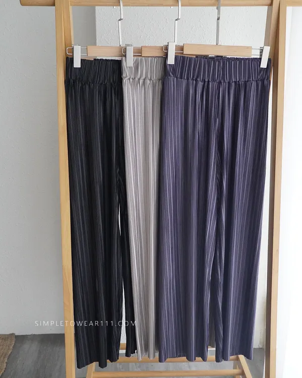 韓 三宅感壓褶寬褲 (黑/杏/深灰)