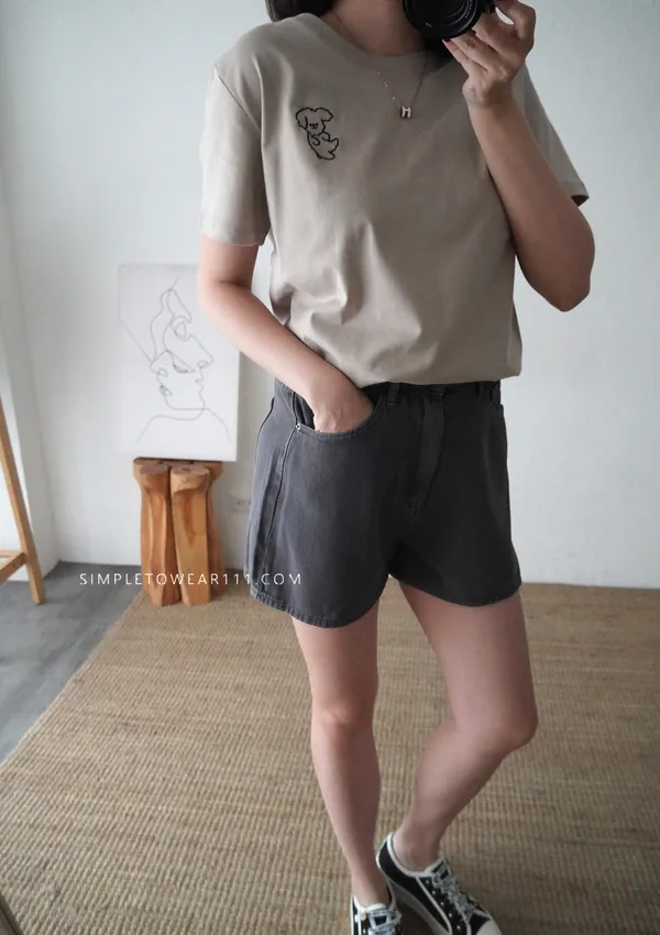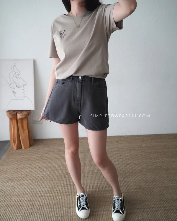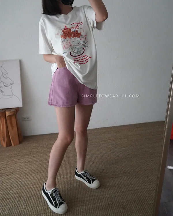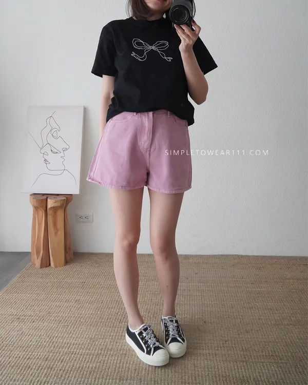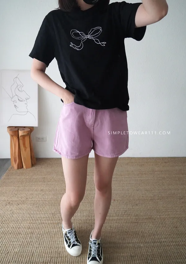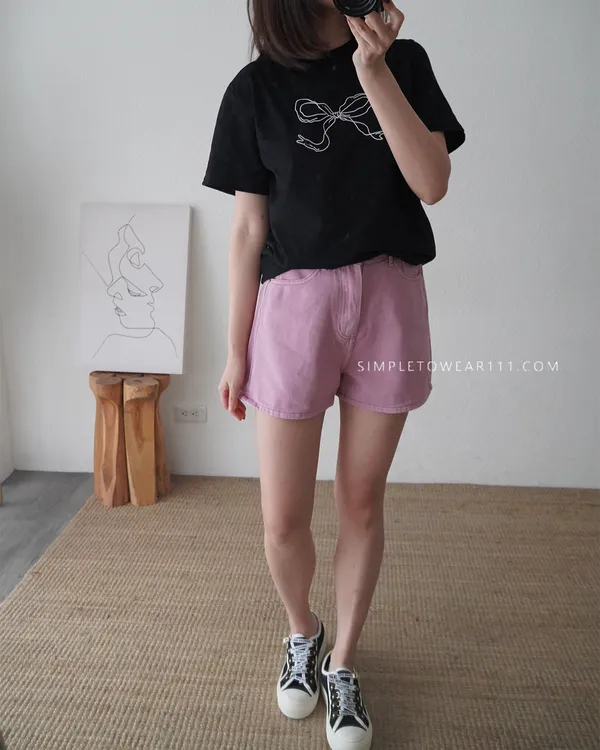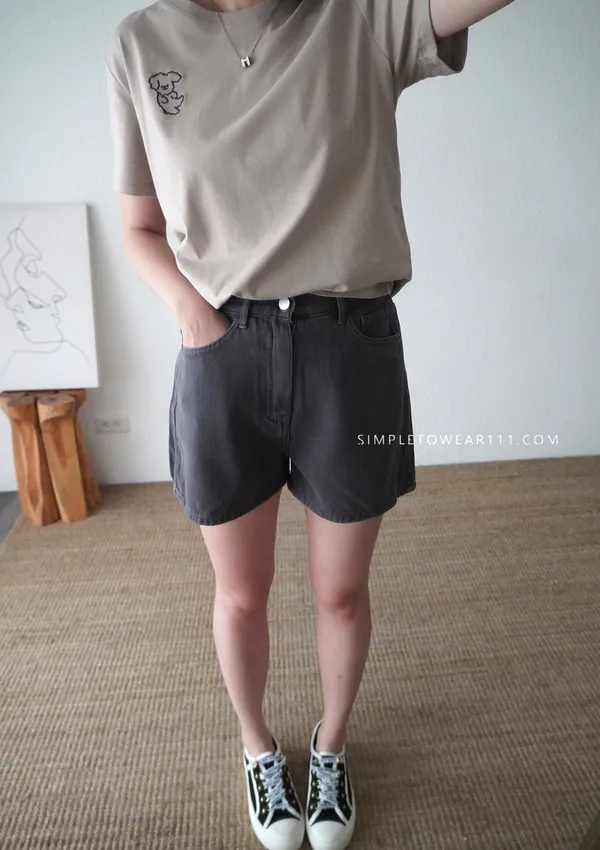 韓 手染色系牛仔短褲 (水墨灰/櫻花粉) S~XL