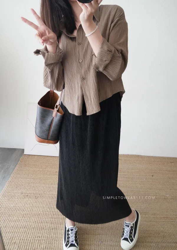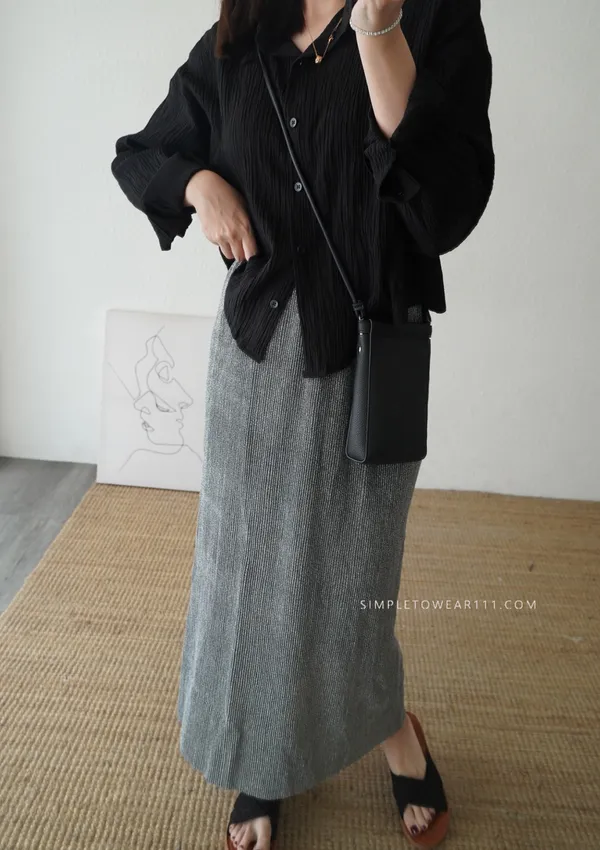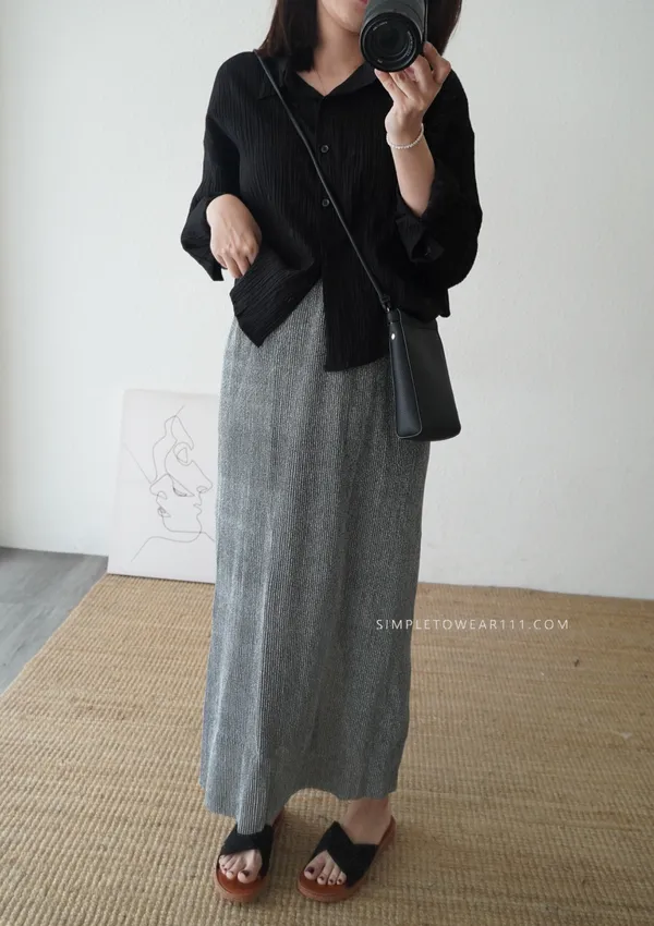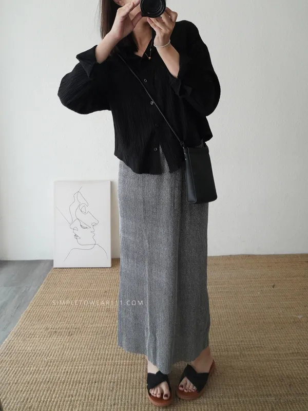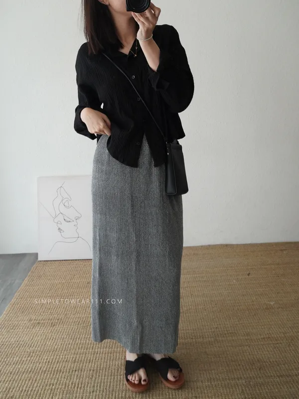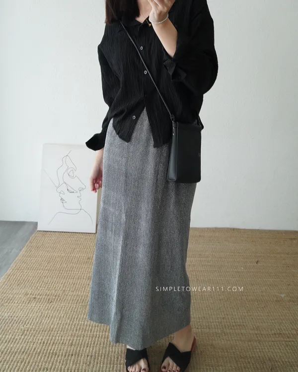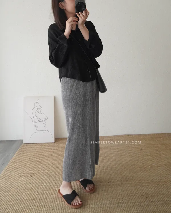 早秋光澤感針織長裙 (淺灰/深灰/黑)