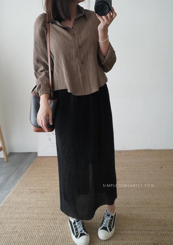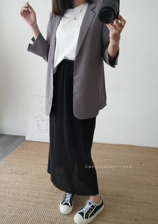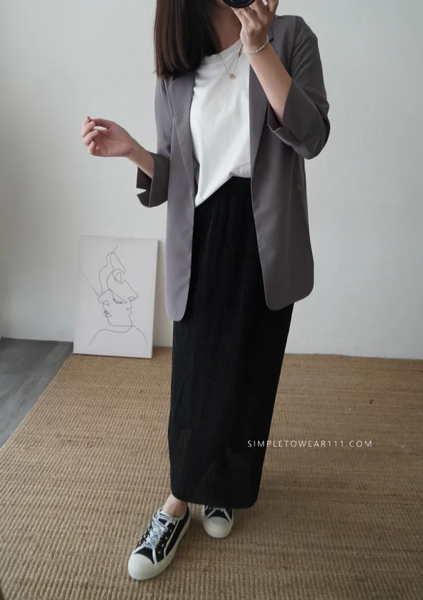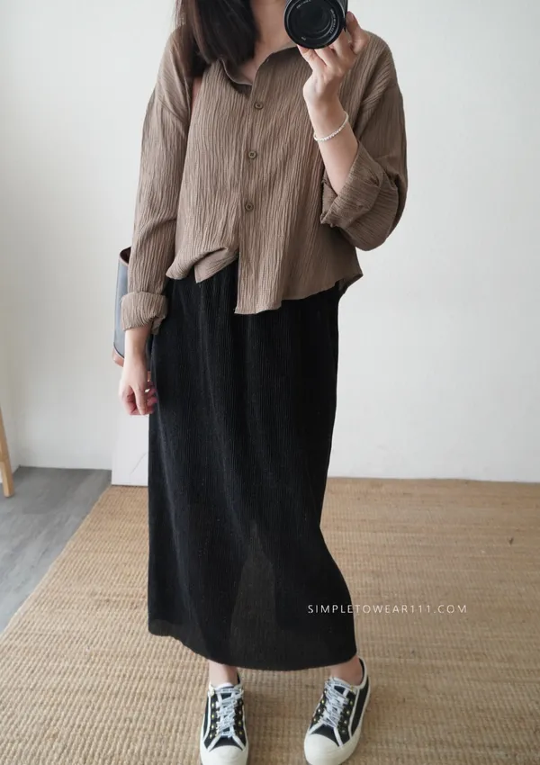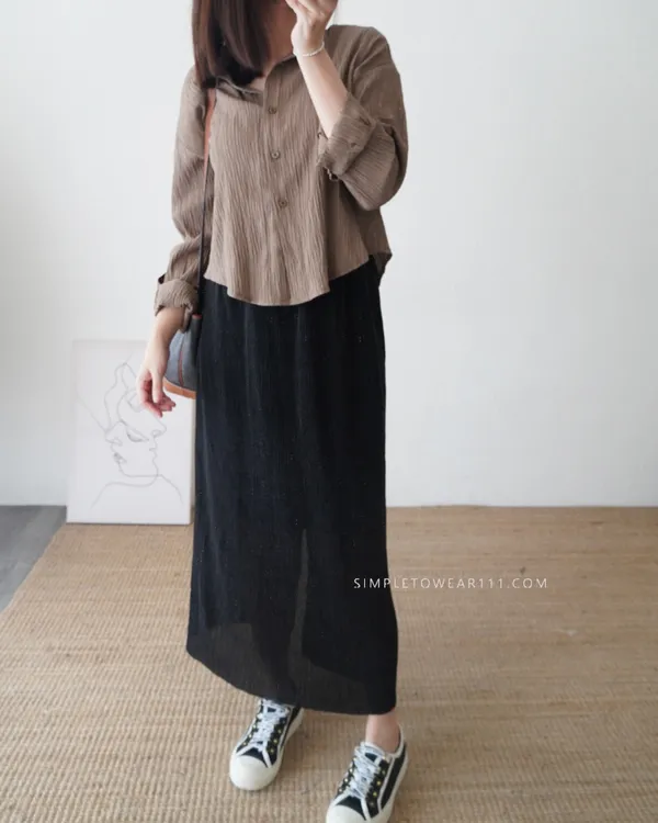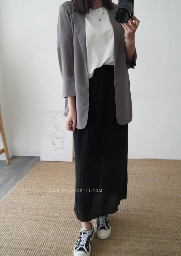早秋光澤感針織長裙 (淺灰/深灰/黑)