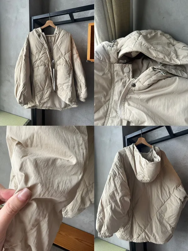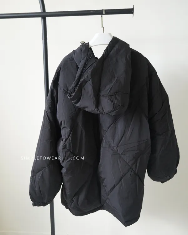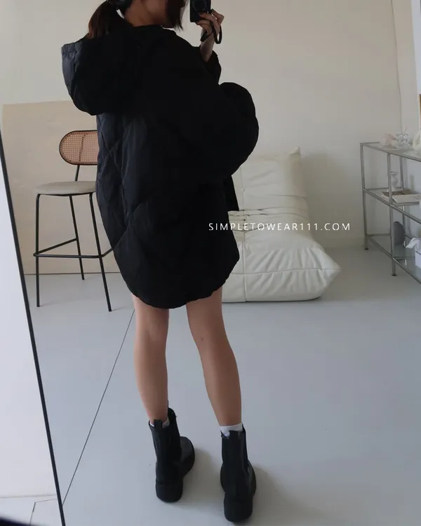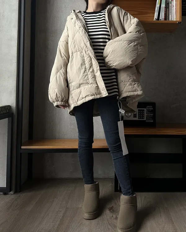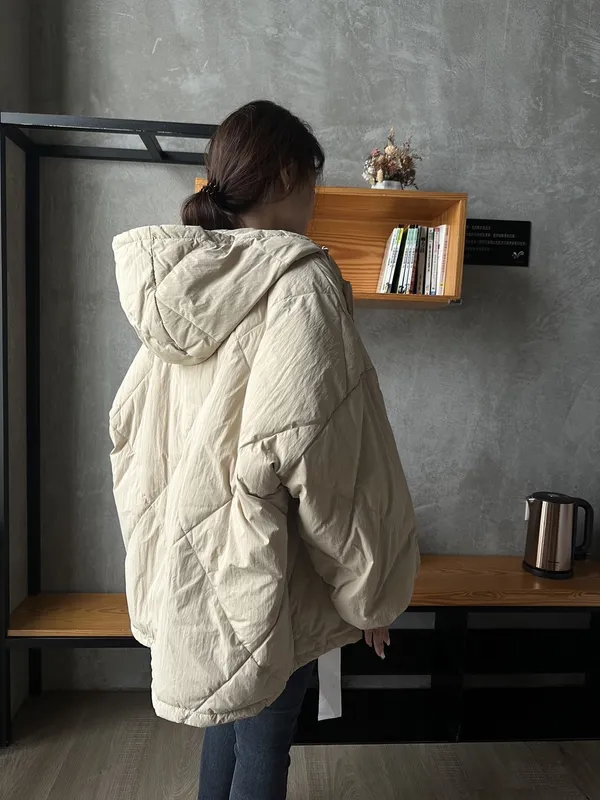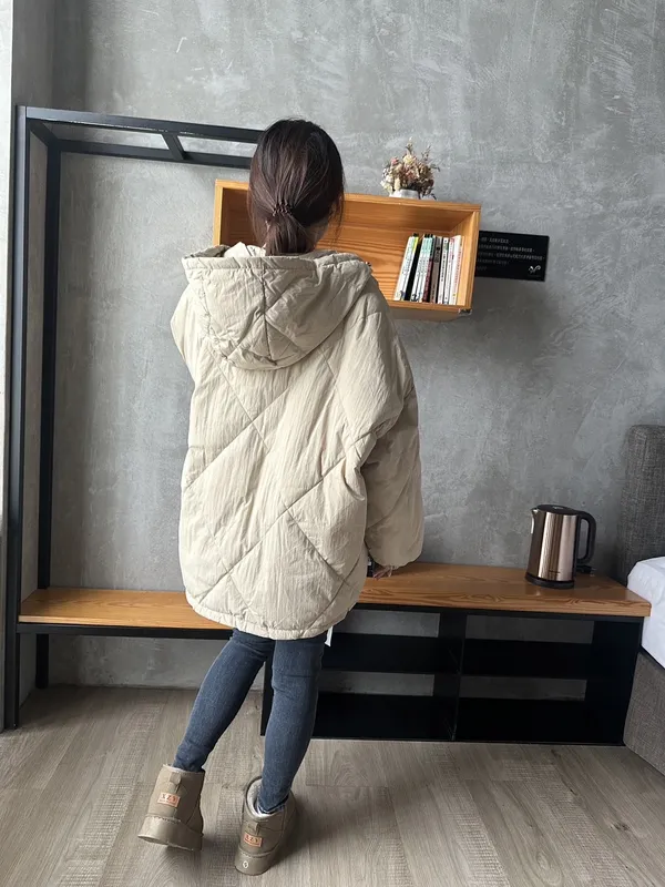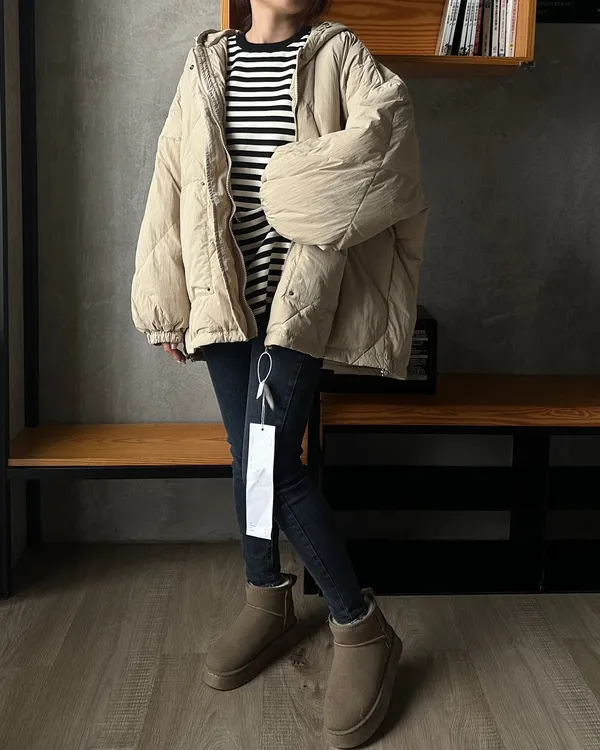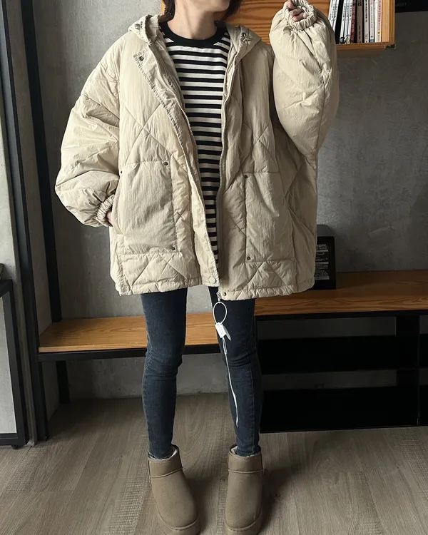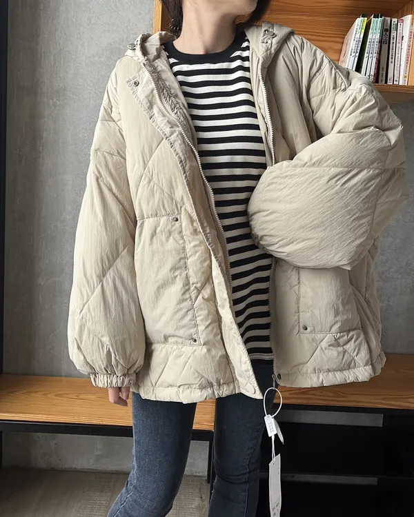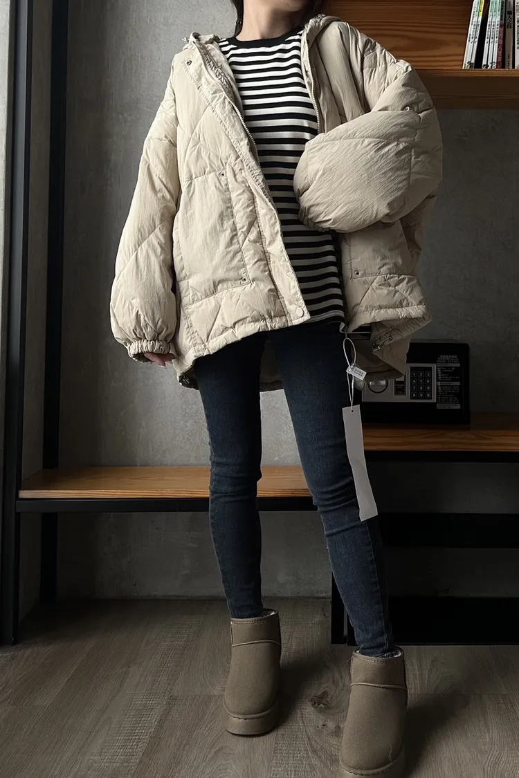 寒流必備! 大帽子寬鬆羽絨外套 (米/黑)