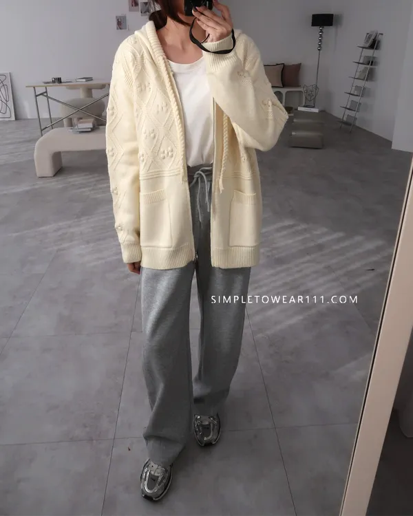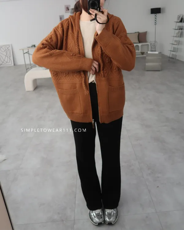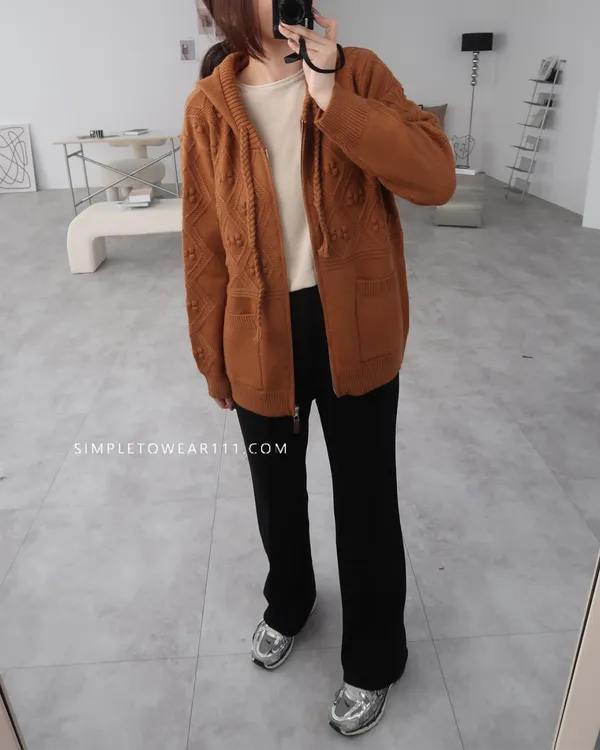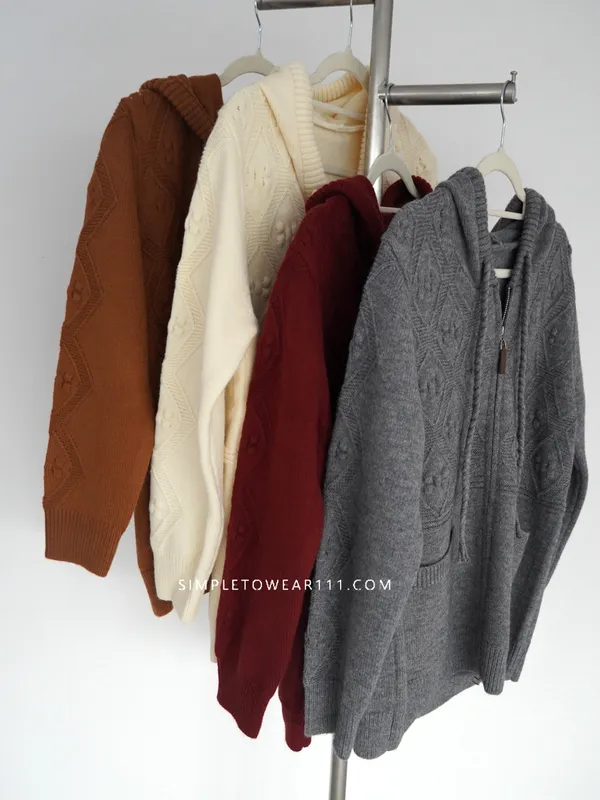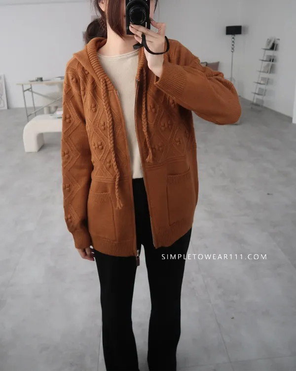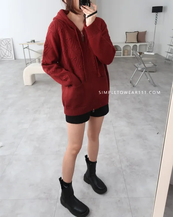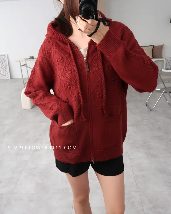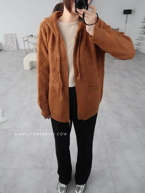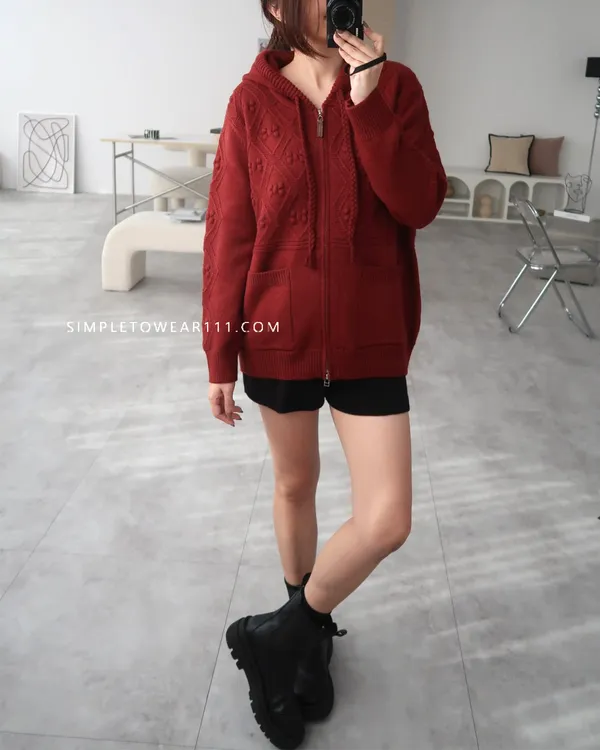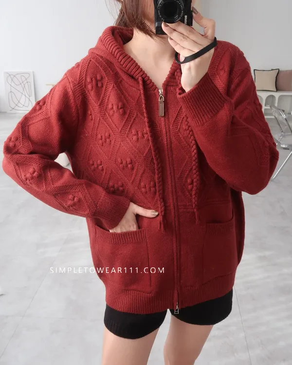麻花菱格針織外套 (紅/杏/深灰/焦糖)
