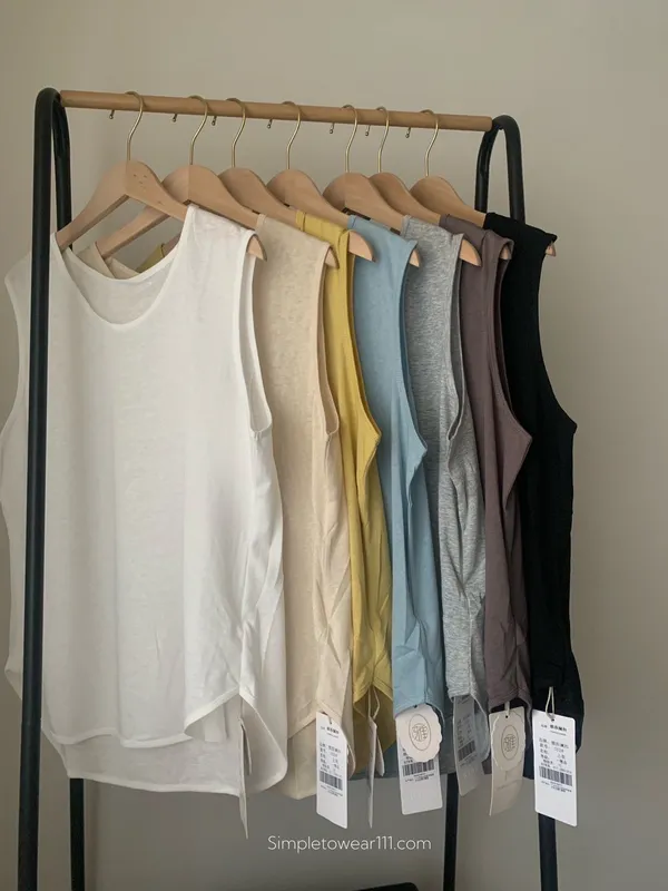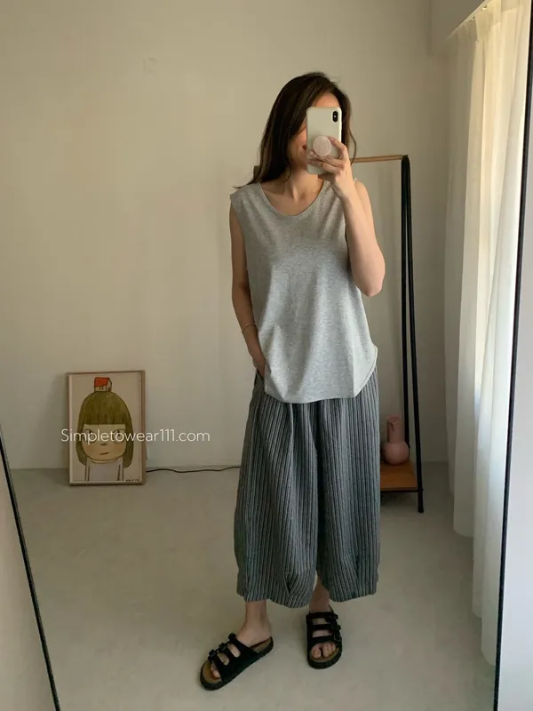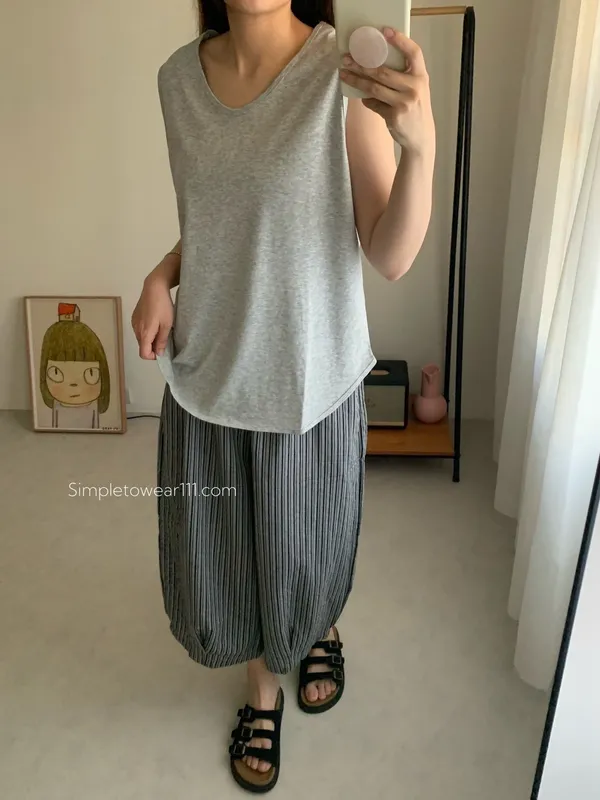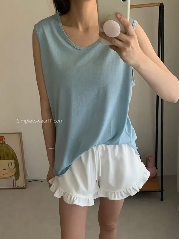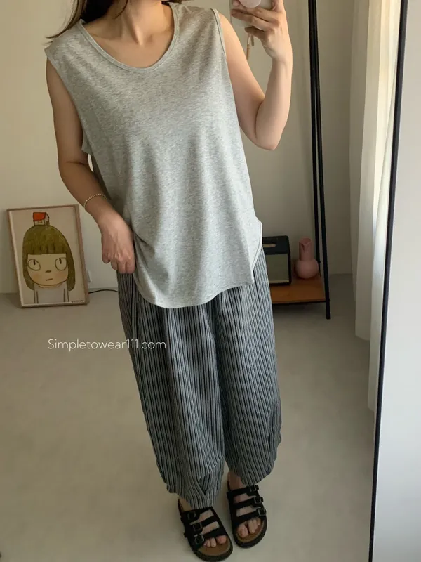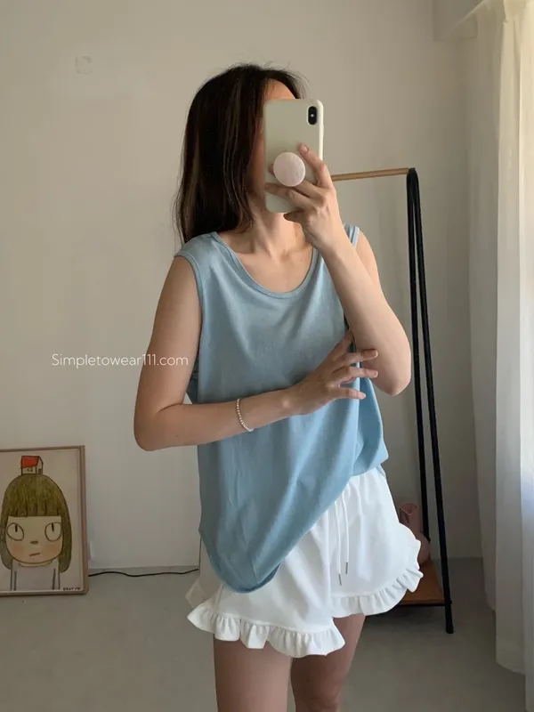 消暑U領寬鬆弧形背心 (白/杏/黃/藍/灰/深灰/黑)
