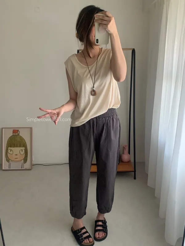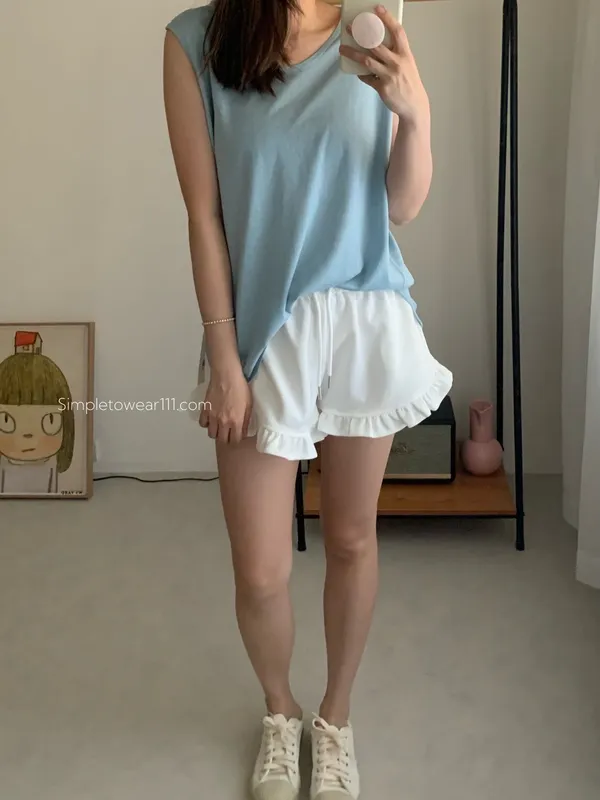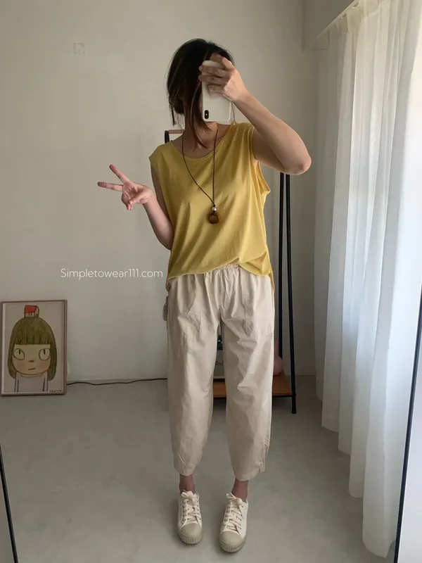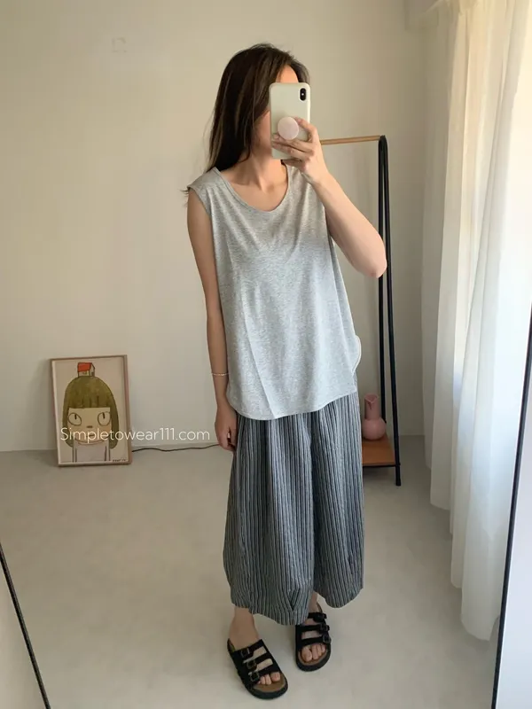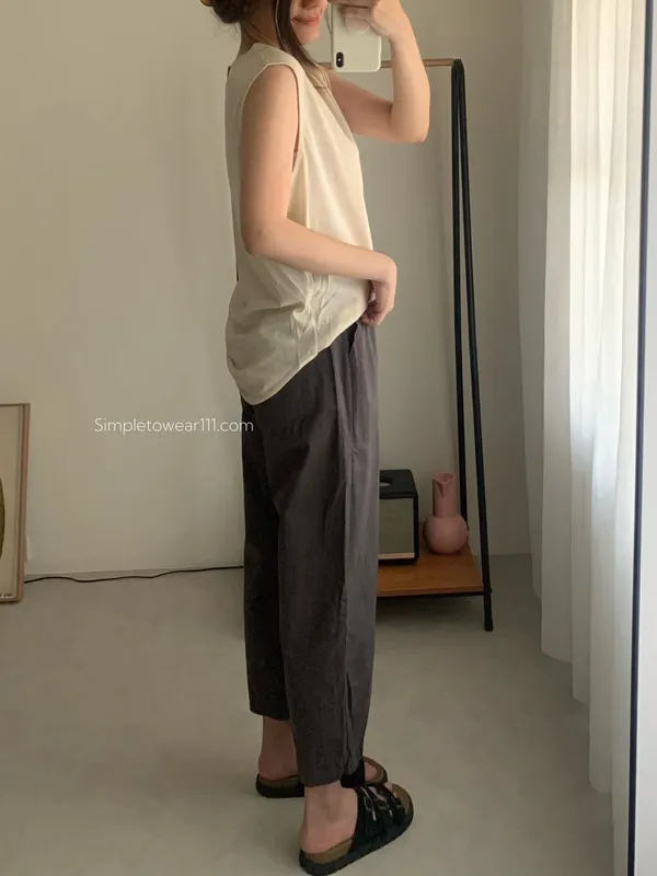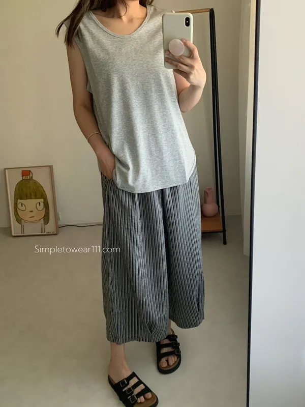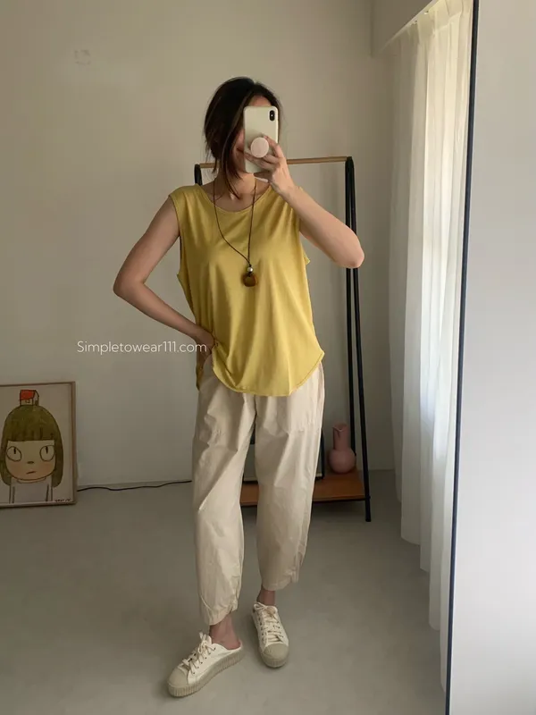 消暑U領寬鬆弧形背心 (白/杏/黃/藍/灰/深灰/黑)