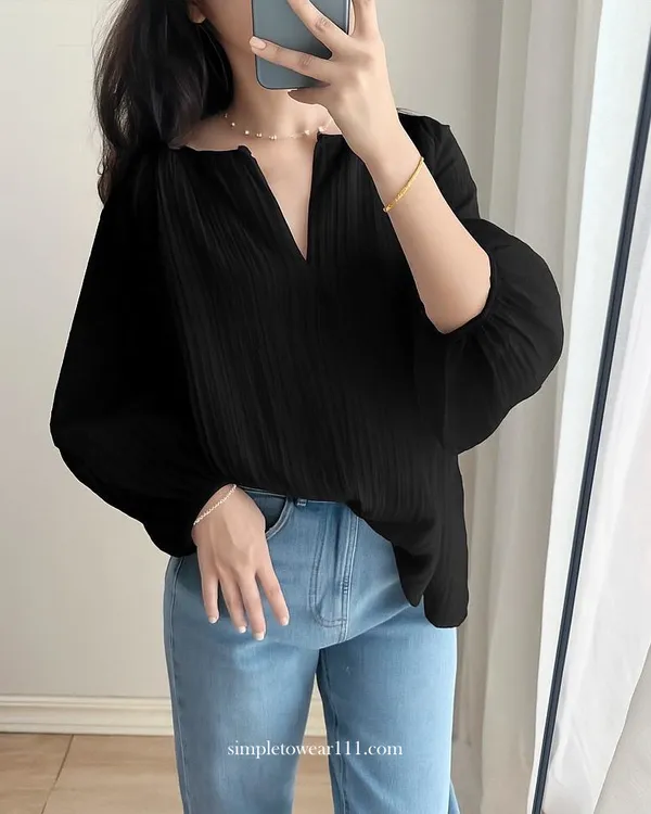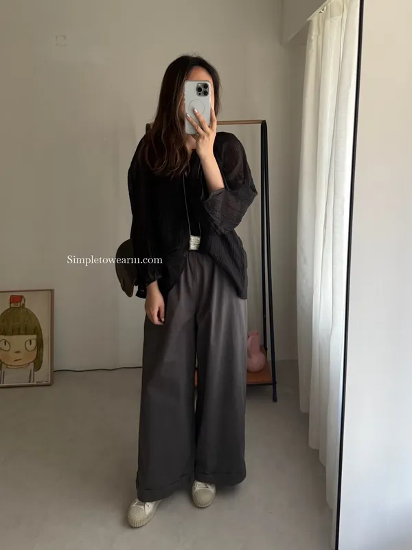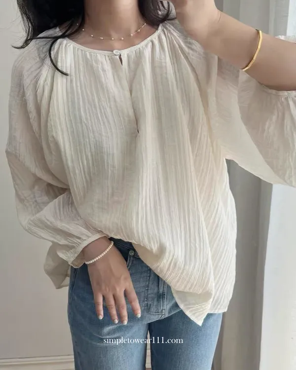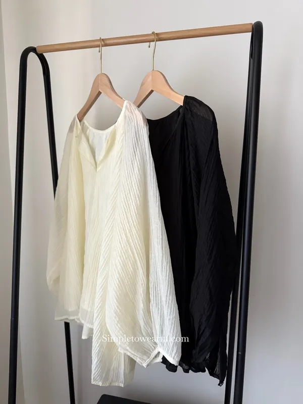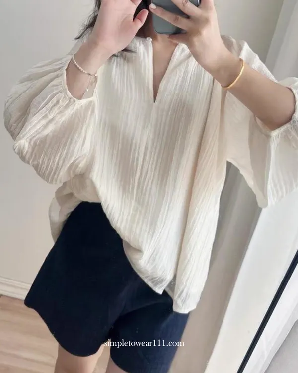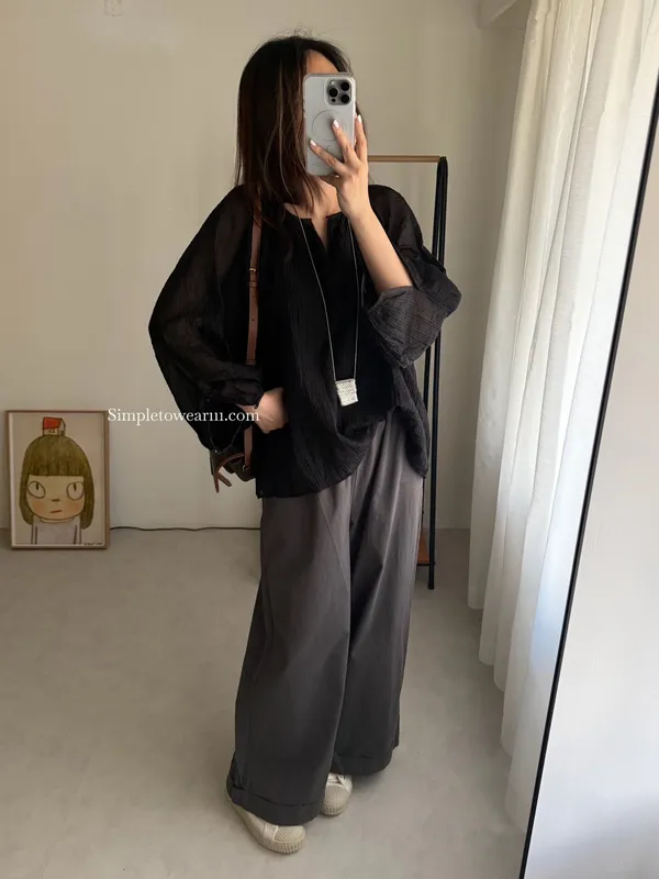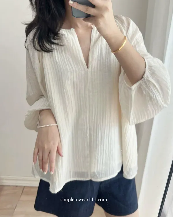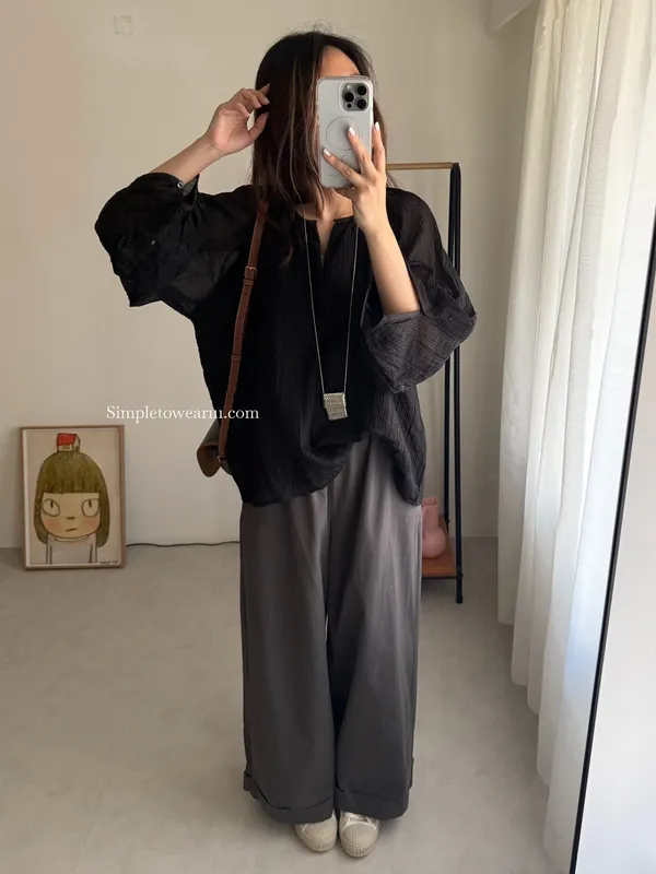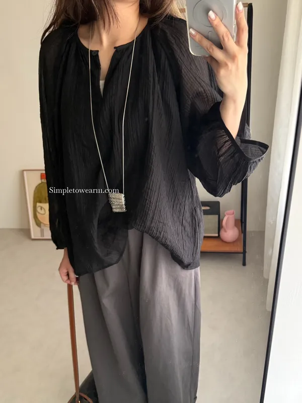 韓 慵懶感棉麻襯衫上衣 (杏/黑)