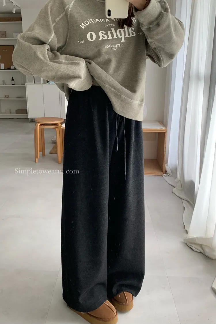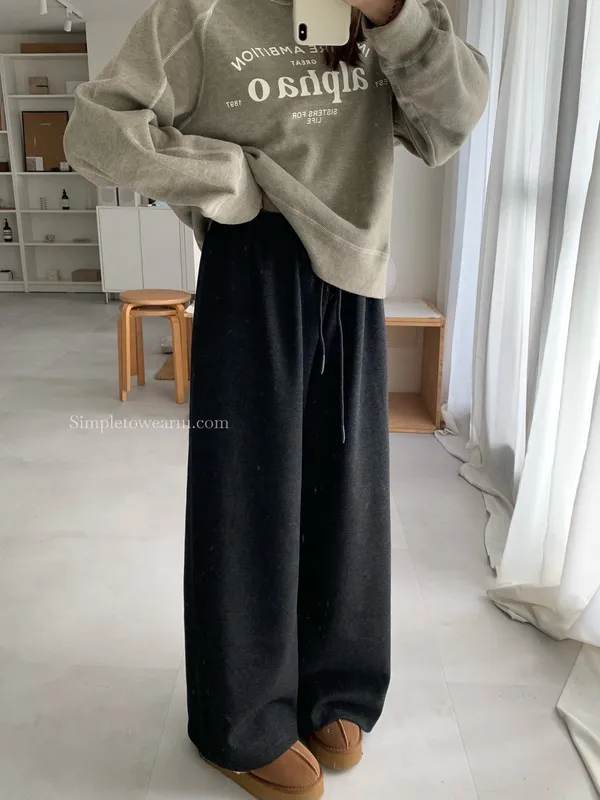 (限量現貨) 冬天必備款 暖呼呼仿羊絨落地褲 (杏/淺灰/深灰/黑)