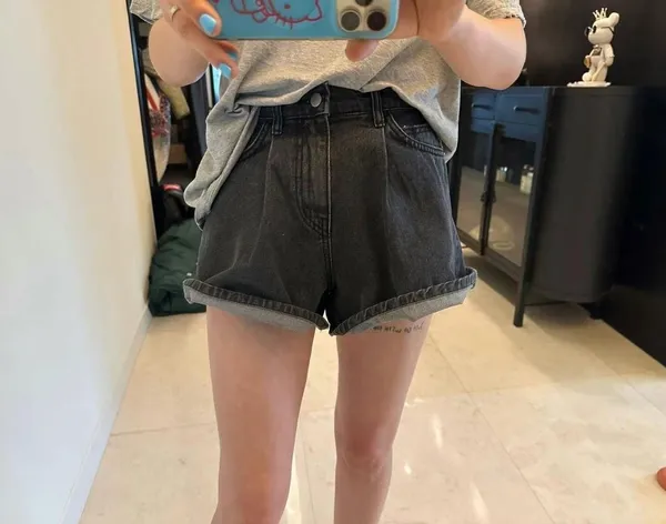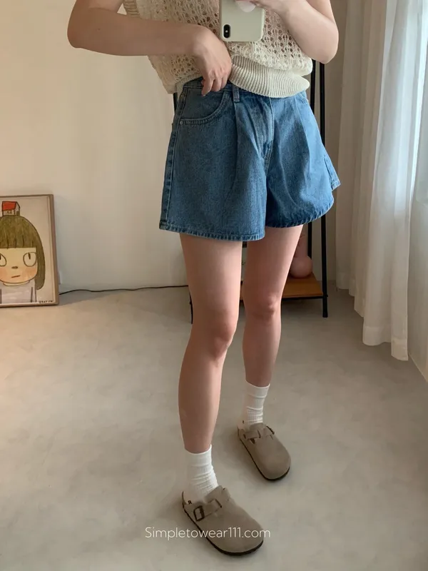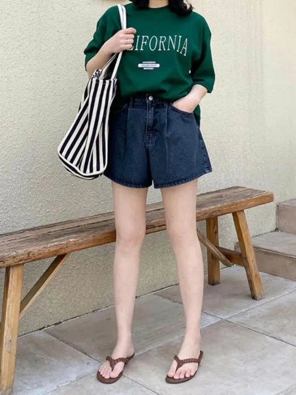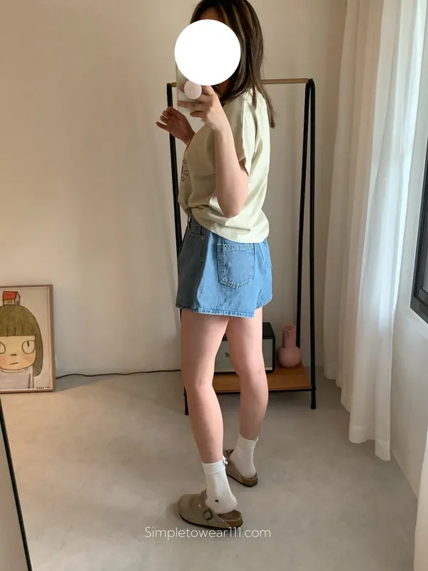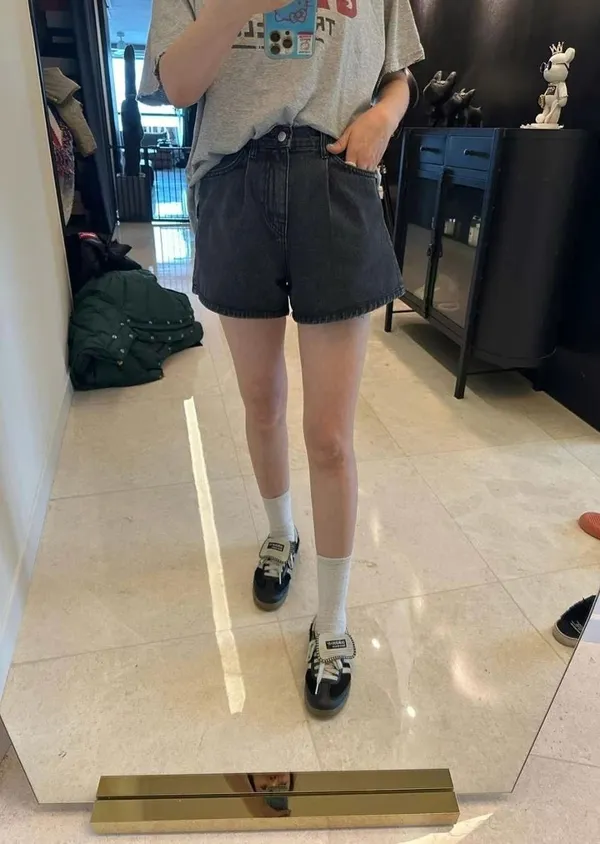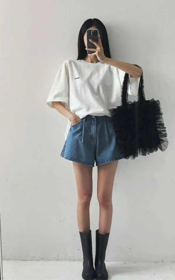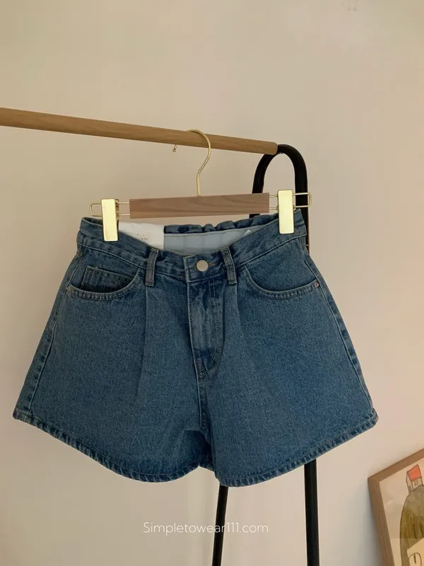 韓 A字花苞牛仔短褲 S/M/L/XL (藍/黑)