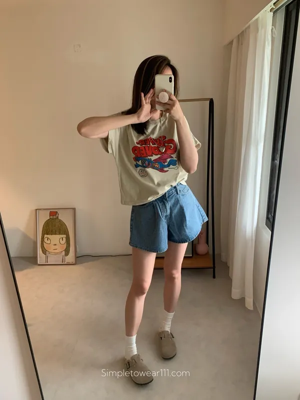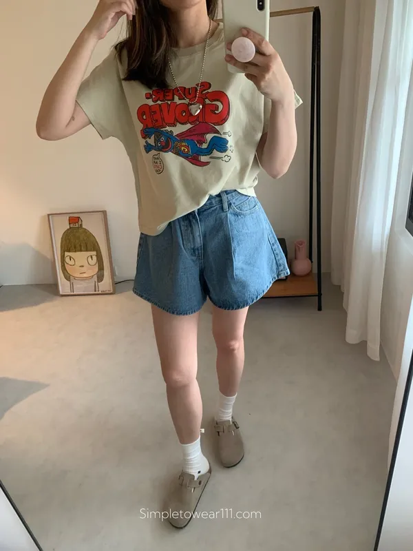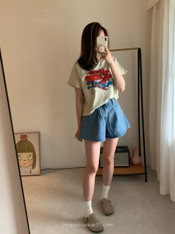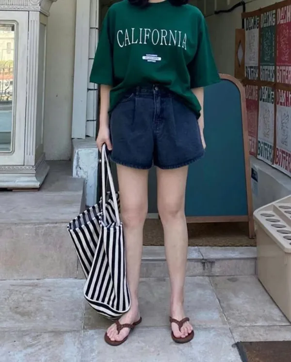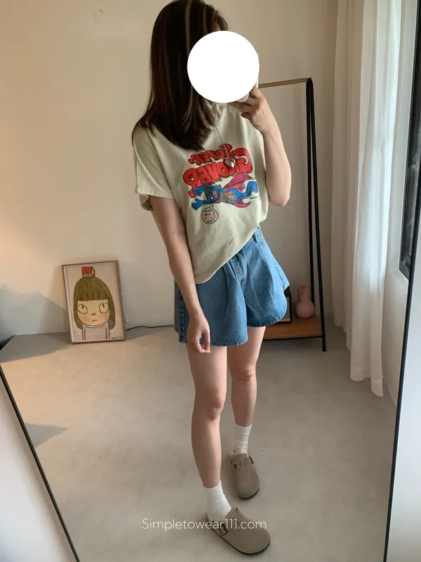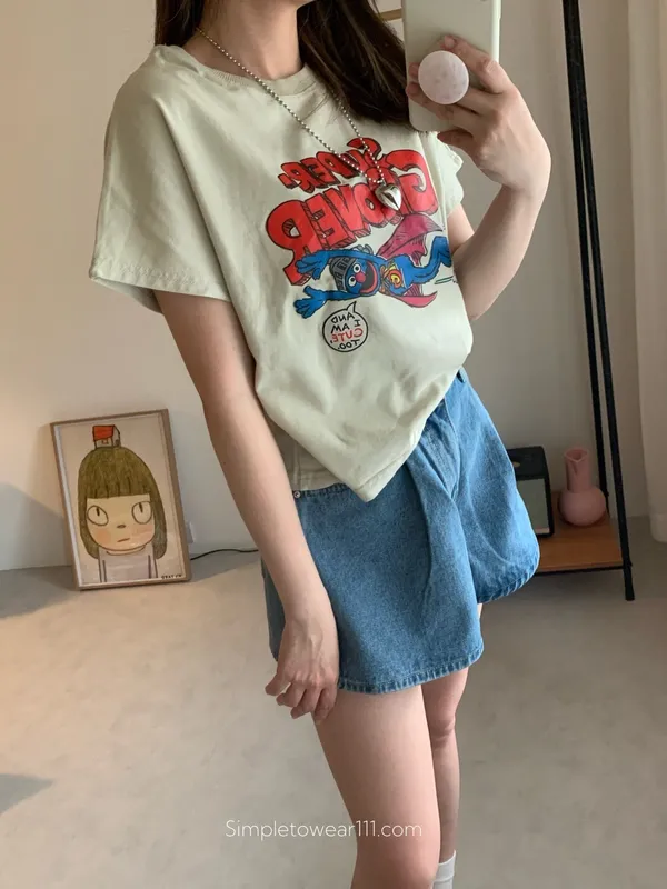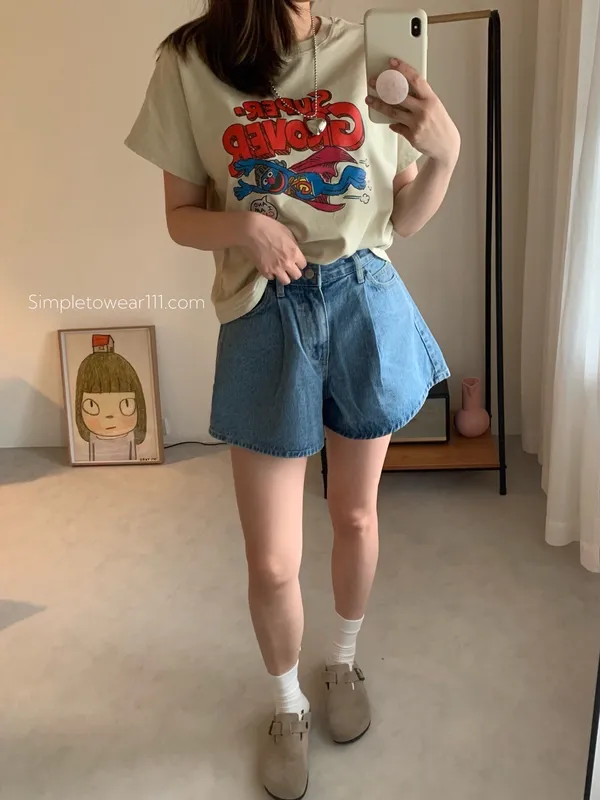 韓 A字花苞牛仔短褲 S/M/L/XL (藍/黑)