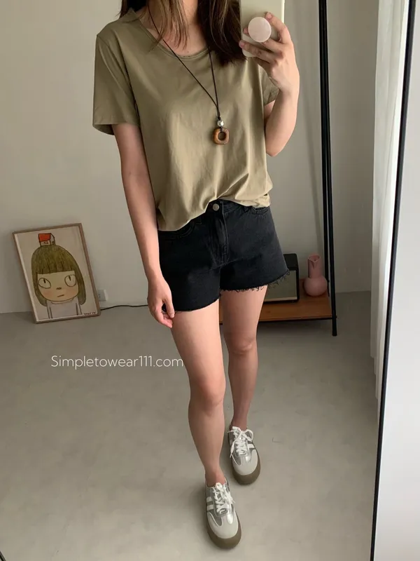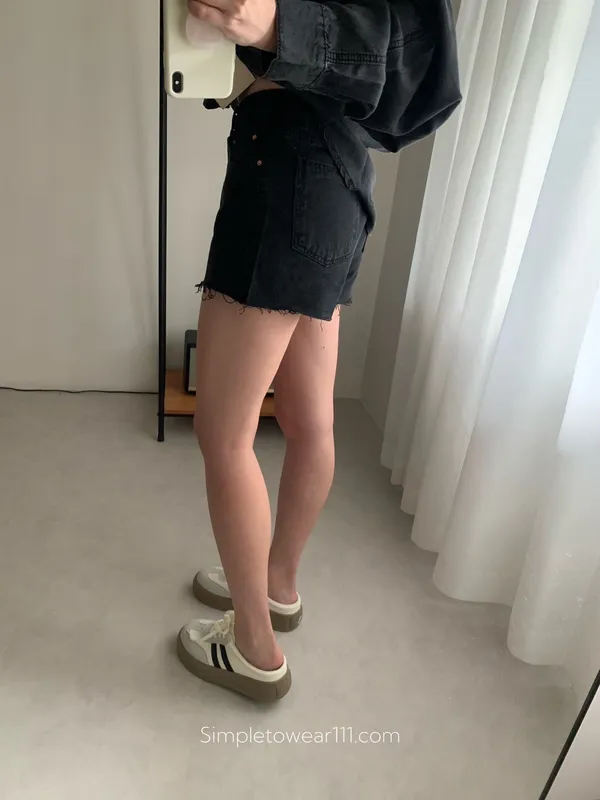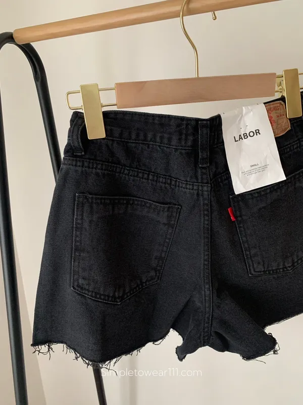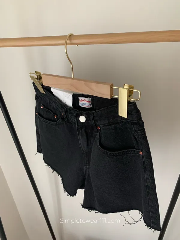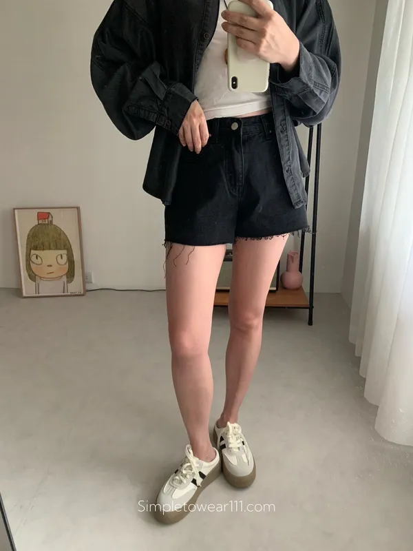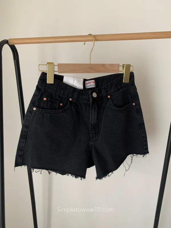 韓 經典款不修邊黑短褲 S~L