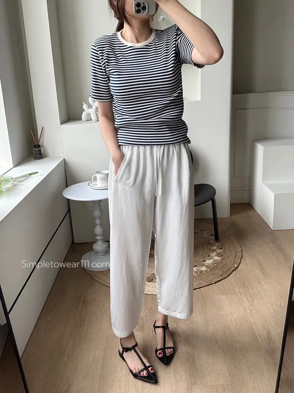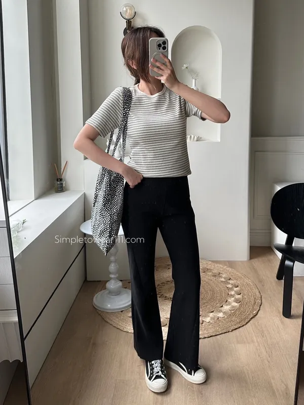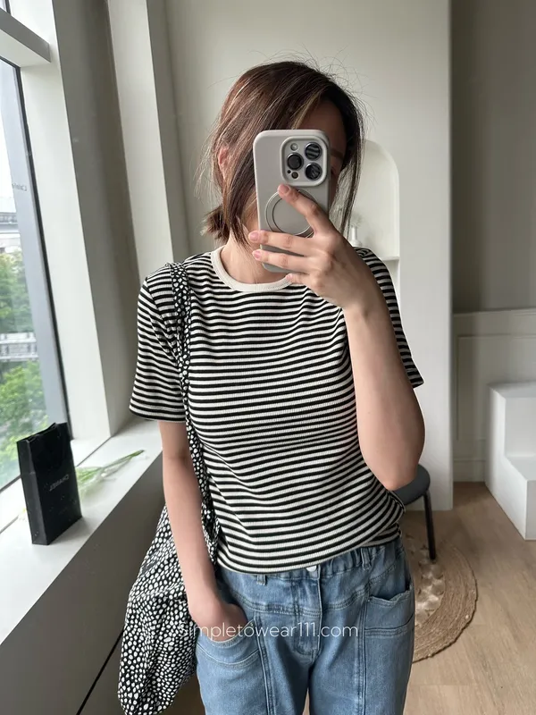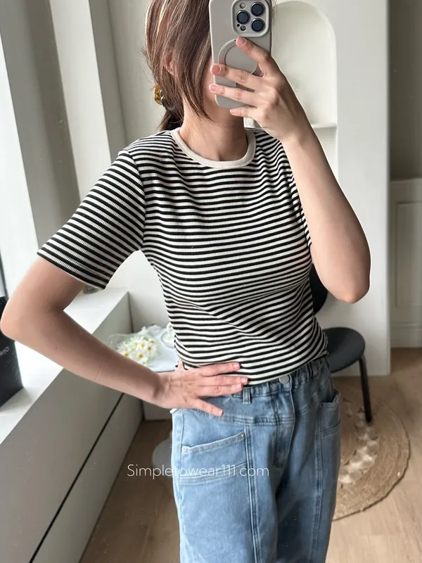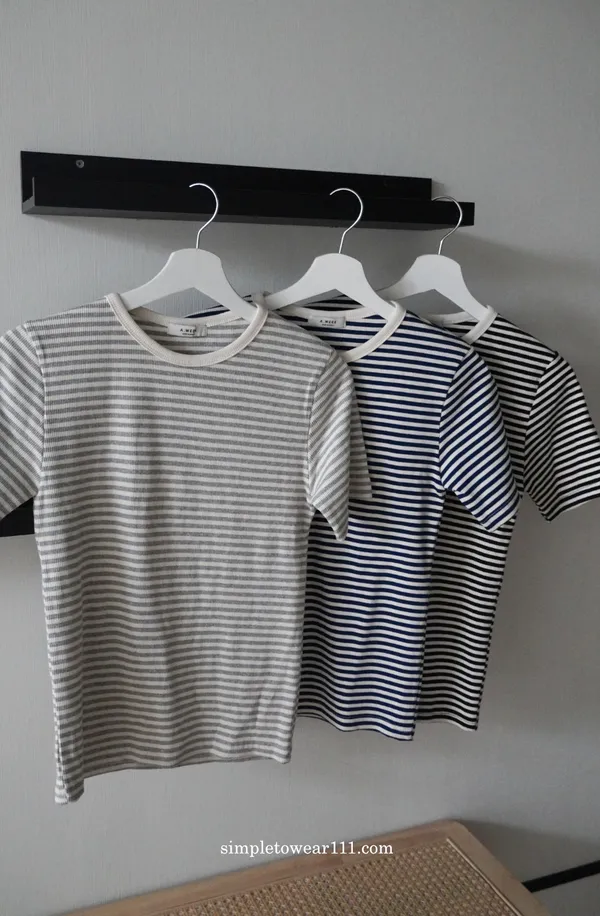 韓 質感條紋基本TEE (黑/藍/灰)