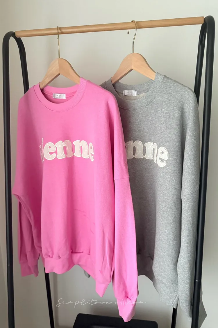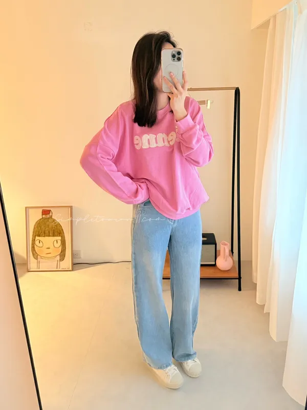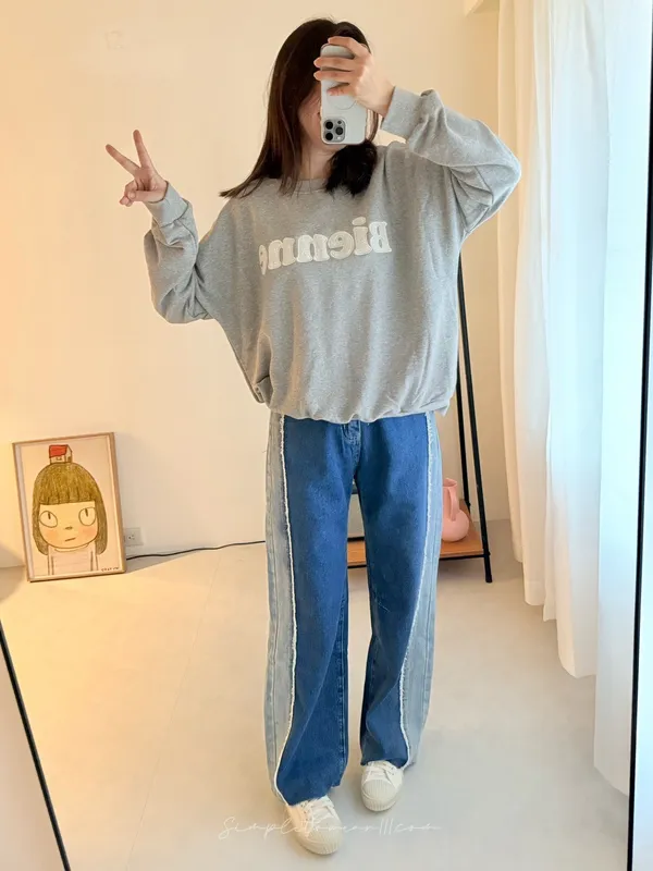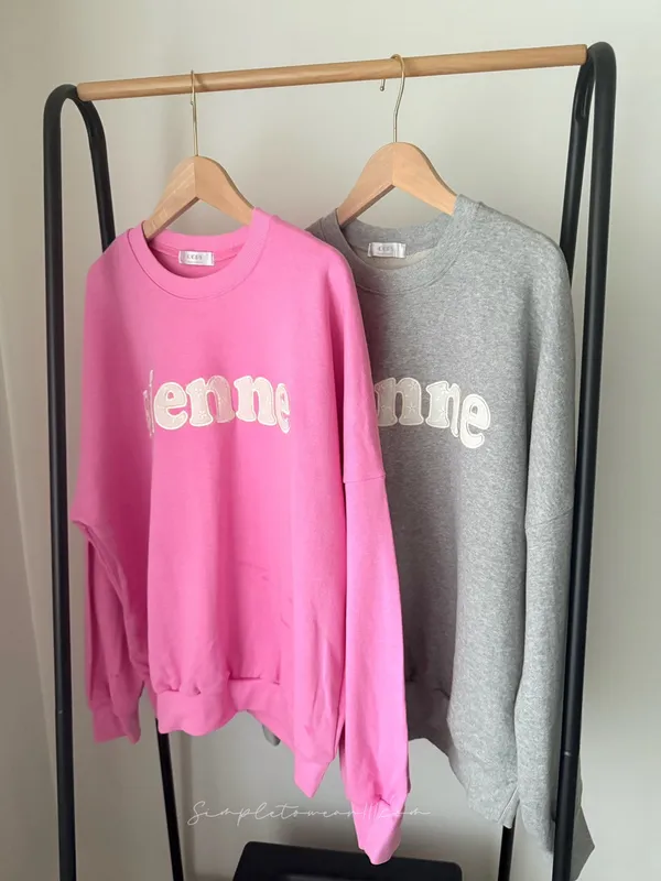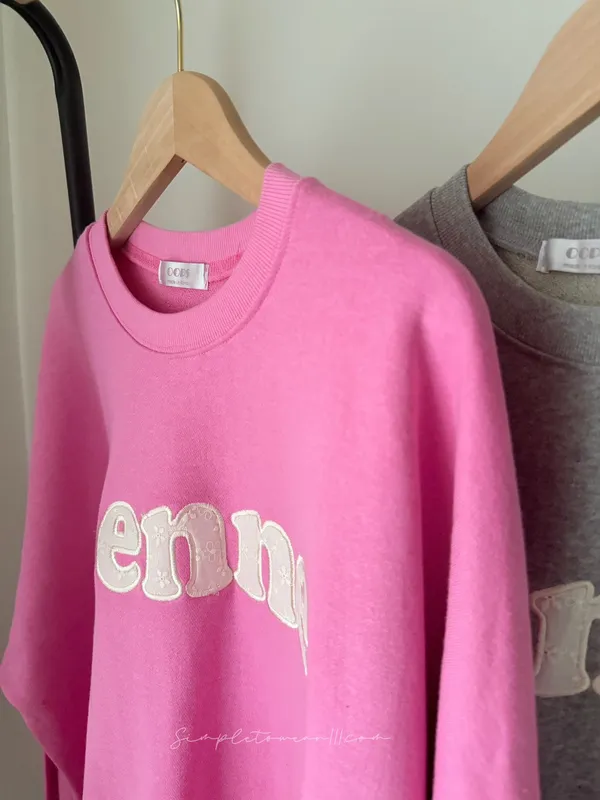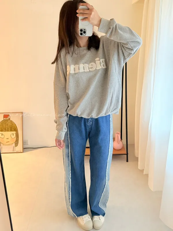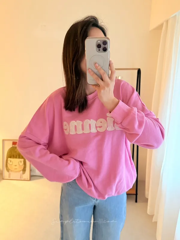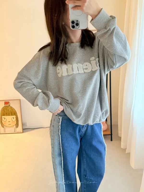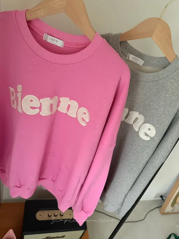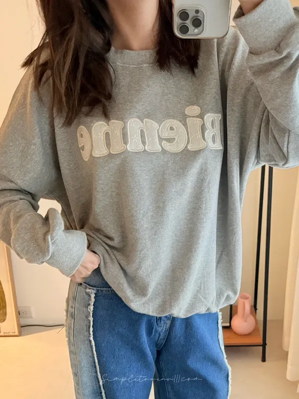 N20 韓 Bienne貼布蕾絲袖大學TEE (粉/灰)