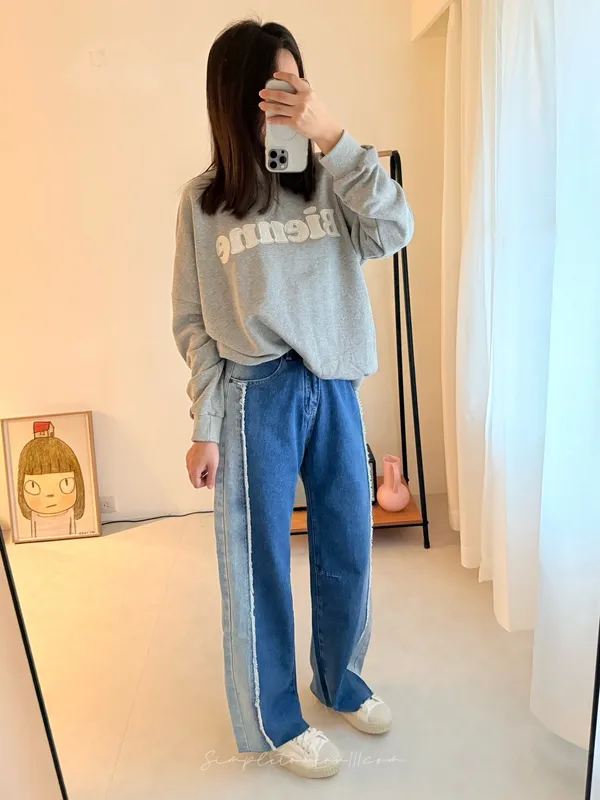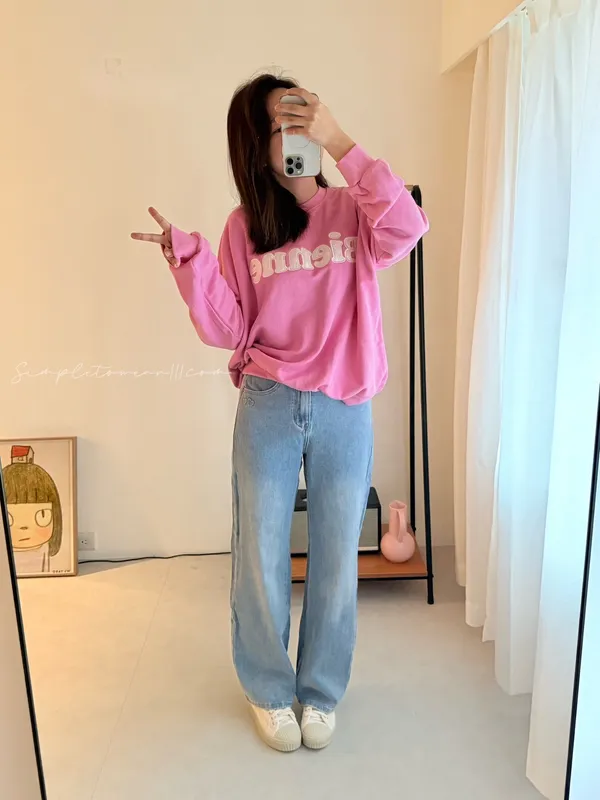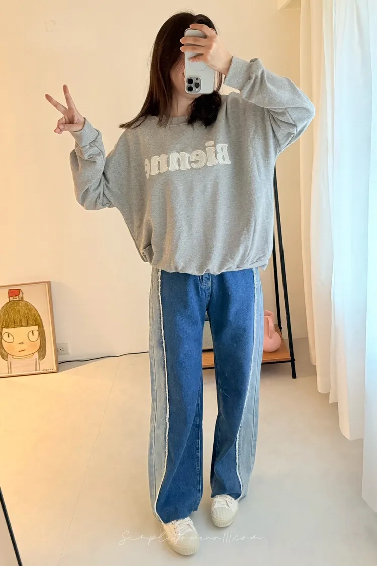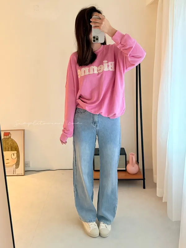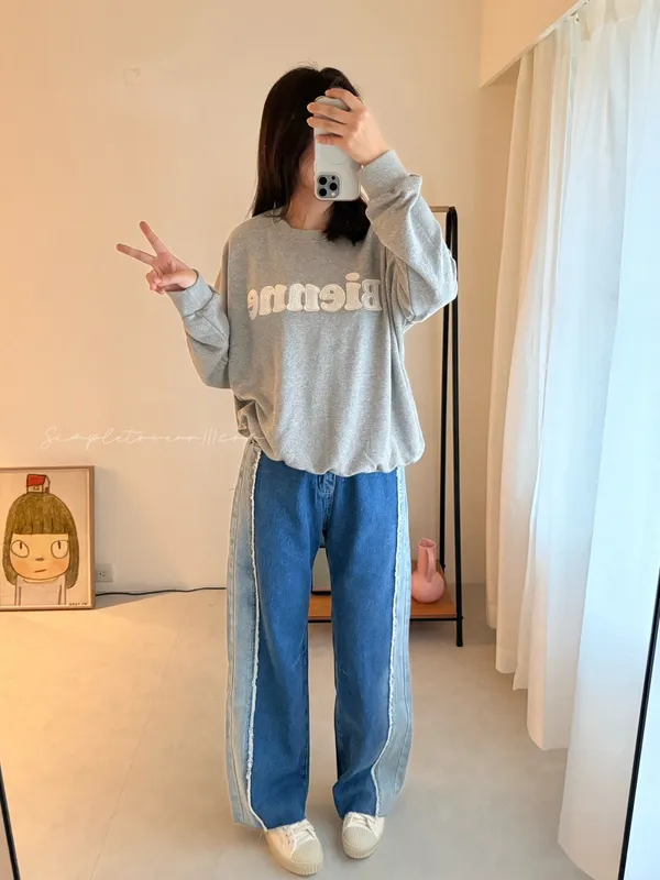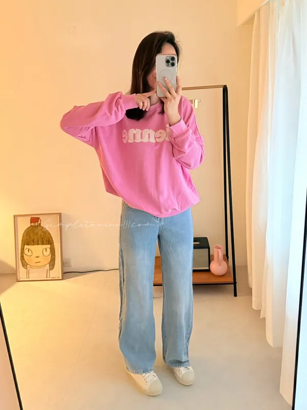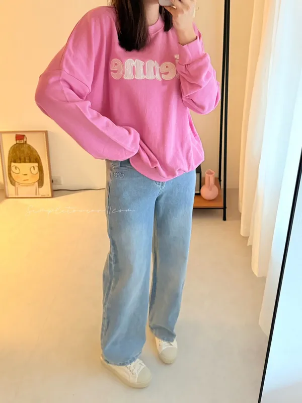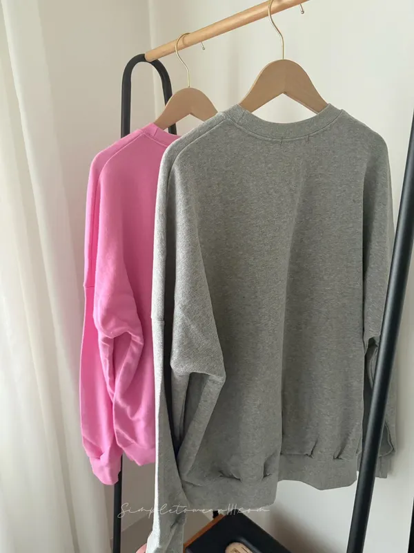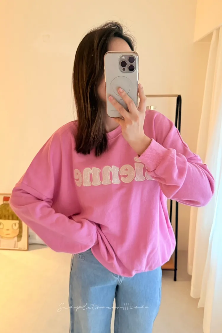 N20 韓 Bienne貼布蕾絲袖大學TEE (粉/灰)