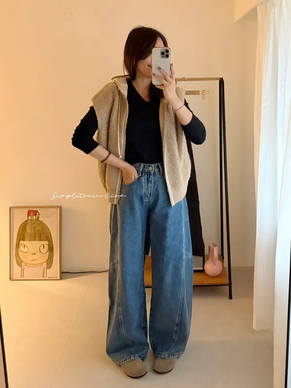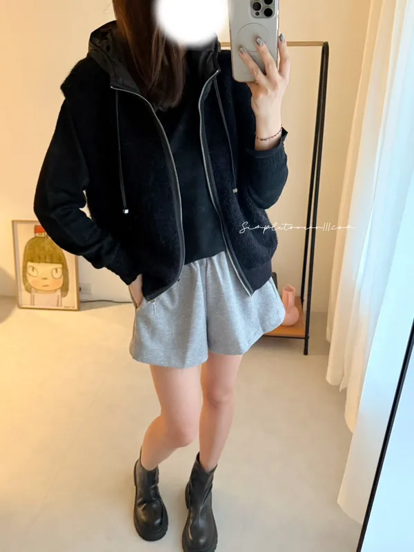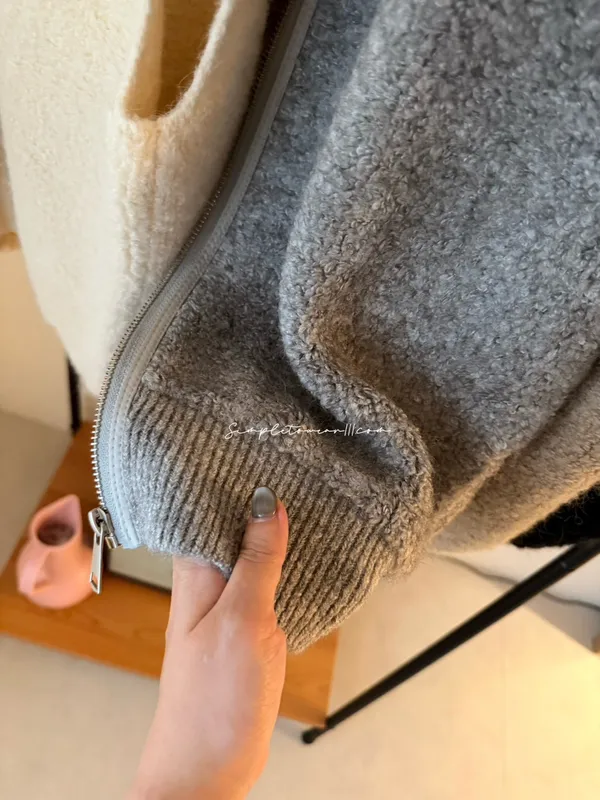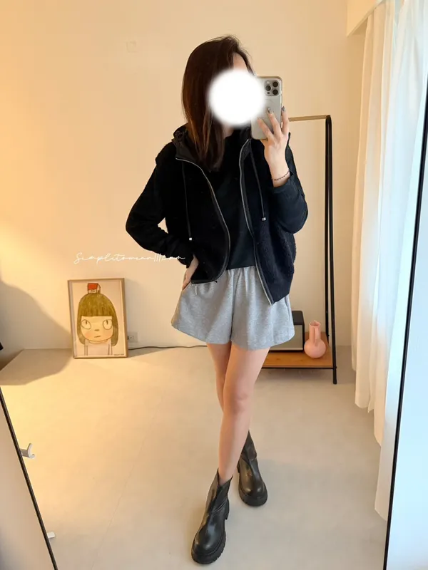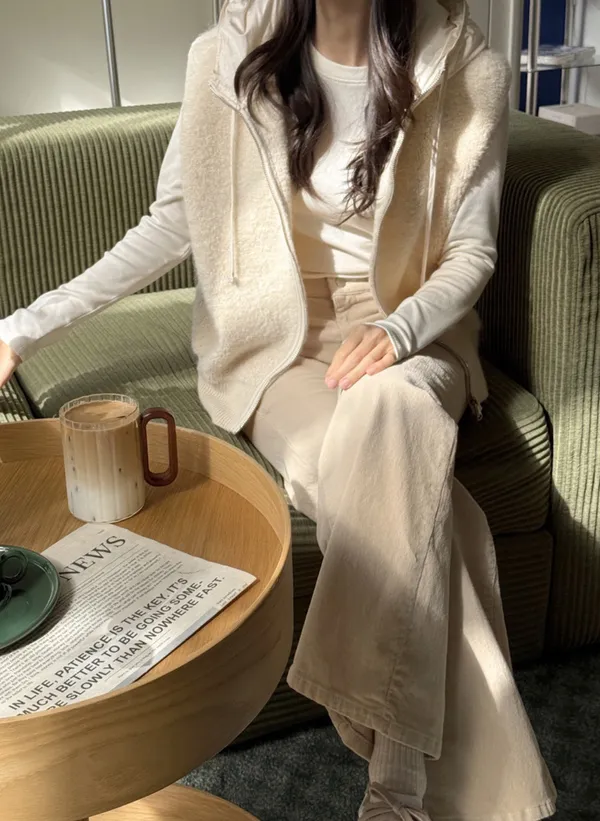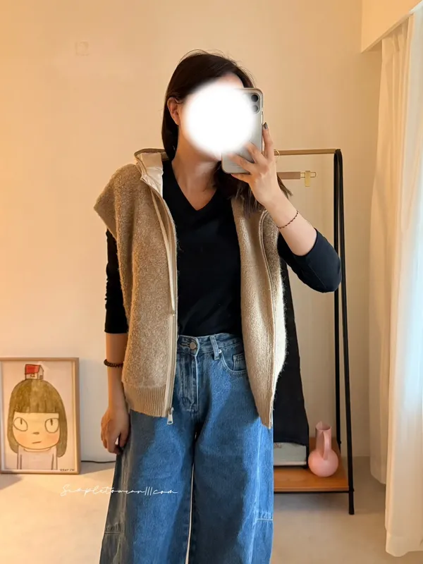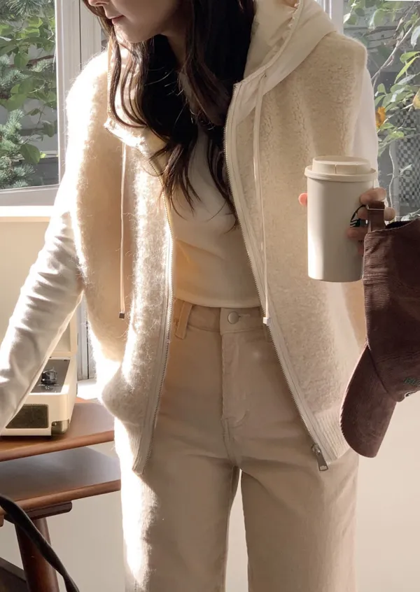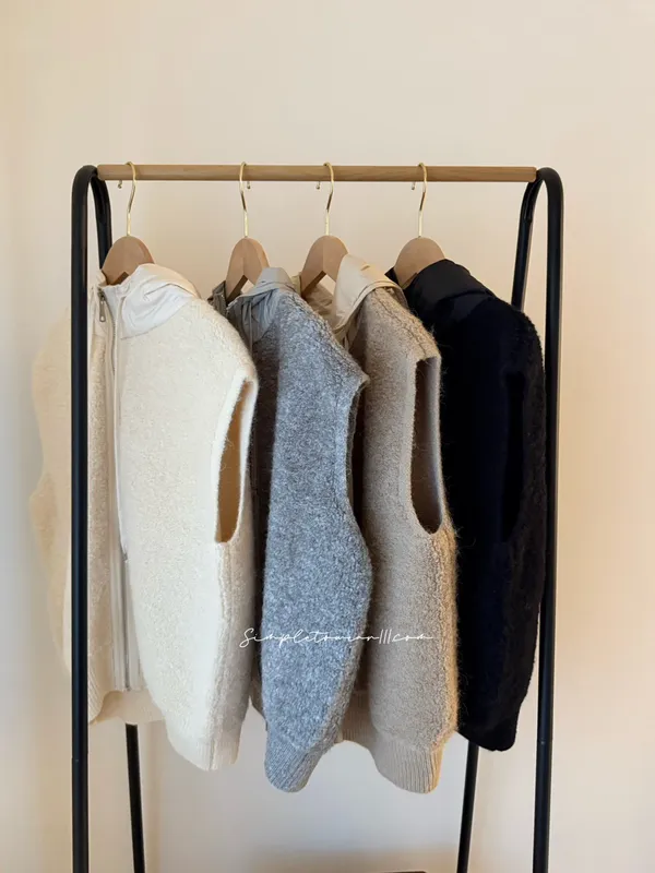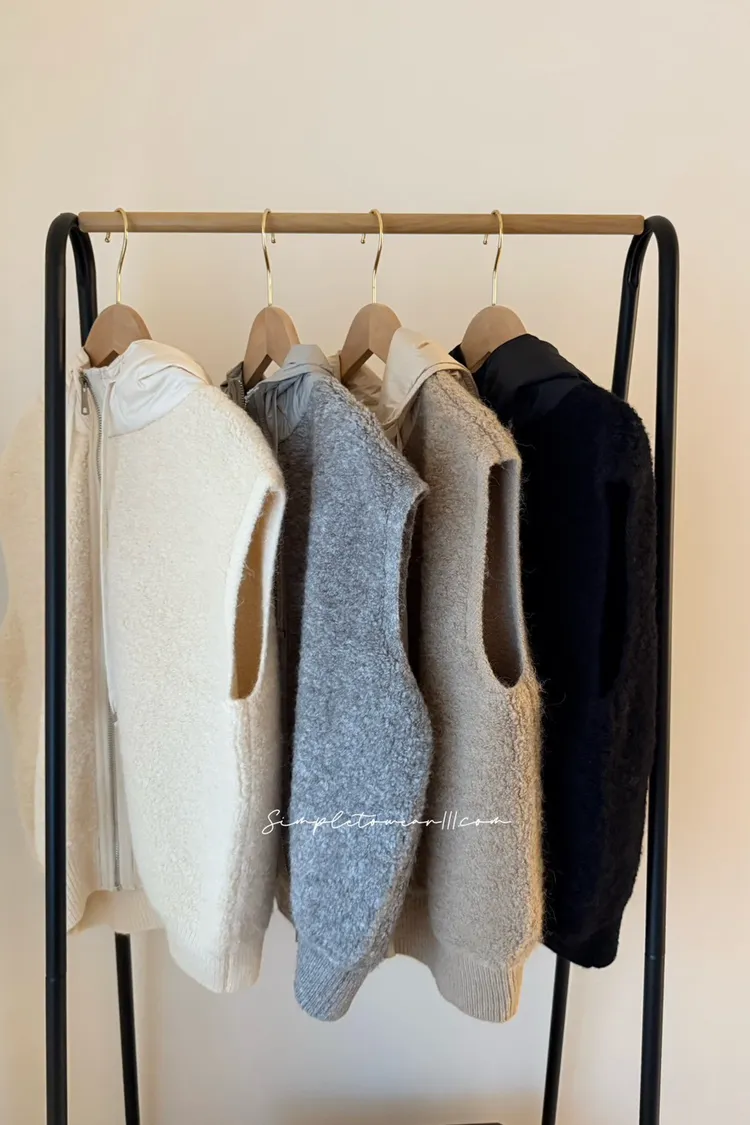 【雙11特賣】圓圓圈圈拼接帽背心 (杏/卡/灰/黑)