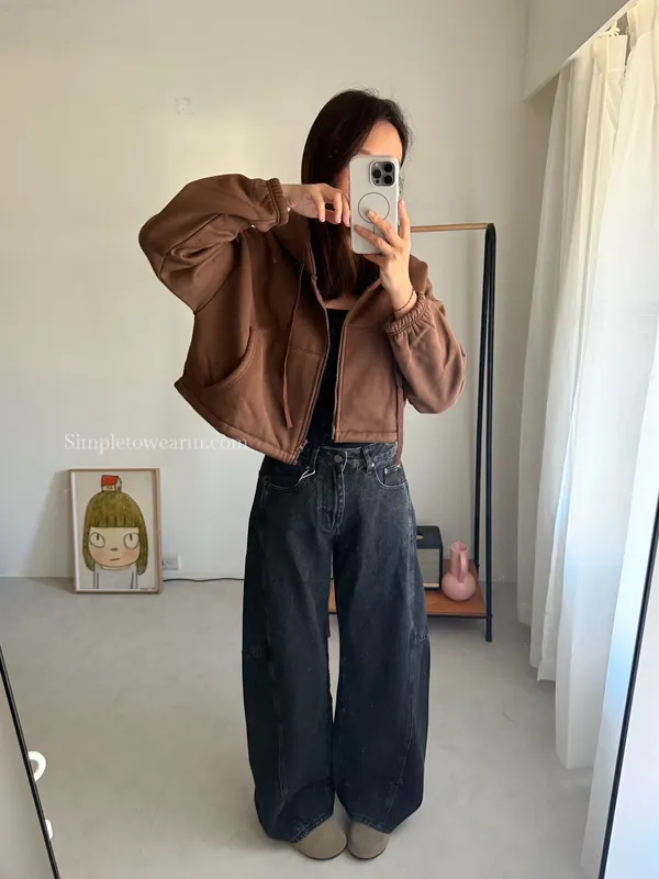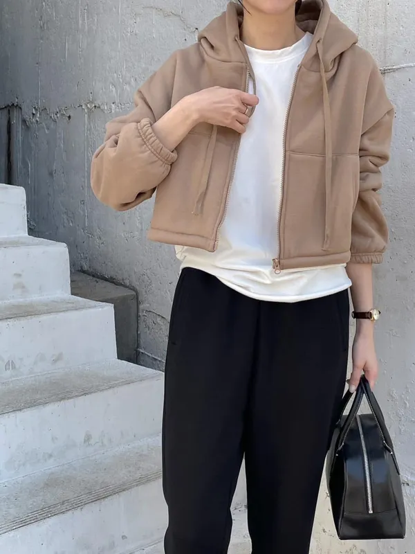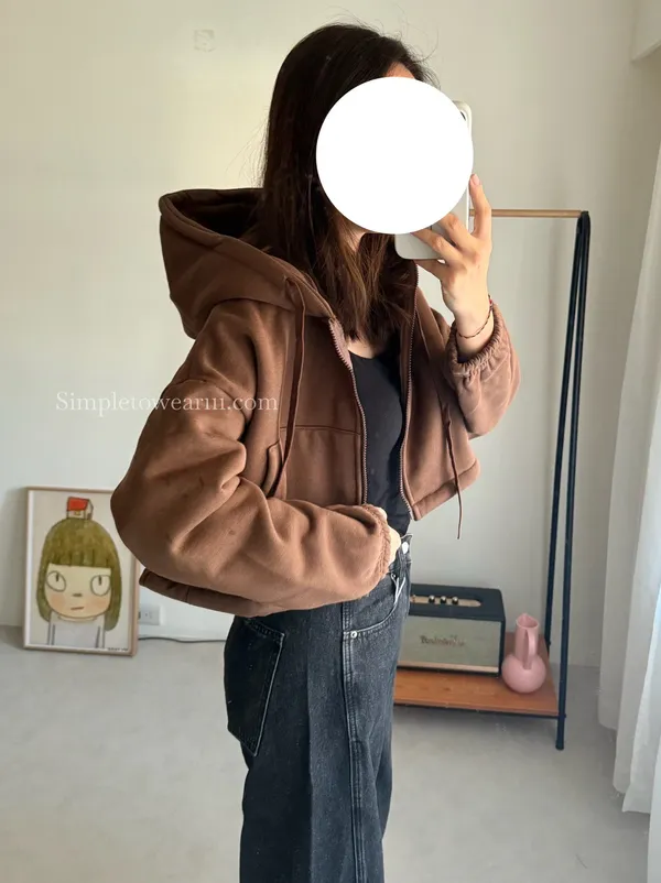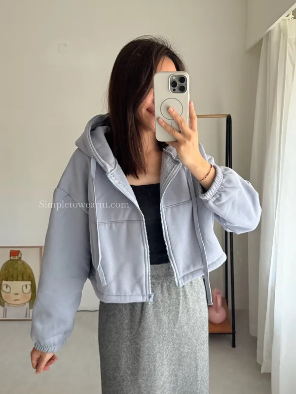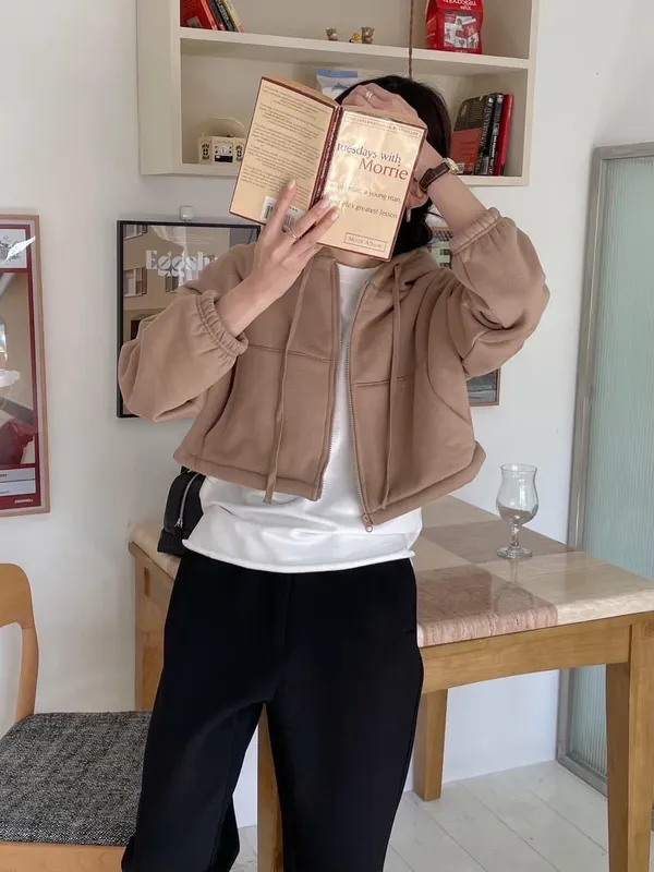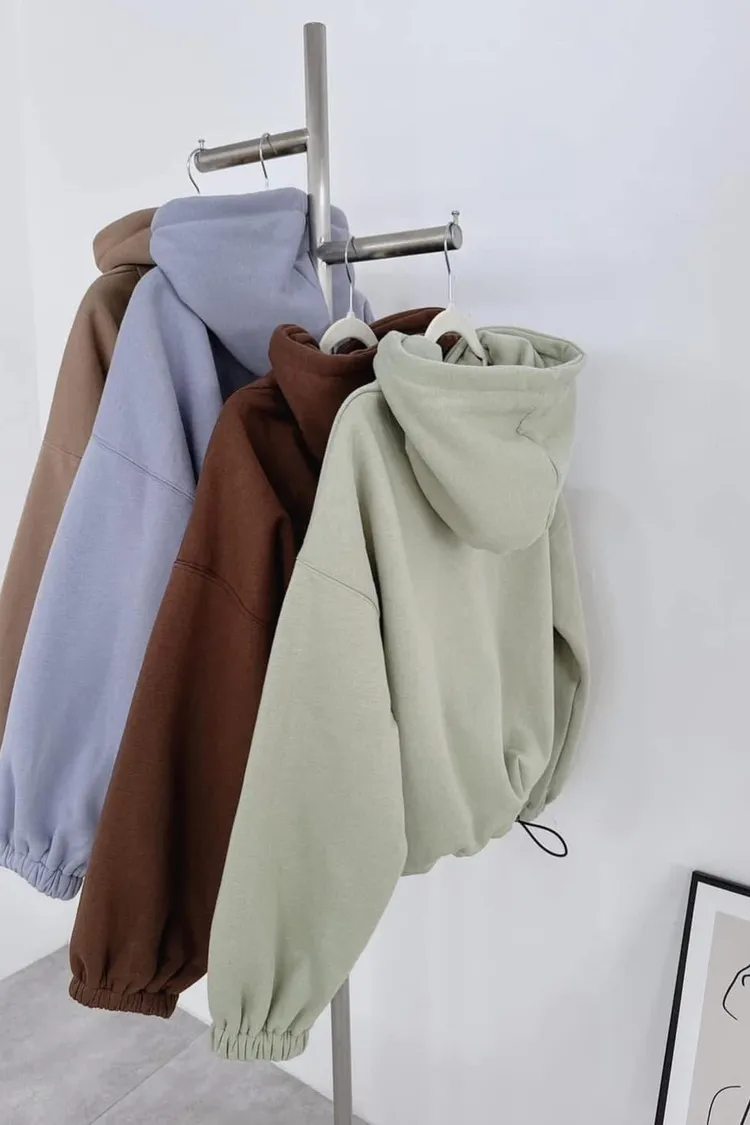 韓 刷毛短版連帽外套 (嫩綠/baby藍/奶茶/咖啡)