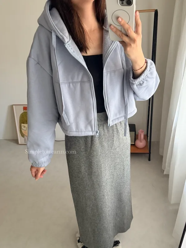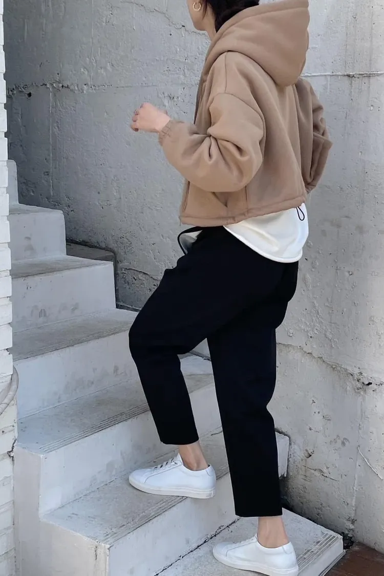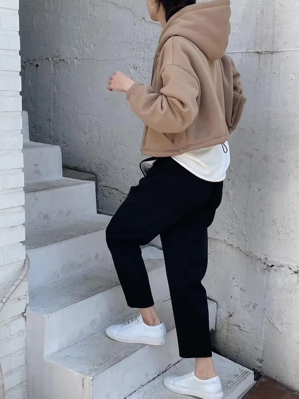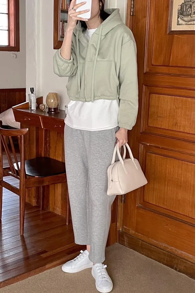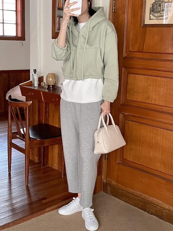 韓 刷毛短版連帽外套 (嫩綠/baby藍/奶茶/咖啡)
