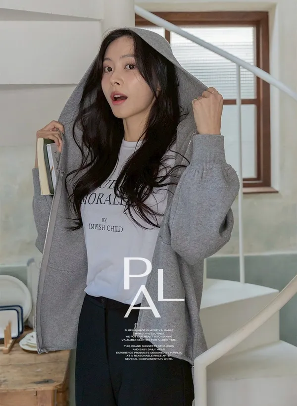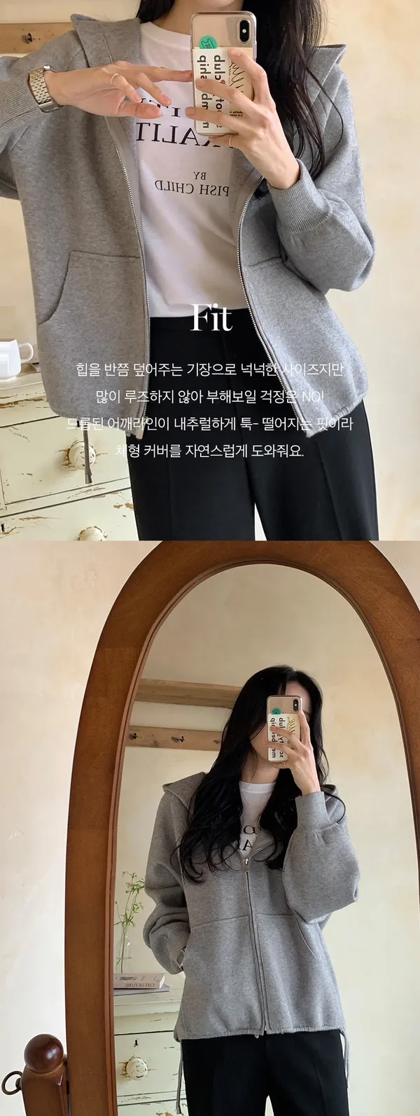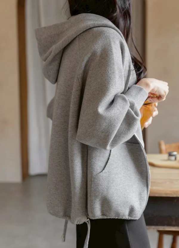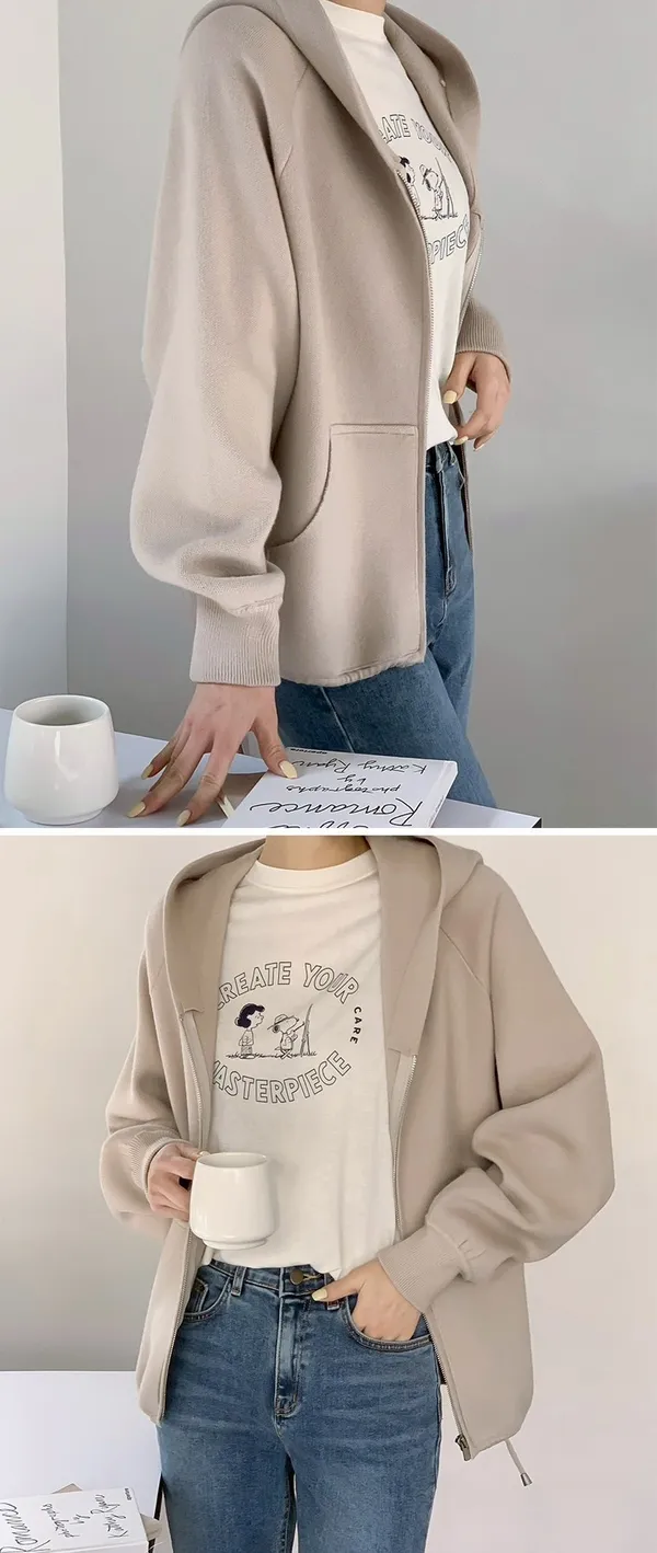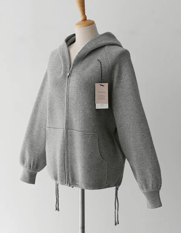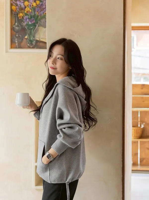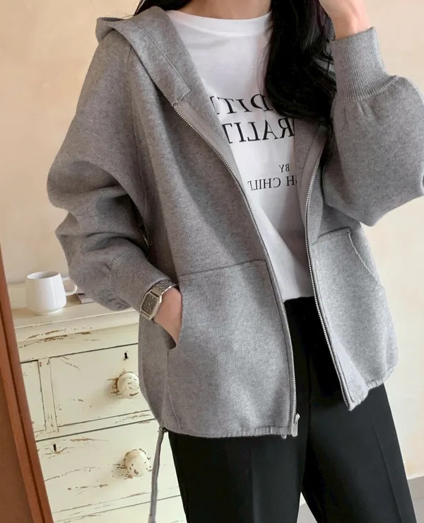 韓 紮實針織連帽外套 (灰色/燕麥)