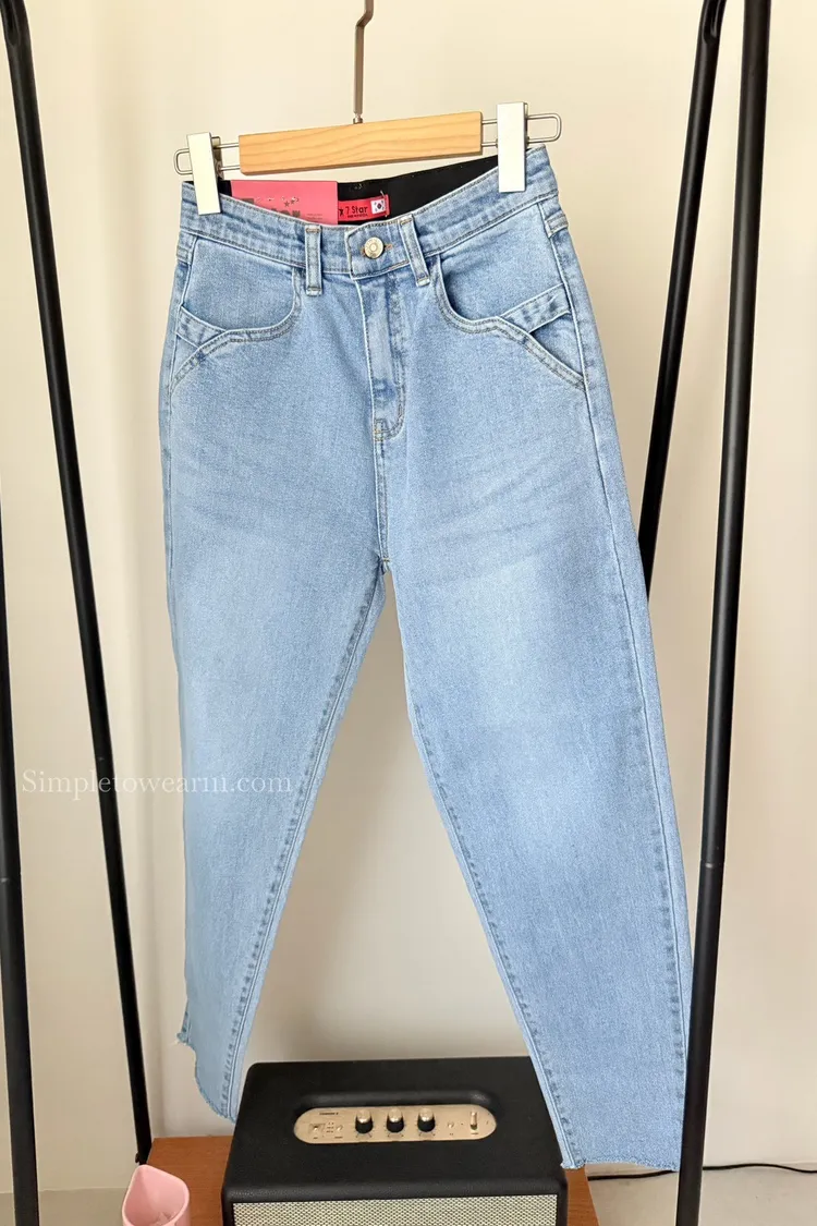 韓 淺藍刷色無刷破小男友褲 S~XXL