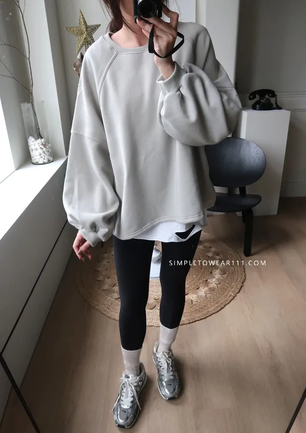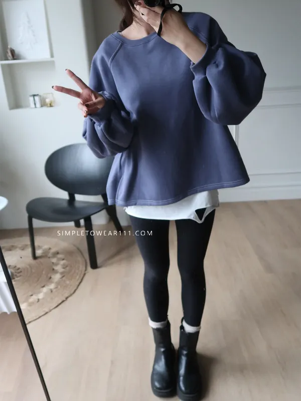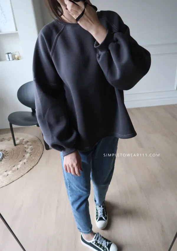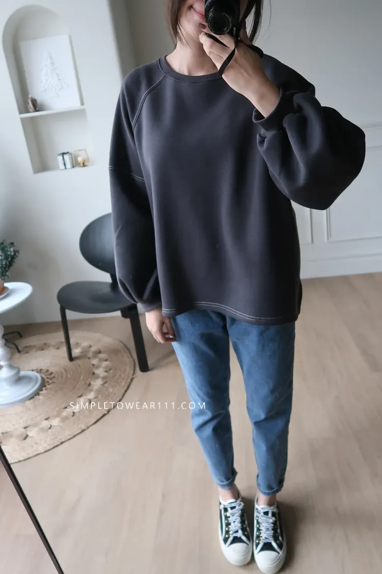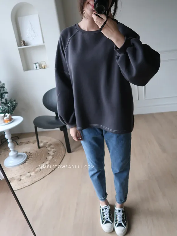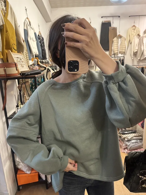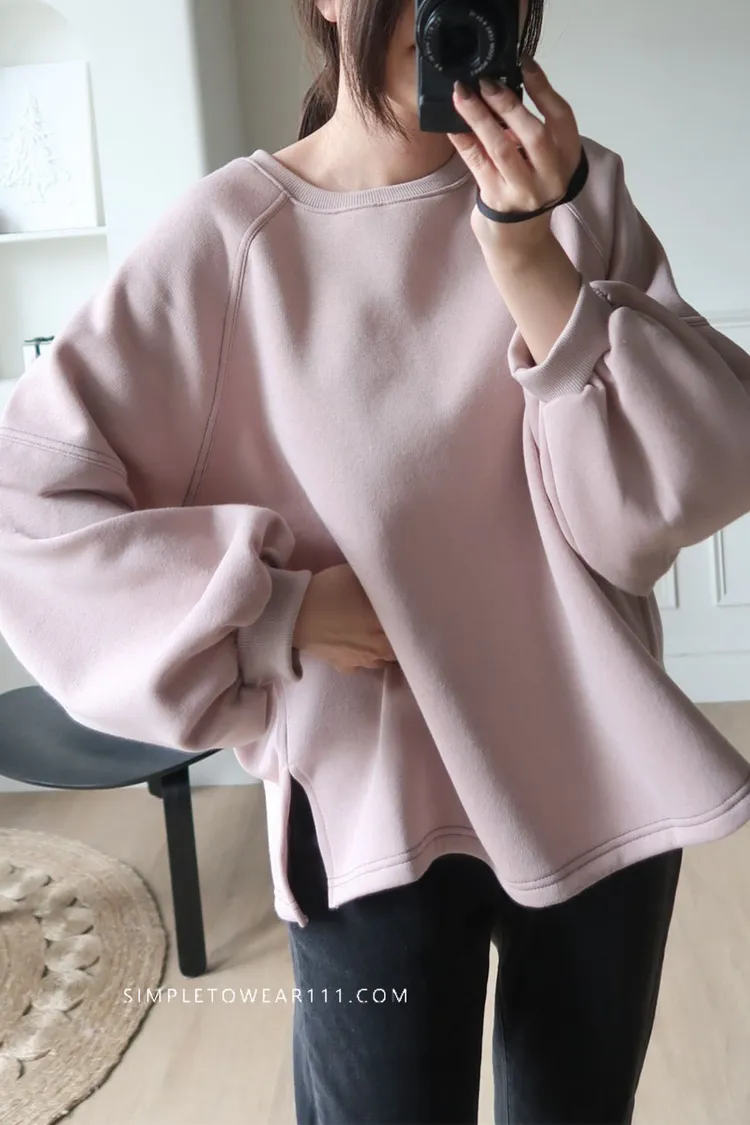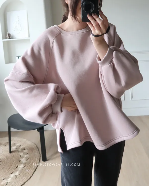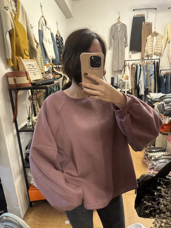 【包色價】韓 砰砰袖刷毛大學TEE (霧粉/霧灰藍/泥灰/墨灰/葡萄紫/灰軍綠)