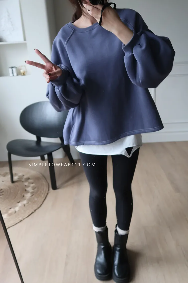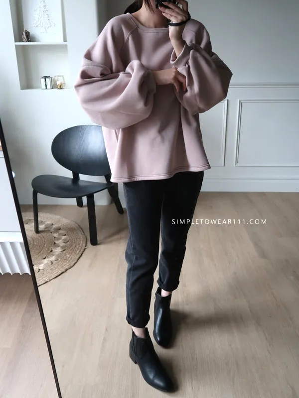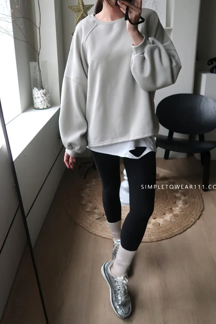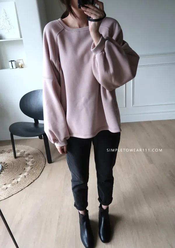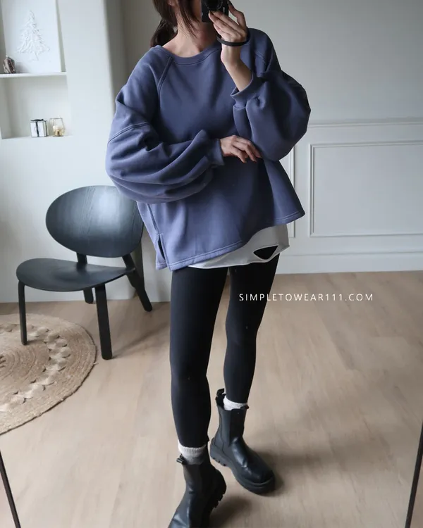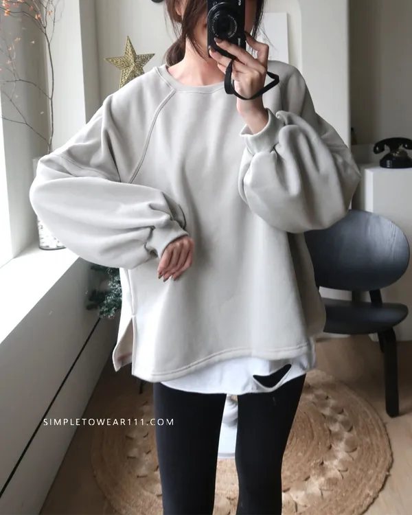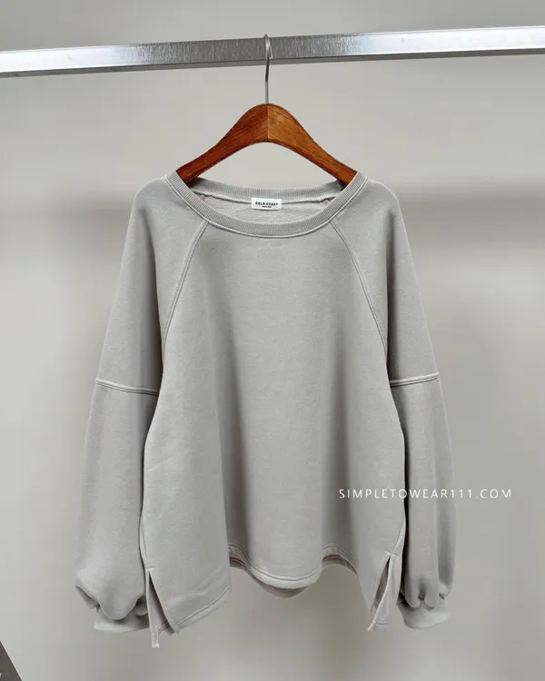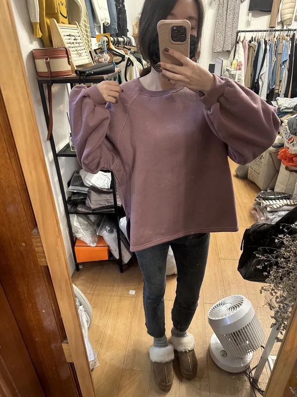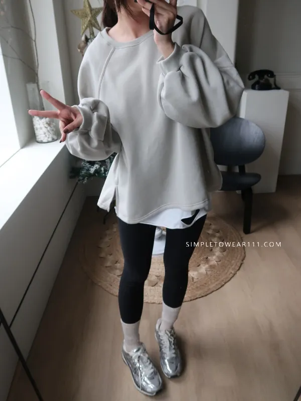 【包色價】韓 砰砰袖刷毛大學TEE (霧粉/霧灰藍/泥灰/墨灰/葡萄紫/灰軍綠)