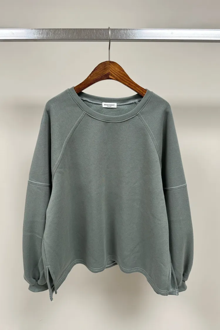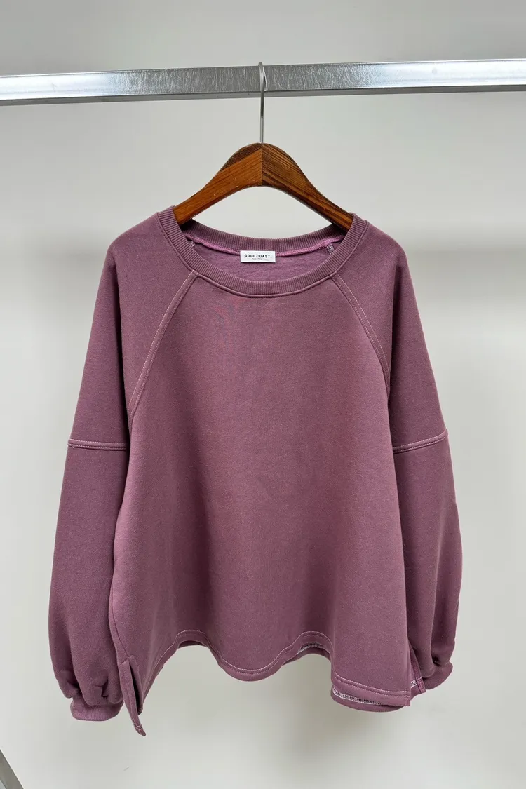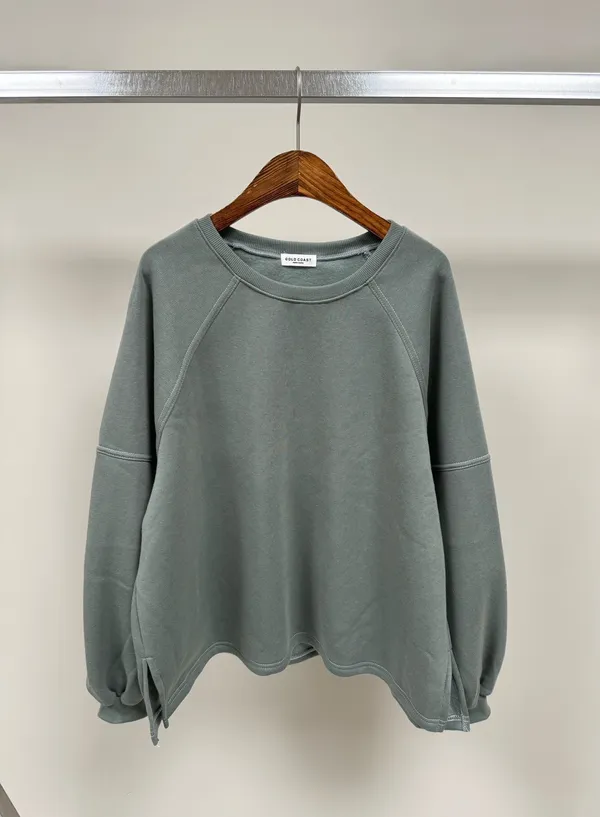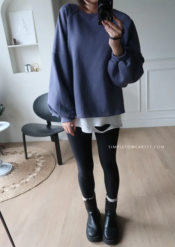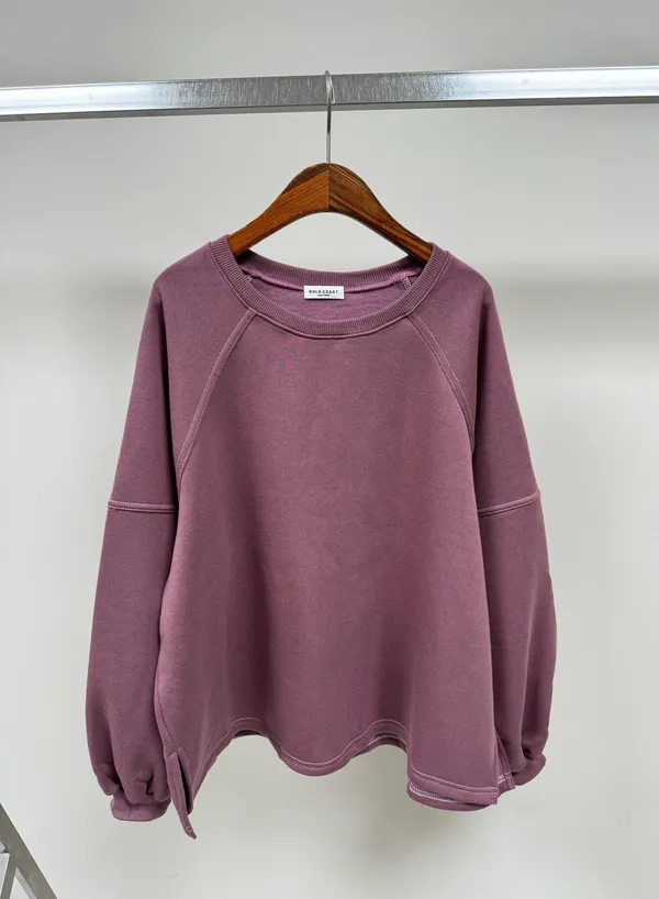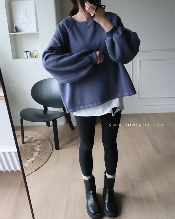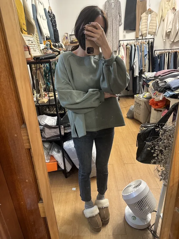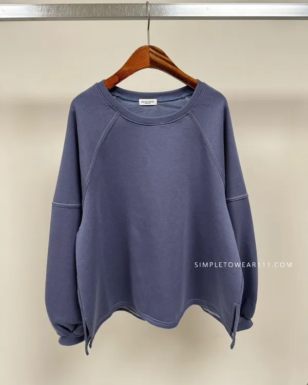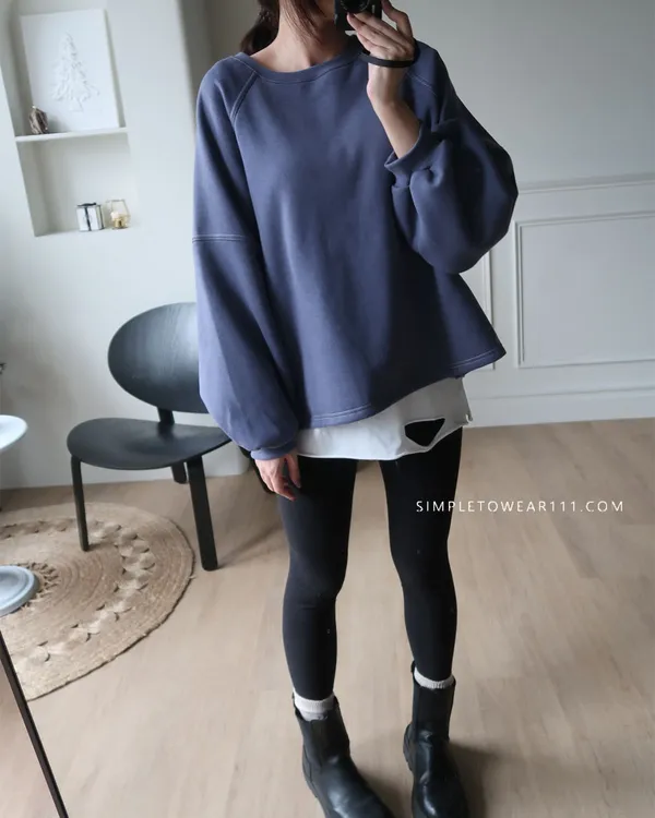 【包色價】韓 砰砰袖刷毛大學TEE (霧粉/霧灰藍/泥灰/墨灰/葡萄紫/灰軍綠)