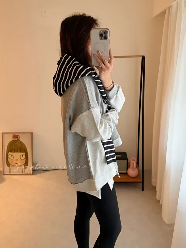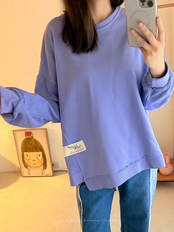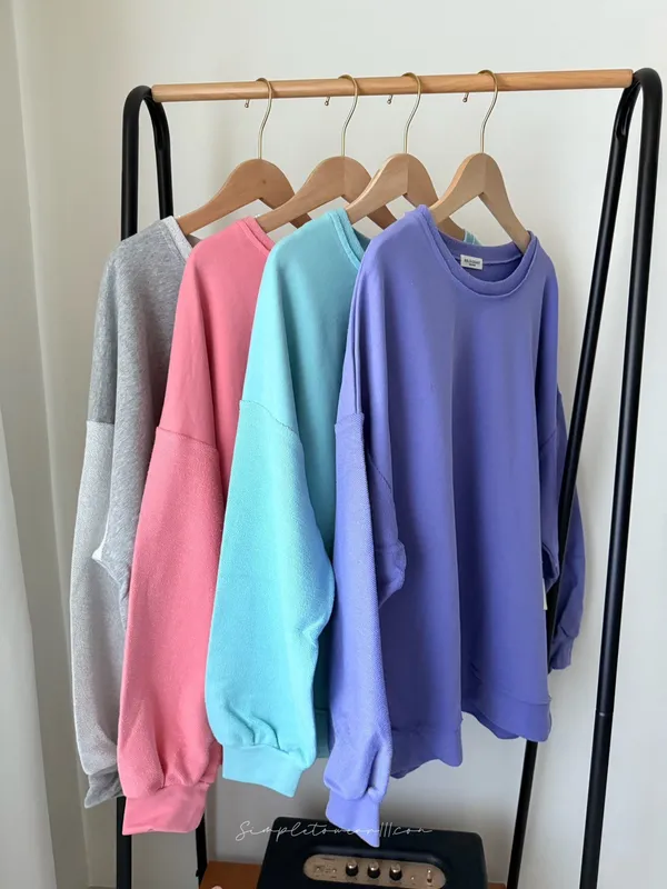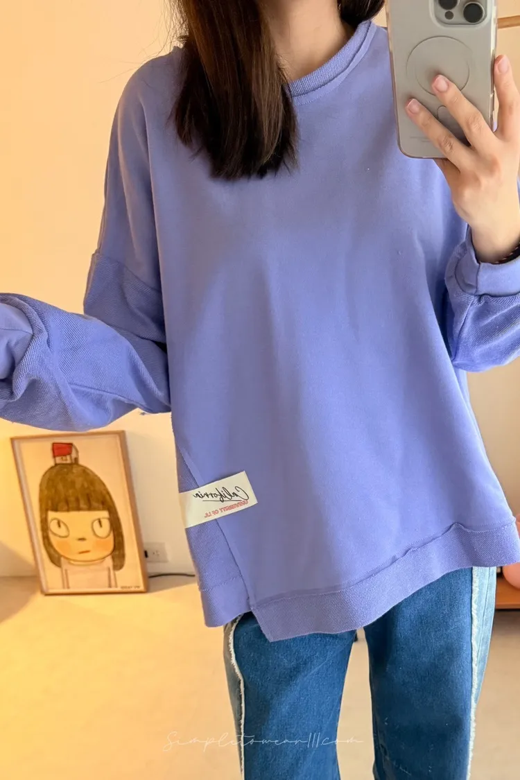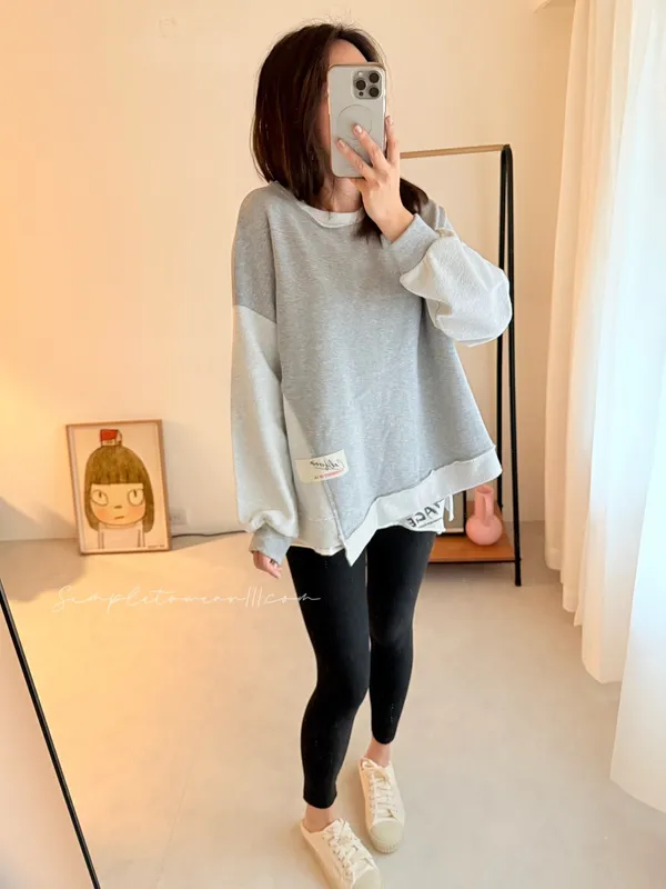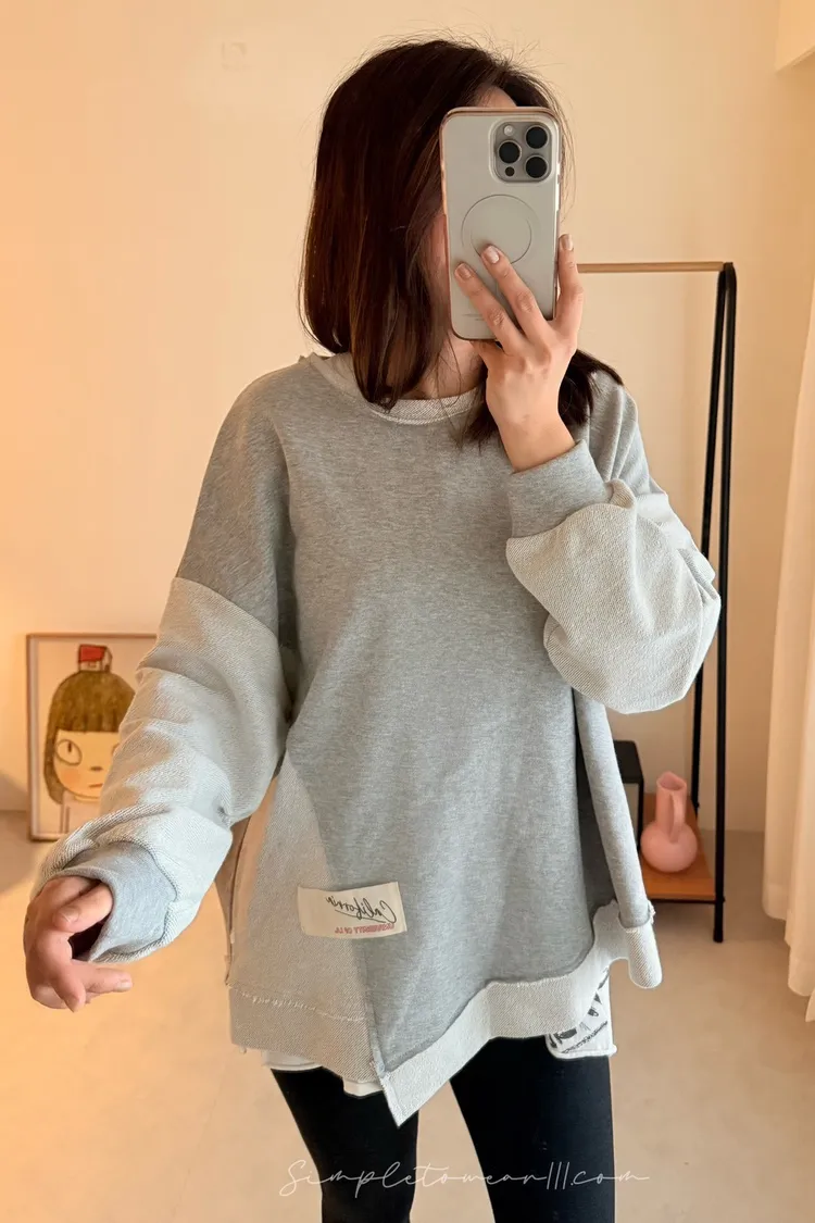 N23 韓 超挺正反面剪接大學TEE (灰/紫/綠/粉)