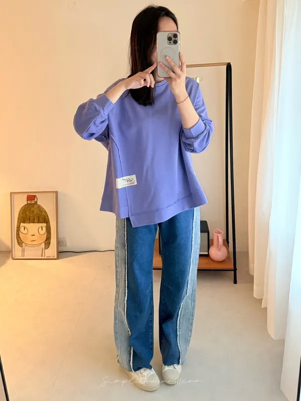 搭配牛仔寬褲 很簡約好看