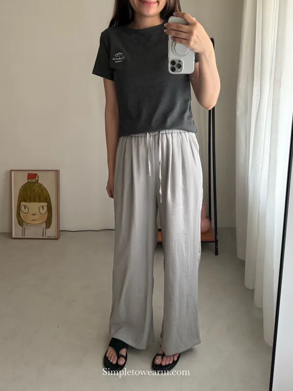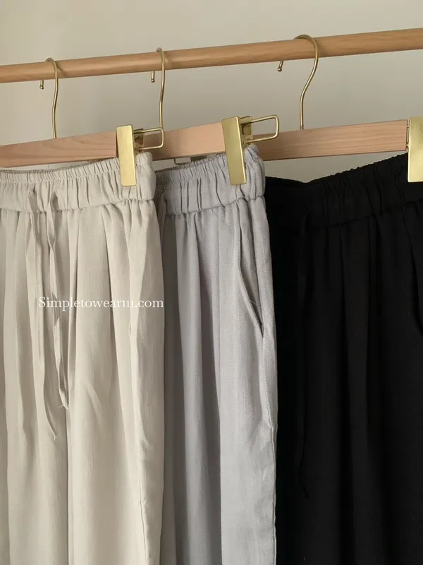 好百搭的 綁帶棉麻長褲 (杏/藍/黑)