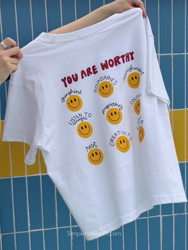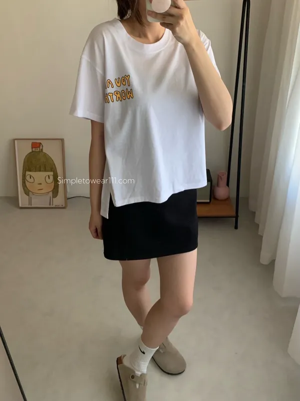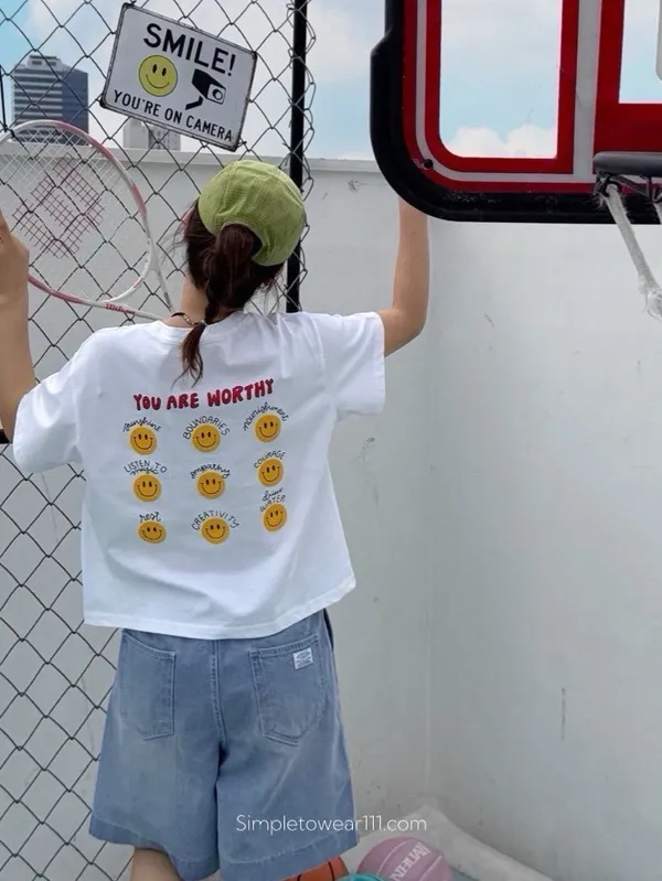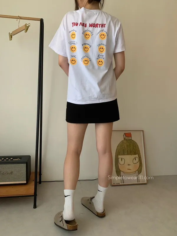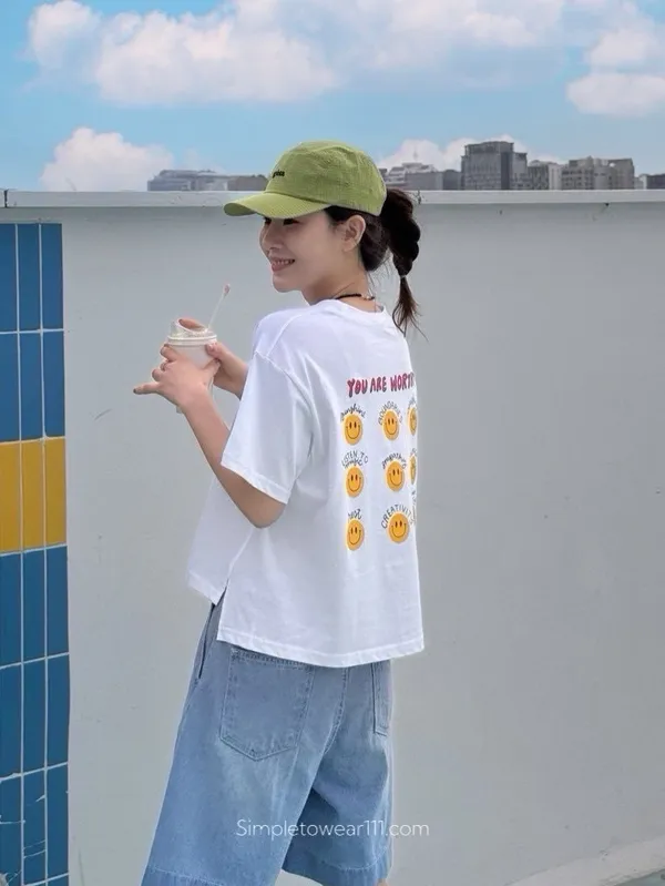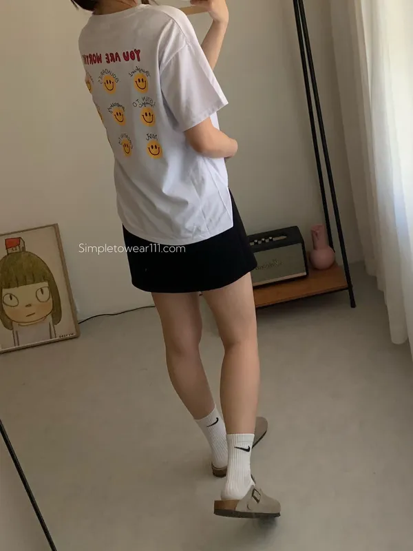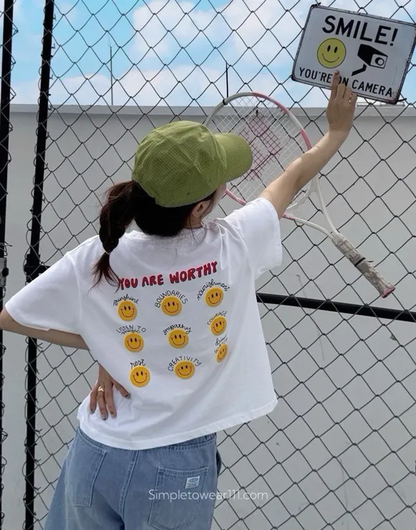 韓 超Q字母9宮格微笑印花棉Tee 白