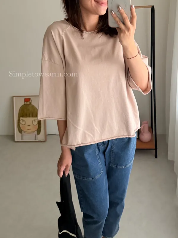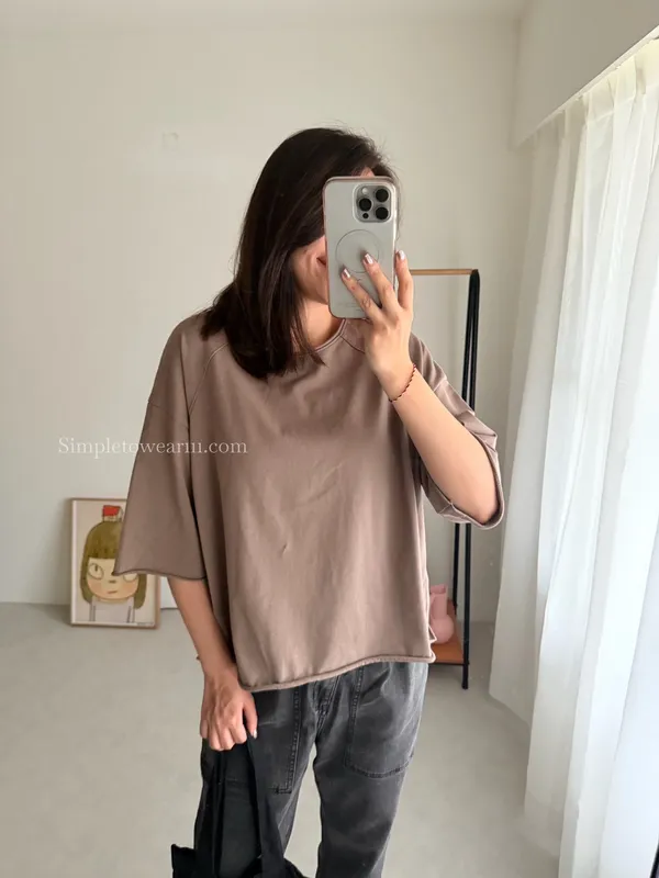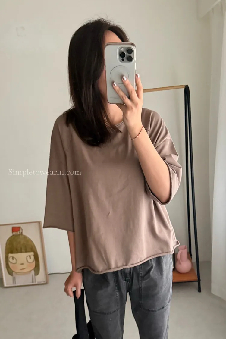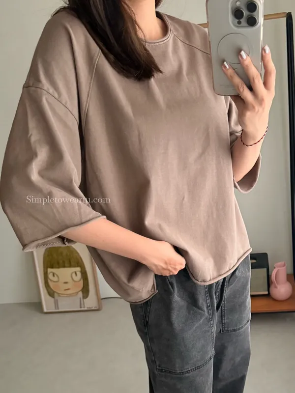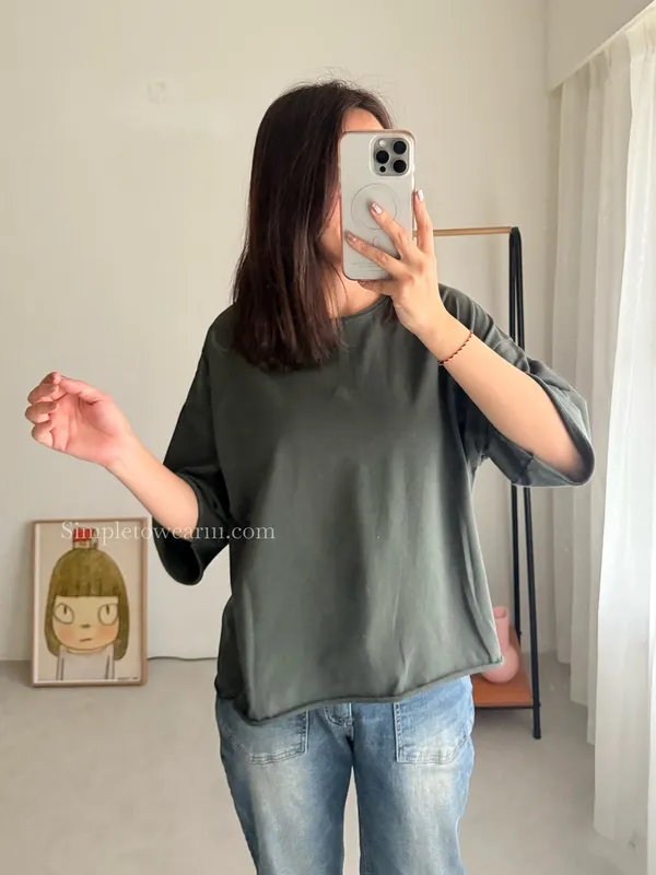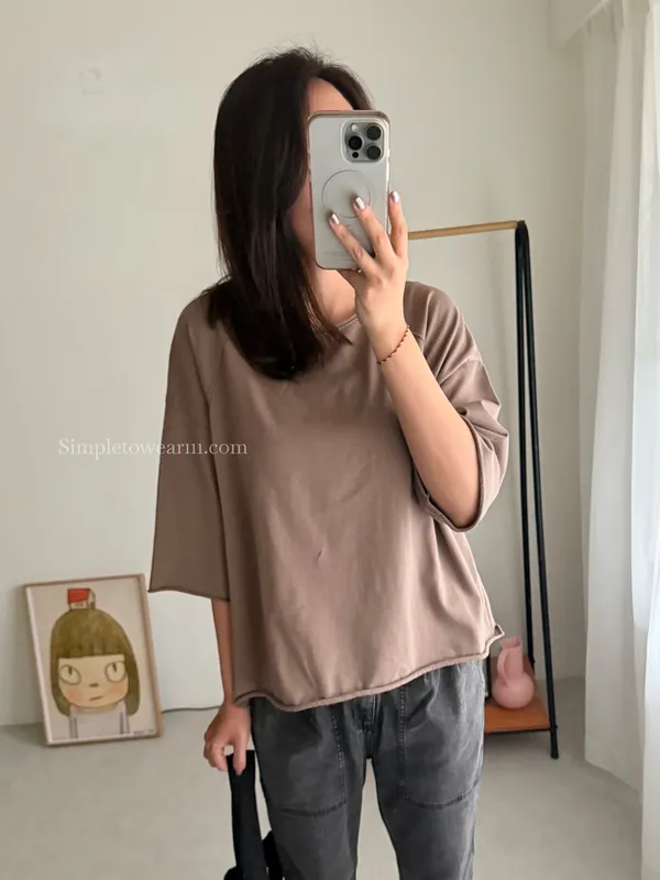 微磅水洗 肩剪接素TEE (黑/白/可可/粉/奶卡/墨綠)