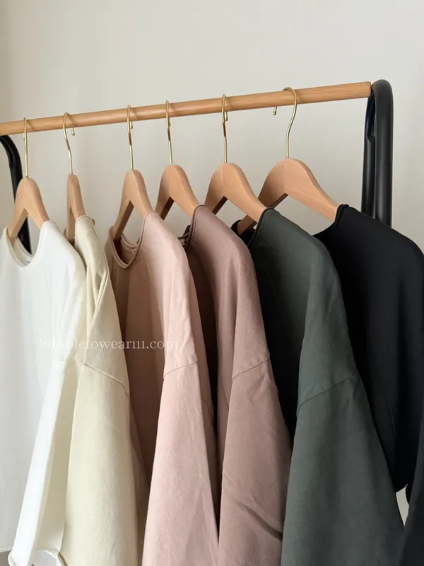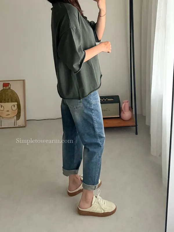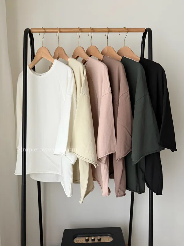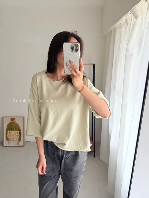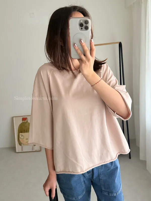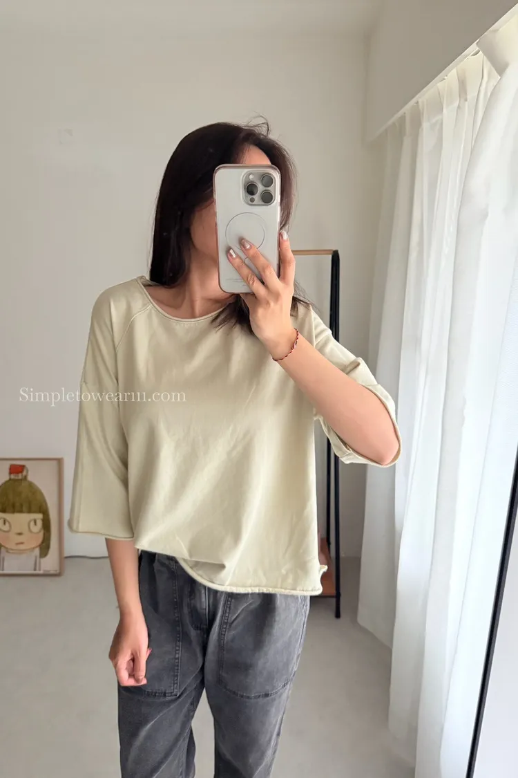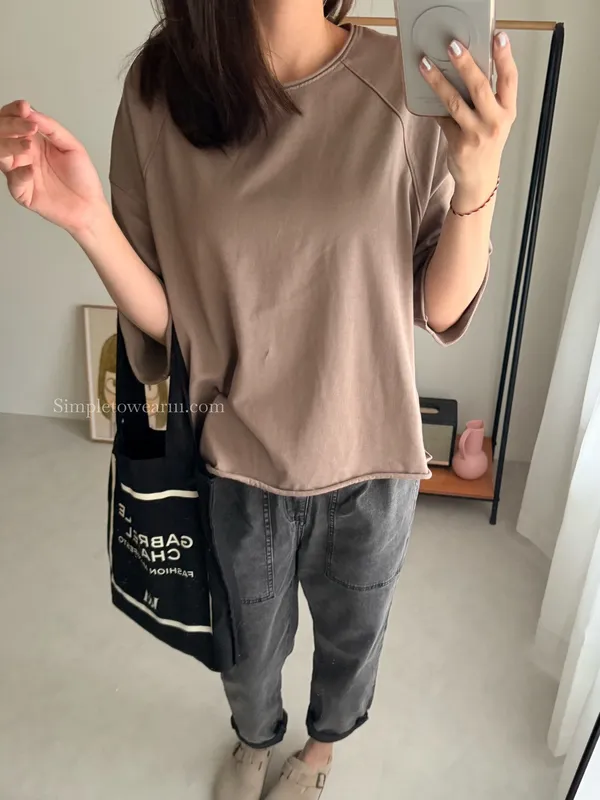 微磅水洗 肩剪接素TEE (黑/白/可可/粉/奶卡/墨綠)