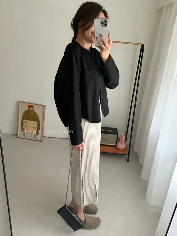 IB家 彈性棉罩衫外套 (黑/杏/咖)