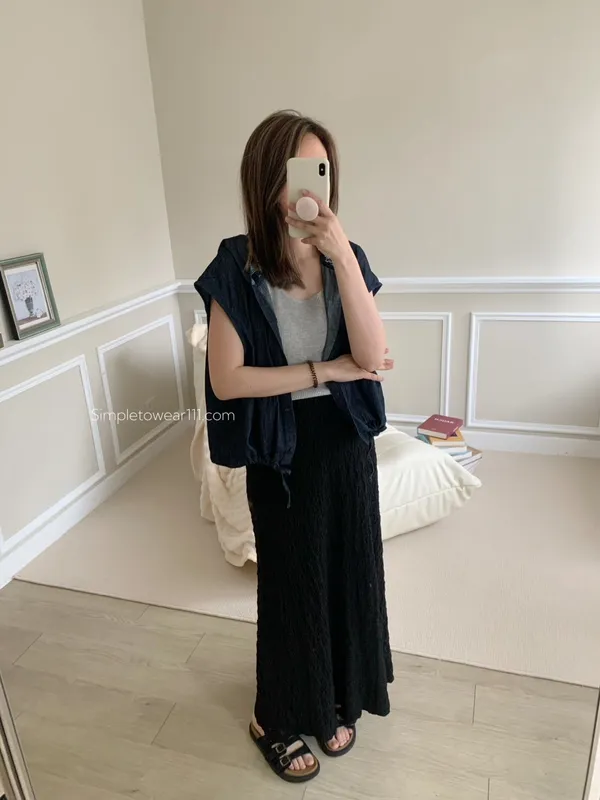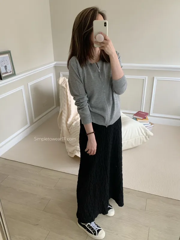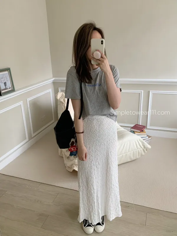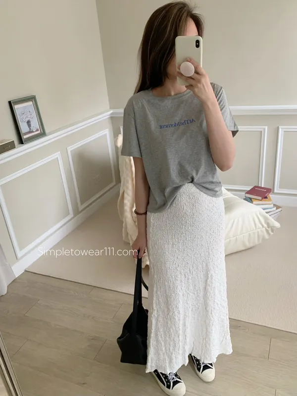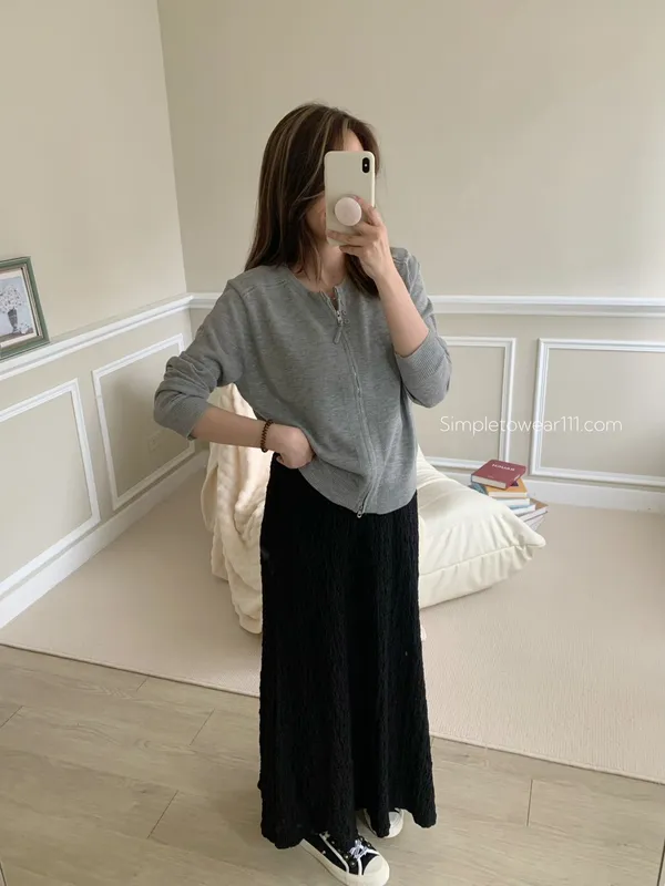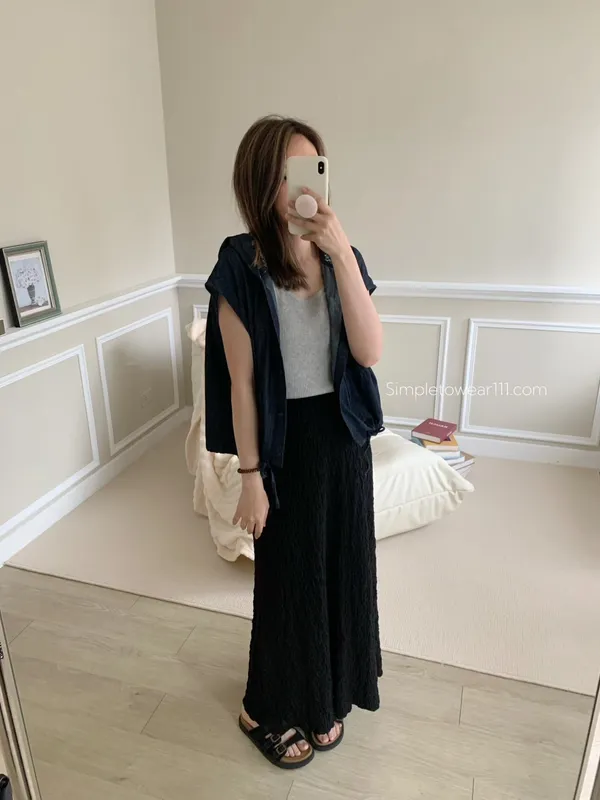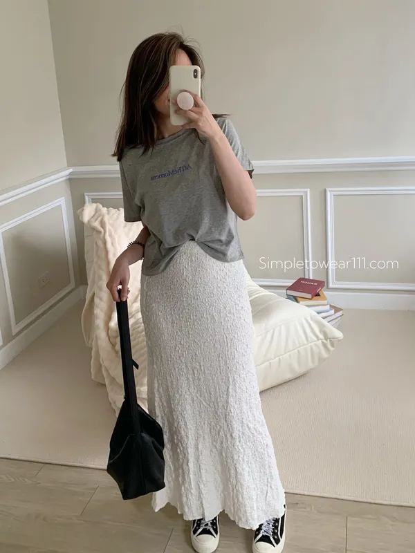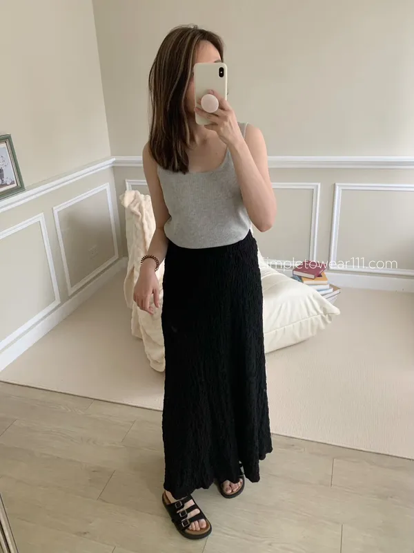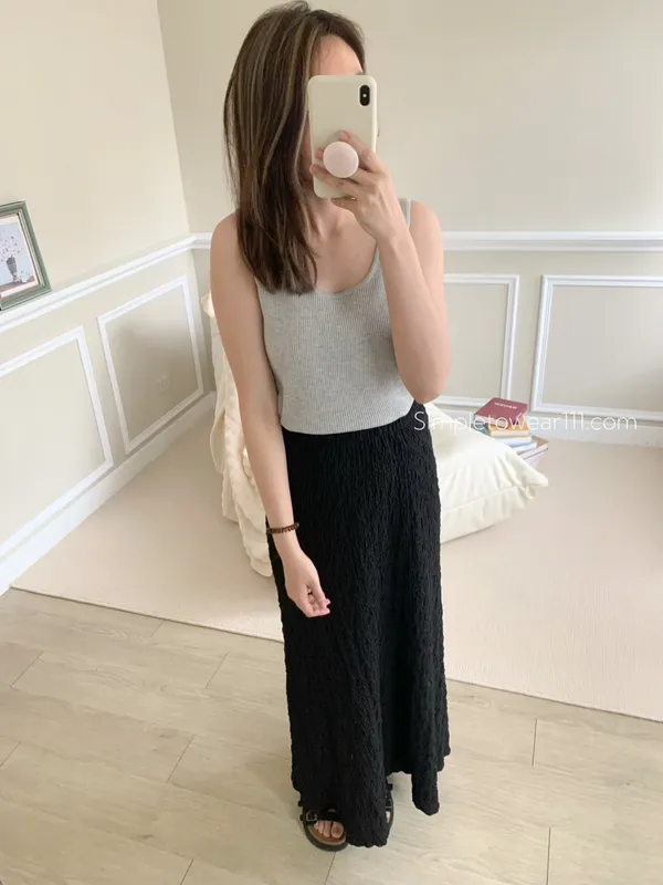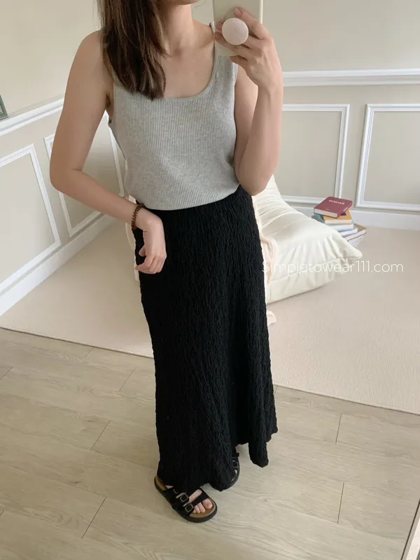 顯瘦款 泡泡顯瘦長裙 (黑/白)