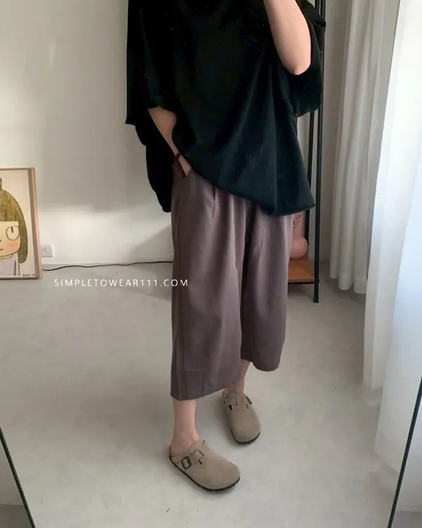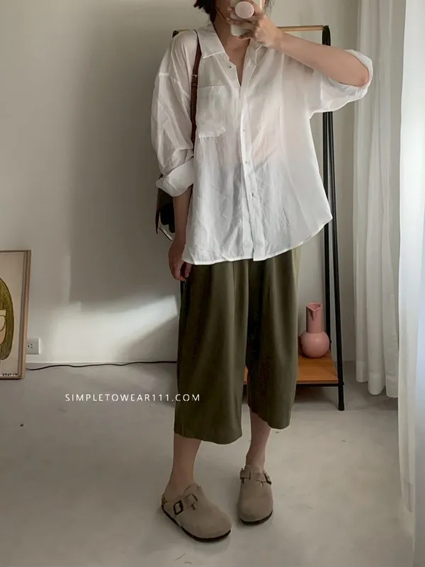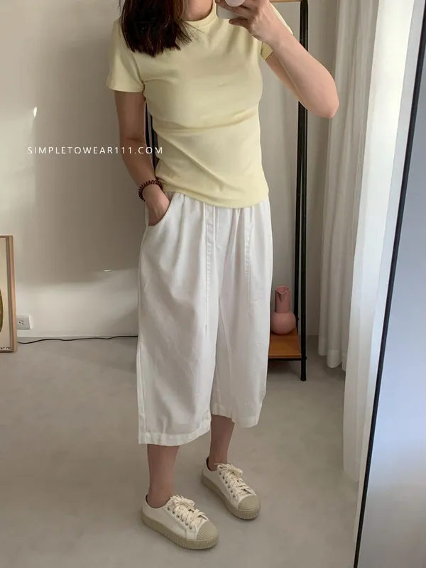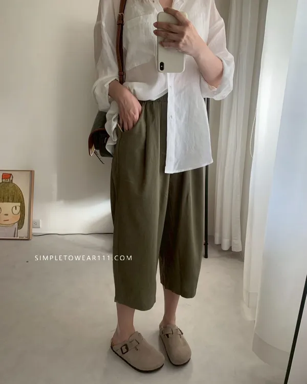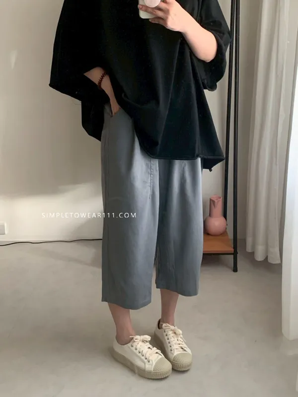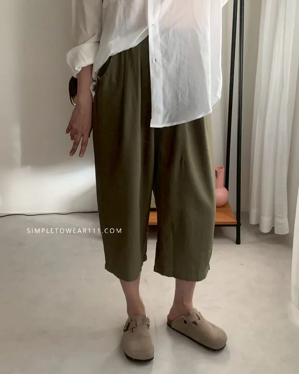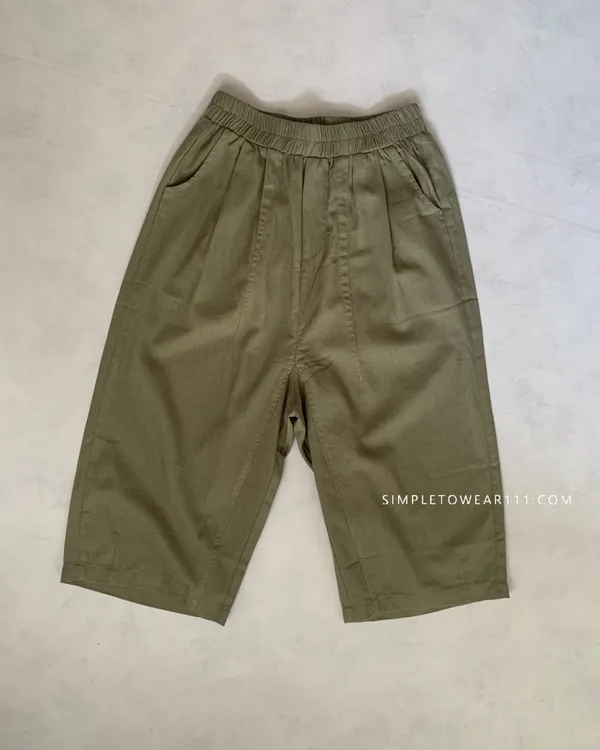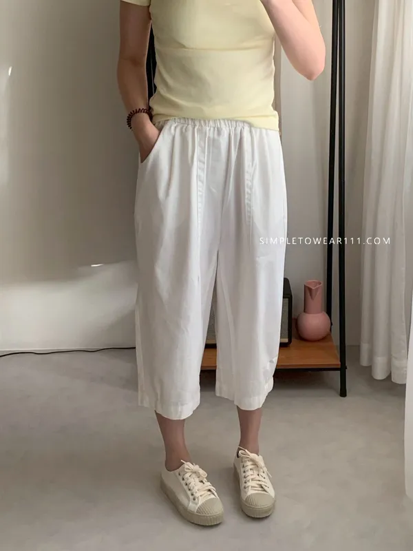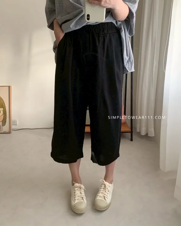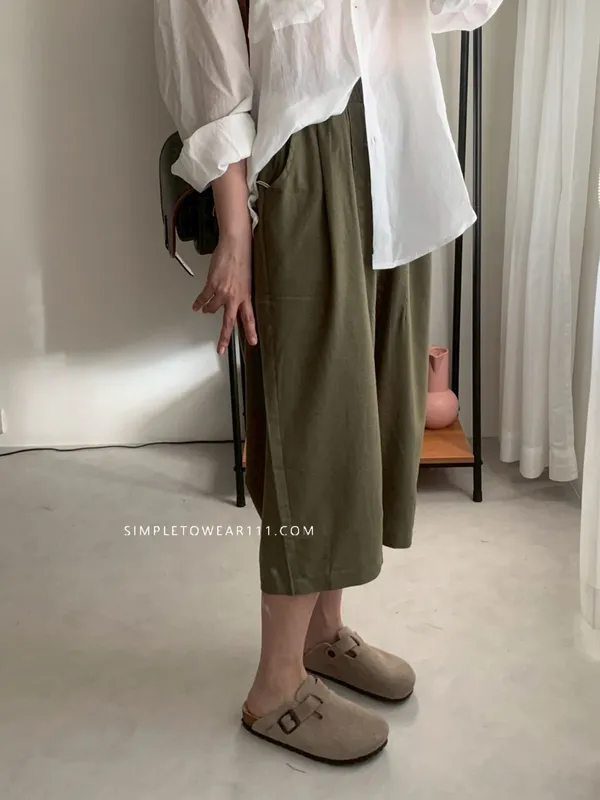 韓組 春夏必備超彈性八分棉麻褲 (白/綠/奶茶/咖/灰藍/深灰/黑)