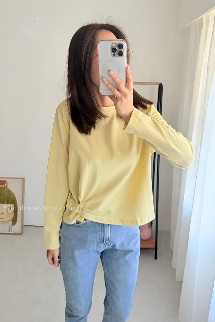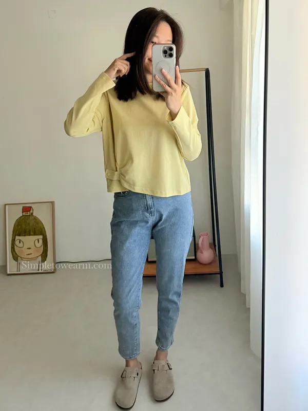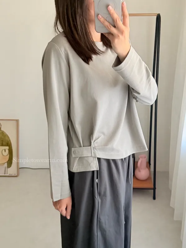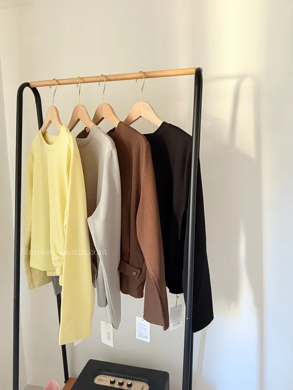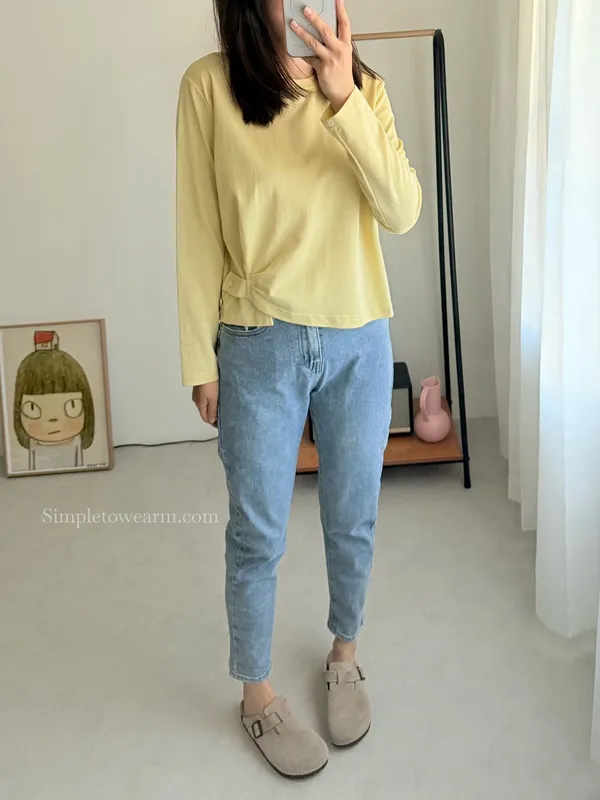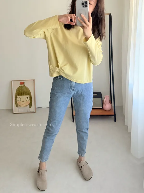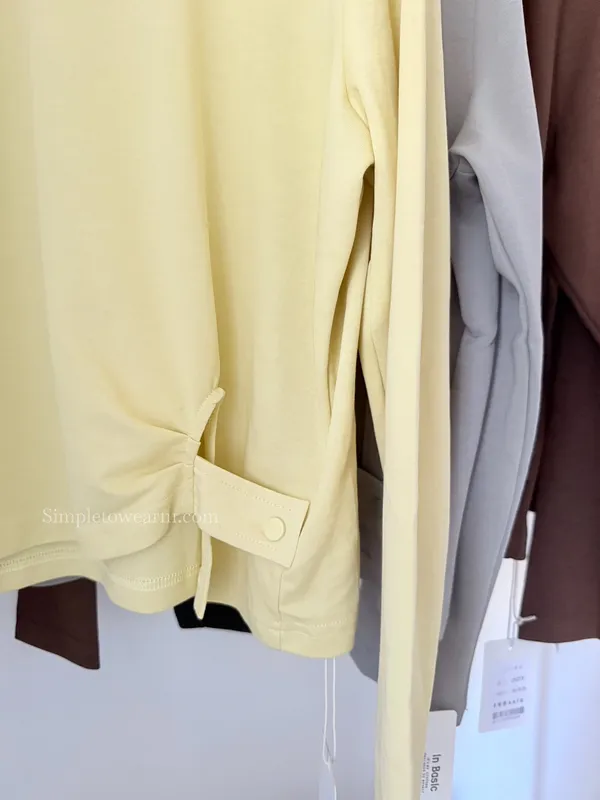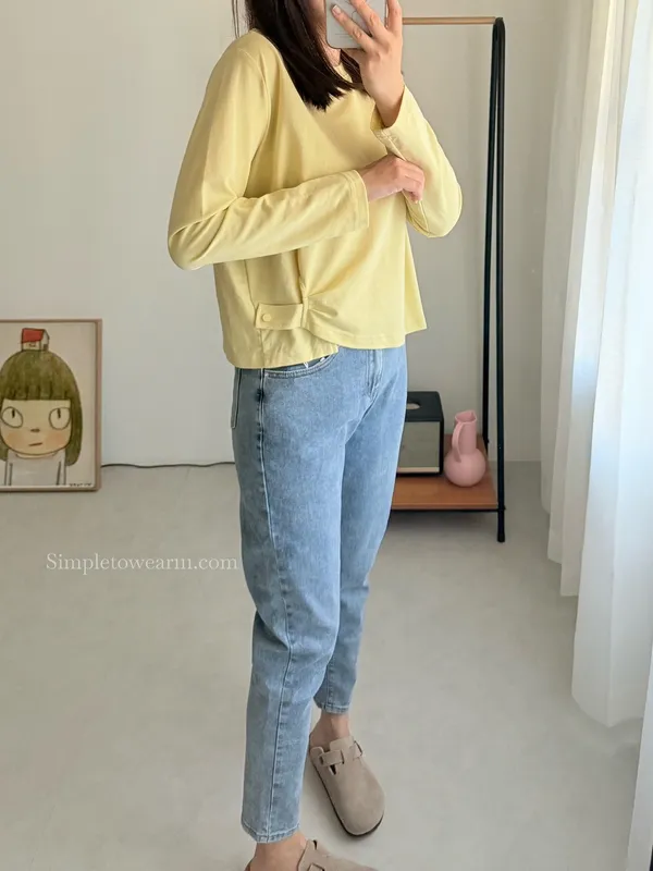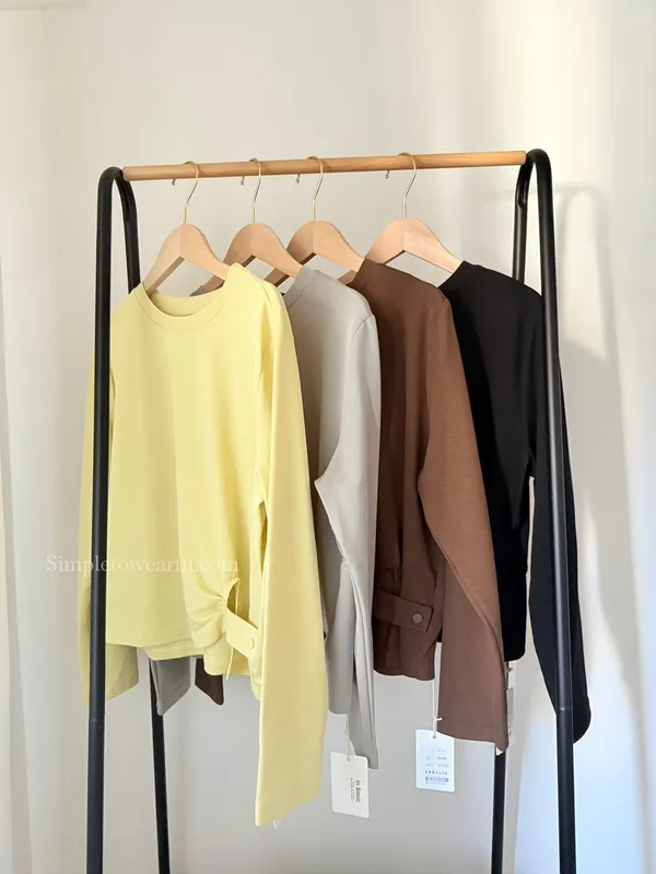 IB家 極簡風格側邊鈕扣長袖上衣 (黃/豆綠/咖/黑)