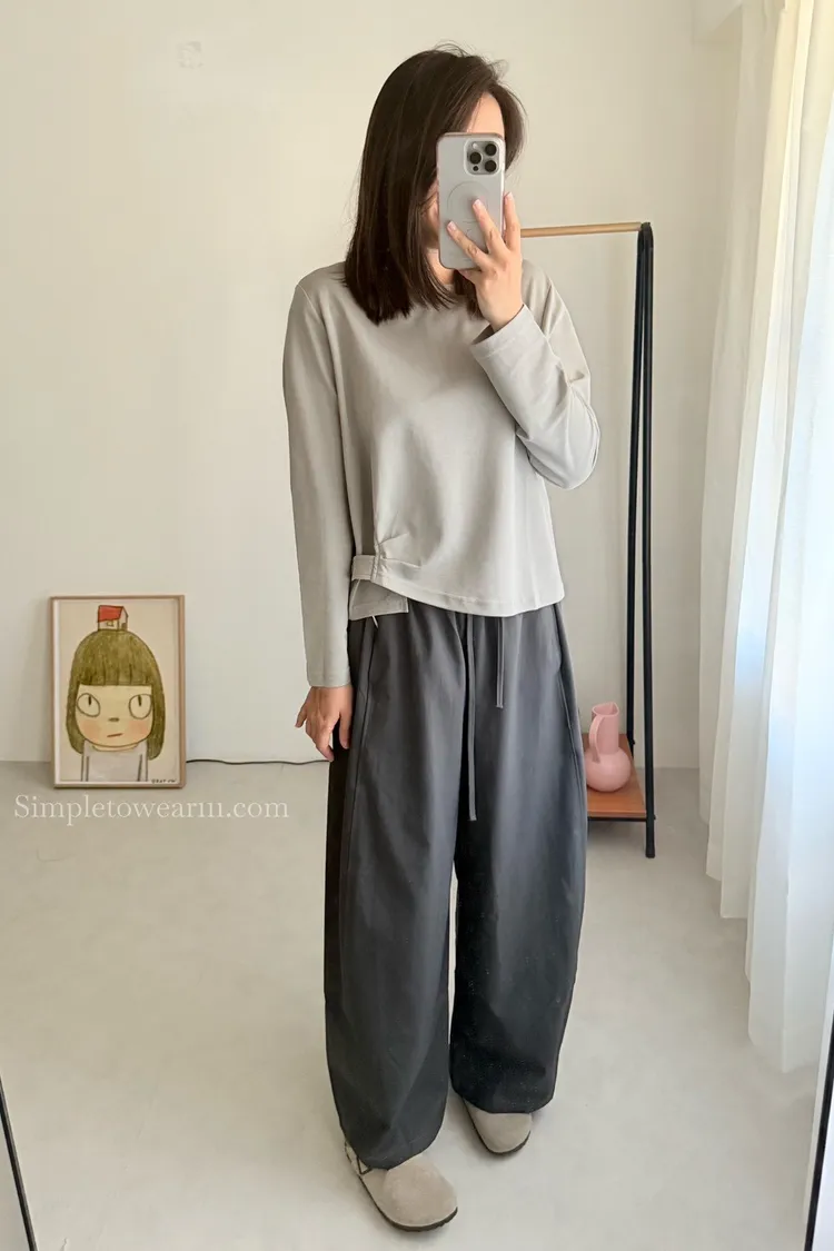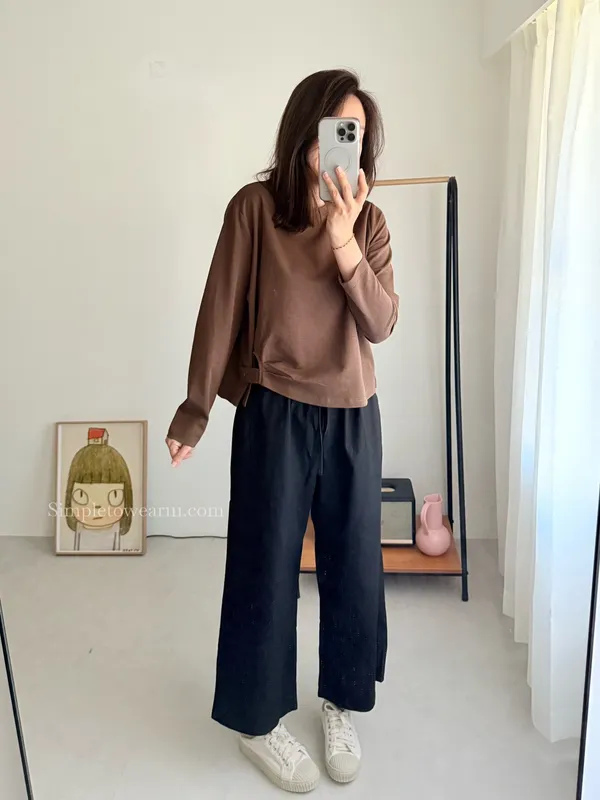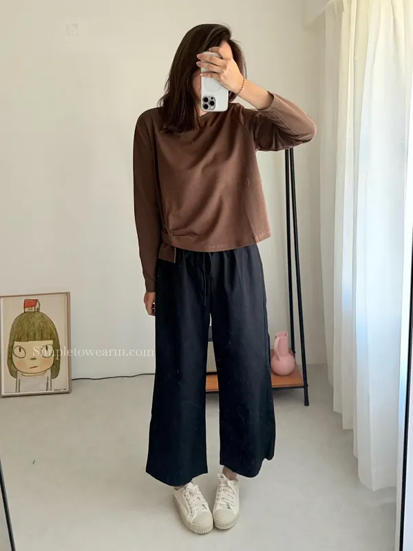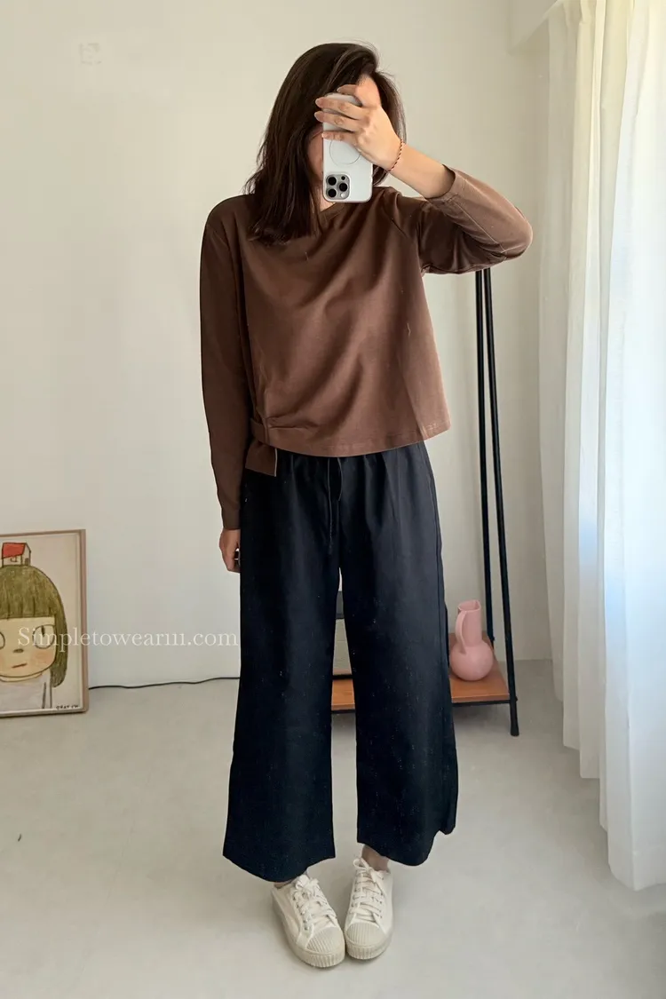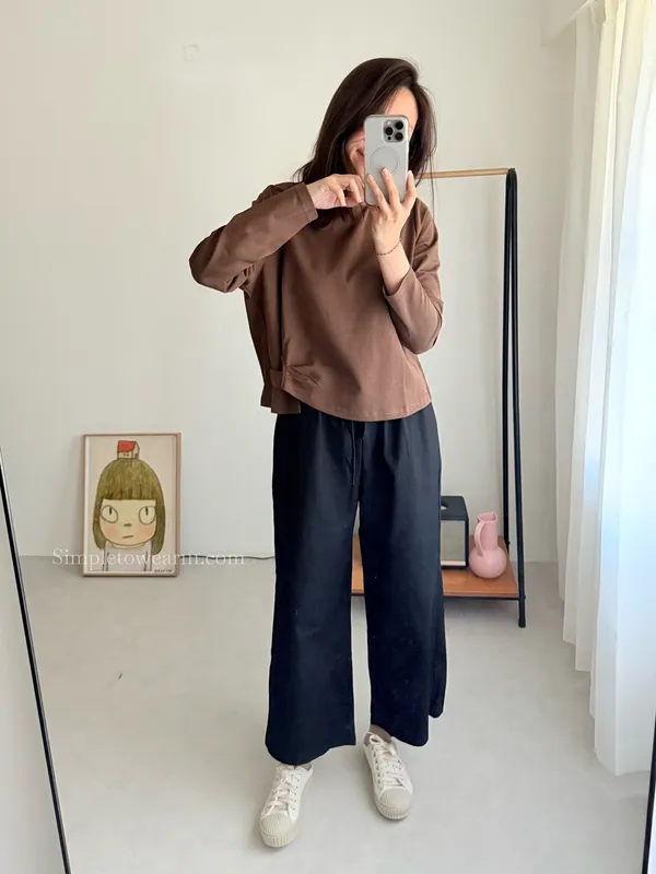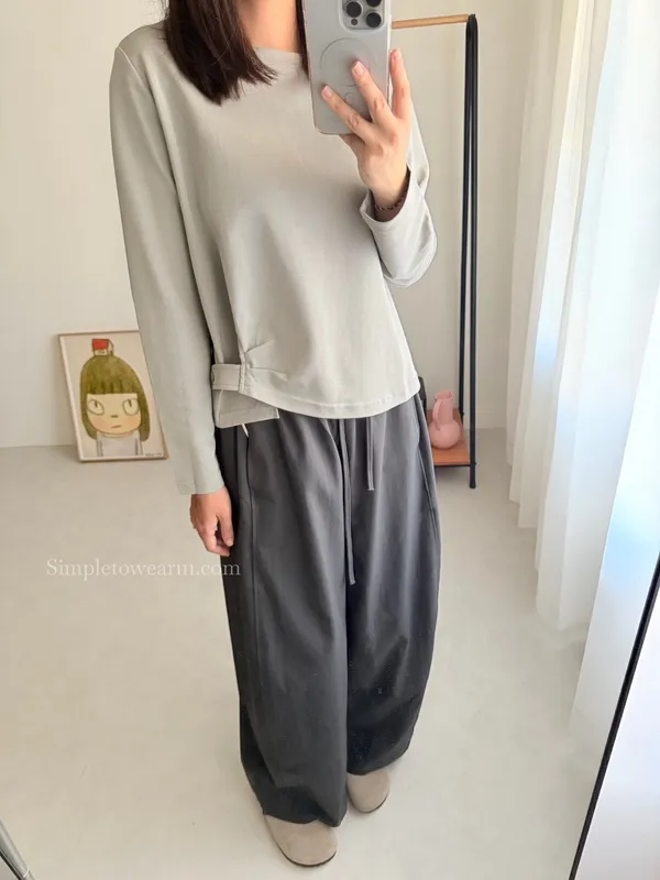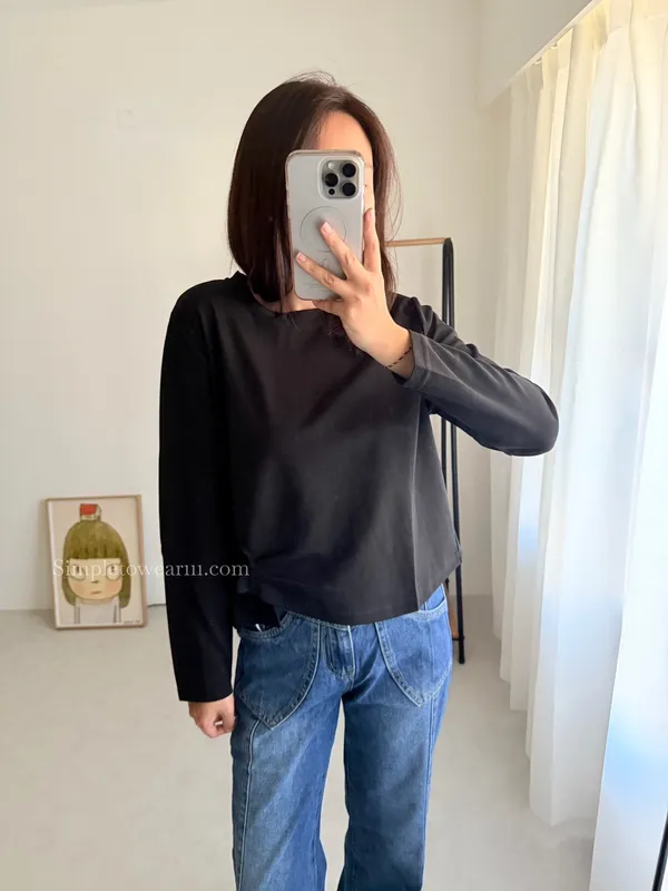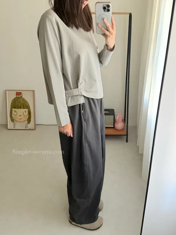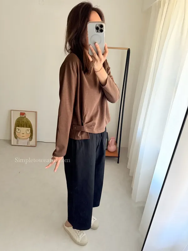 IB家 極簡風格側邊鈕扣長袖上衣 (黃/豆綠/咖/黑)