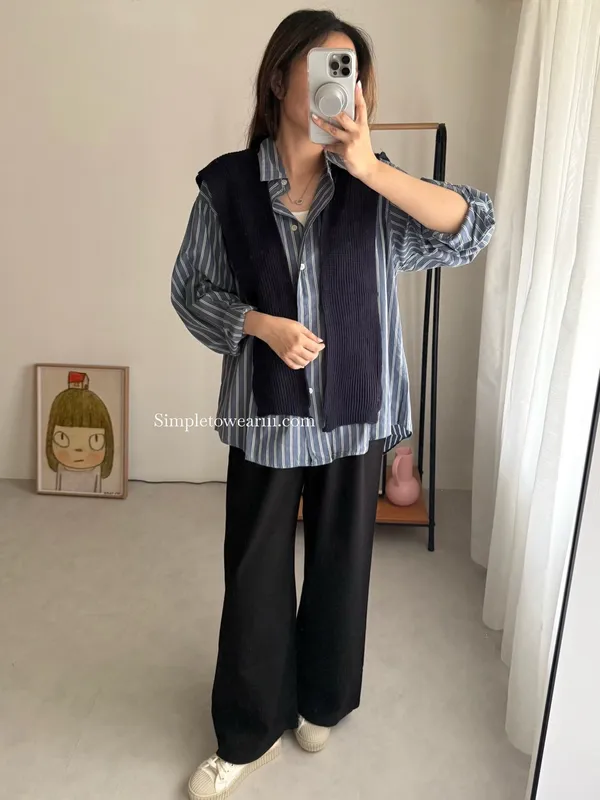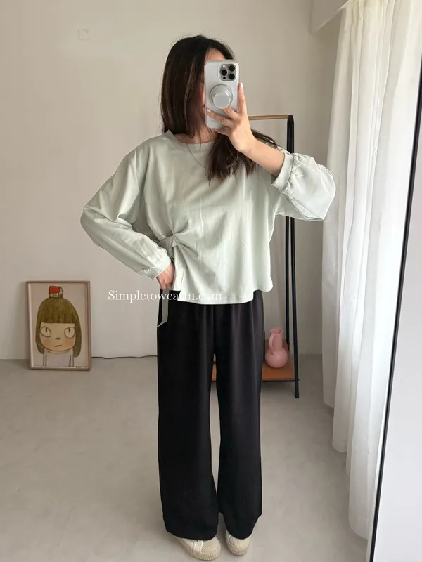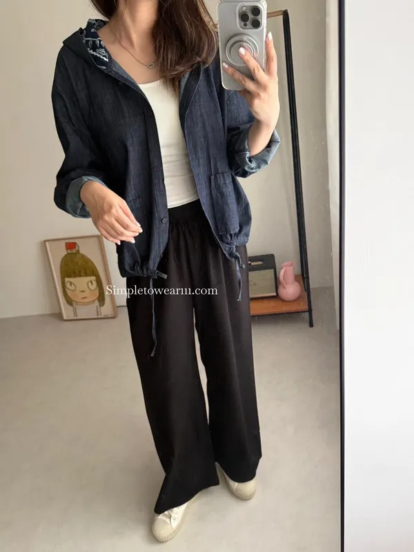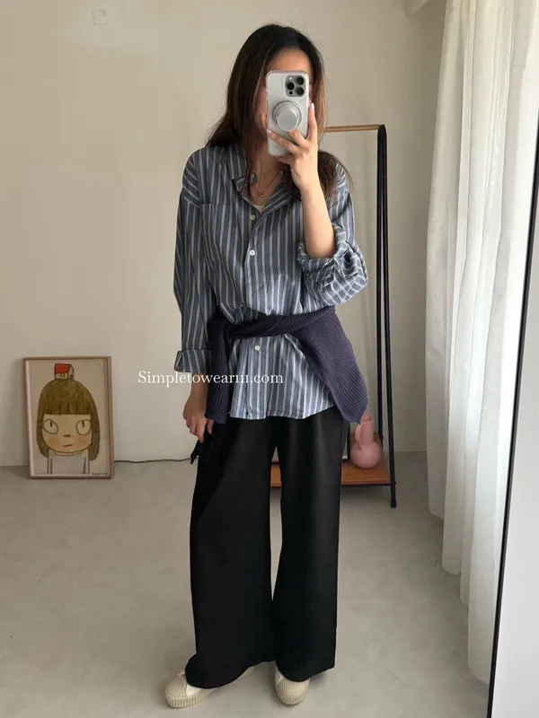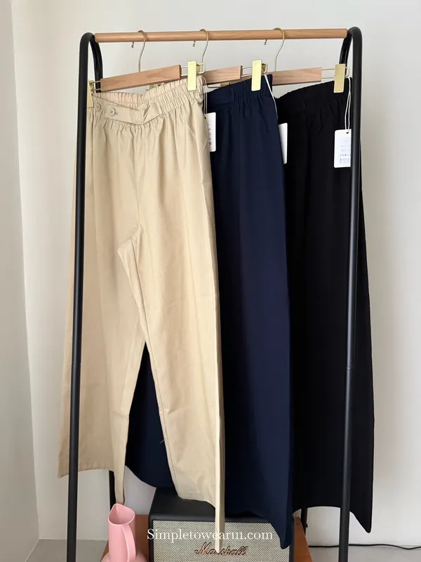 IB家 日系感鈕扣腰間長寬褲 (黑/卡其/深藍)